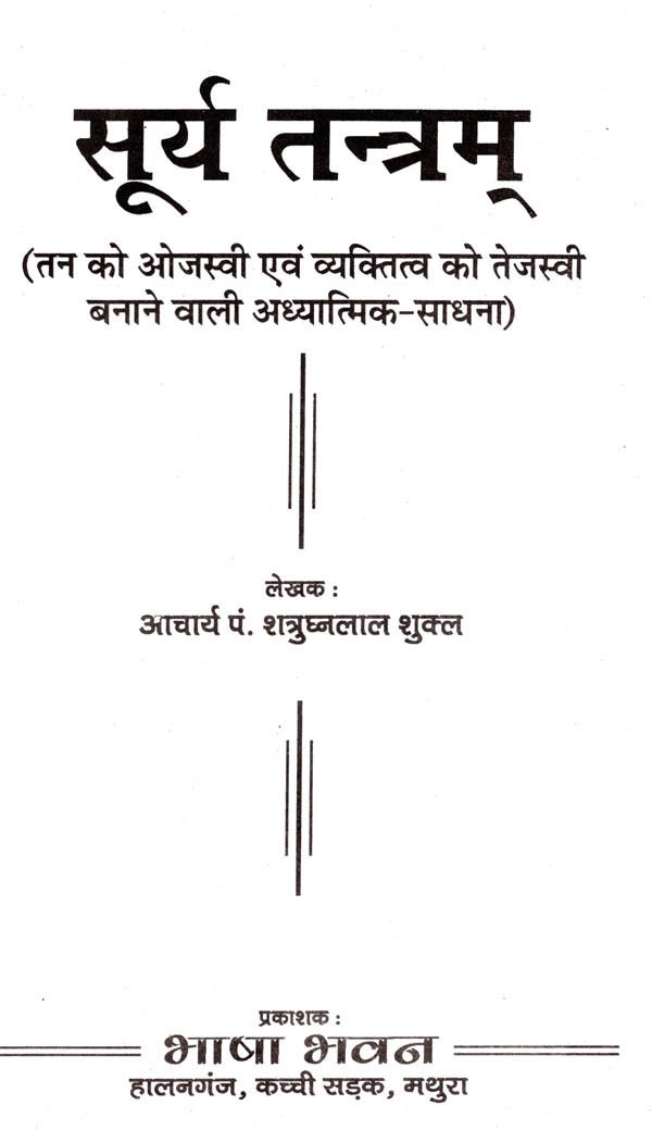 सूर्य तन्त्रम् (तन को ओजस्वी एवं व्यक्तित्व को तेजस्वी बनाने वाली अध्यात्मिक-साधना): Surya Tantram (Tan Ko Ojasvi Evam Vyaktitva Ko Tejasvi Banane Wali Adhyatmik-Sadhana)