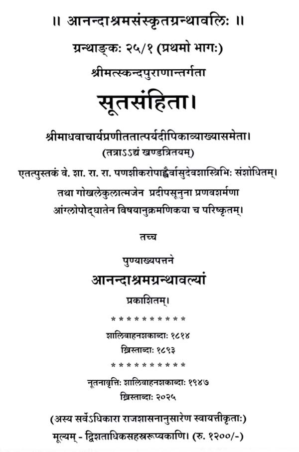 श्रीमत्स्कन्दपुराणान्तर्गता- सूतसंहिता: The Suta Samhita within the Srimat Skanda Purana (Set of 3 Volumes)