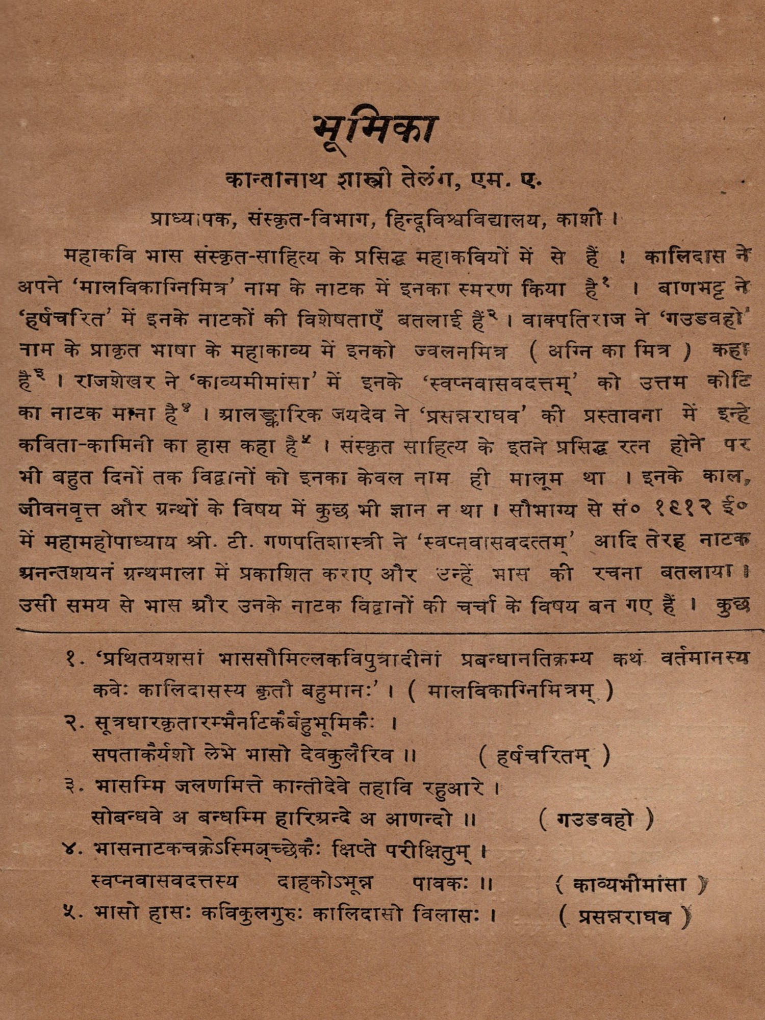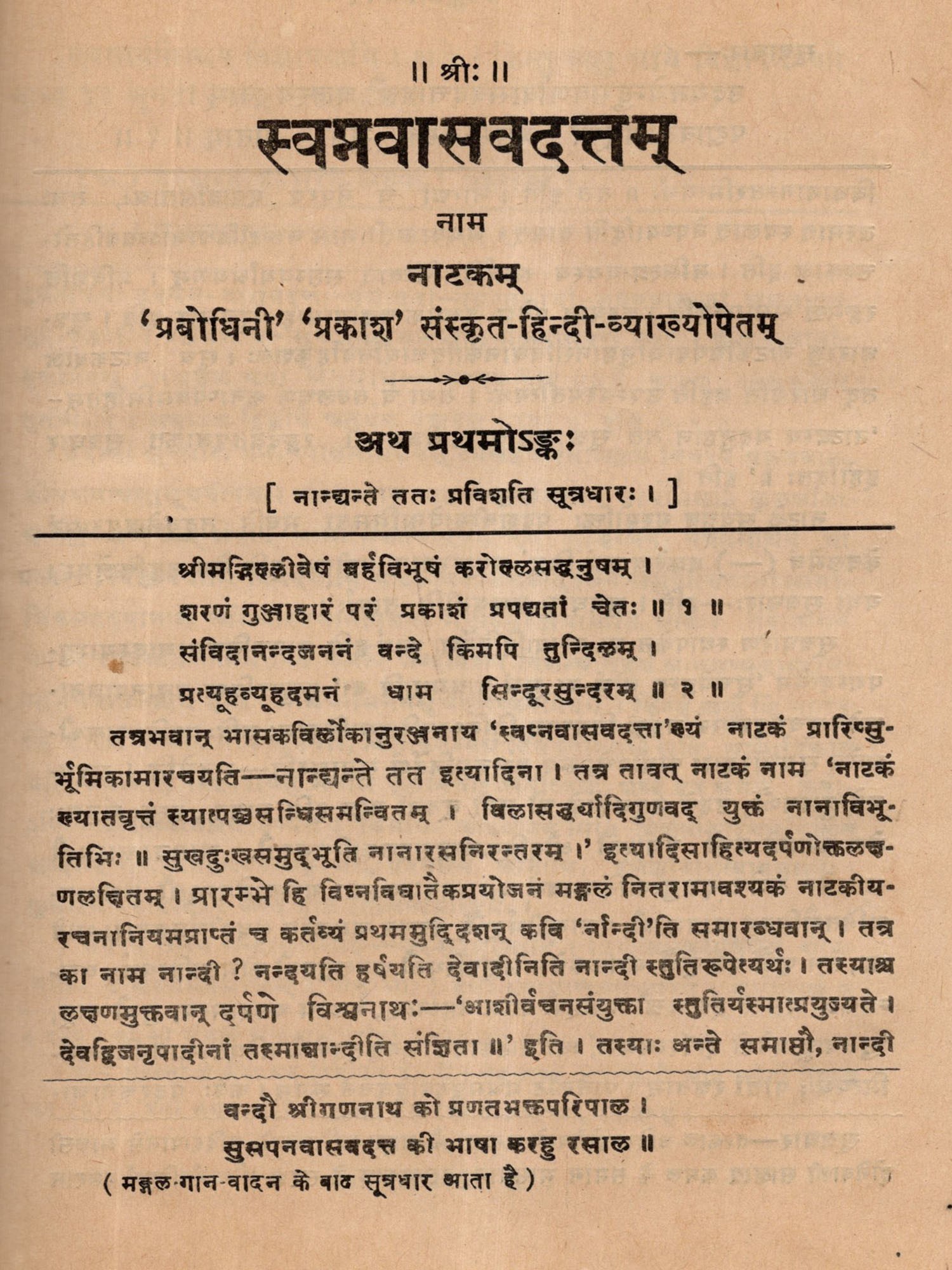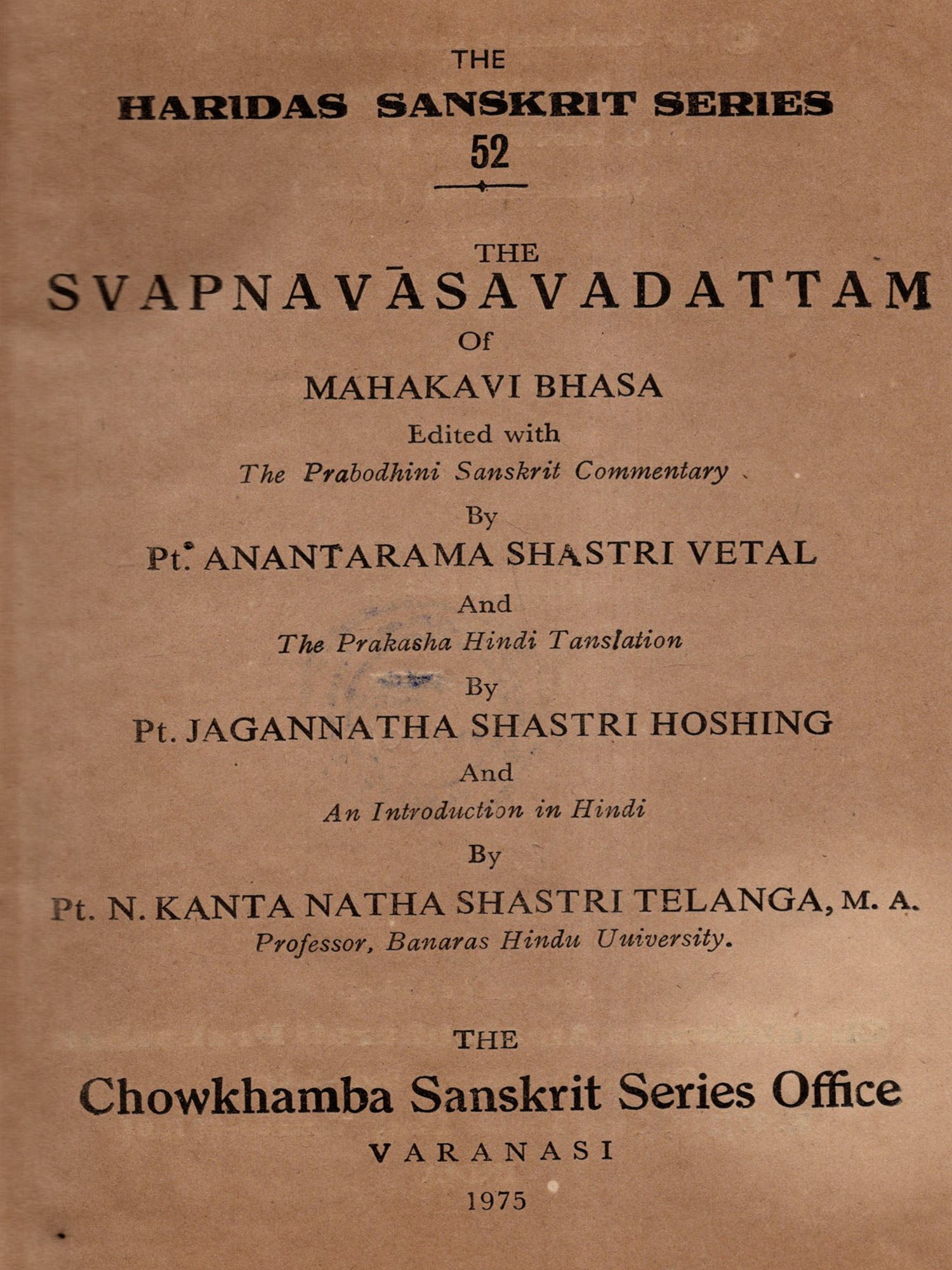 स्वप्नवासवदत्तम्: The Svapnavasavadattam of Mahakavi Bhasa (An Old and Rare Book)