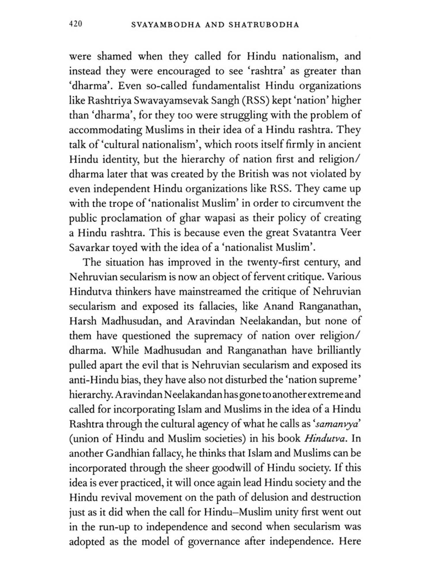 The Hindu consciousness is built upon the wisdom to differentiate between dharma and adharma. As long as this viveka is alive, Hindu society thrives. A loss of this discriminating power leads to decay and degeneration. In the last few hundred years, especially in the post-independence era, this core Hindu aptitude to survive and thrive has been lost. As a result, the very fabric of Hindu society developed ruptures, leading to socio-political and civilizational decline. Great saints, thinkers, and leaders like Swami Vivekananda, Shri Aurobindo, Lokmanya Tilak, Veer Savarkar, Ram Swarup, and Sita Ram Goel started and continued the revival of the Hindu intellect. This book is a small attempt to take that intellectual Hindu renaissance forward by rekindling the viveka that is necessary to differentiate between dharma and adharma. The Svayambodha-Shatrubodha framework does this by making Hindus aware of their civilizational core on one hand and by sensitizing them about the civilizational threats that Sanatana Dharma and Hindu society face today.