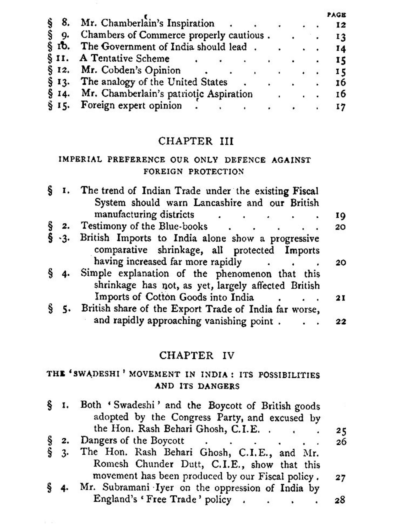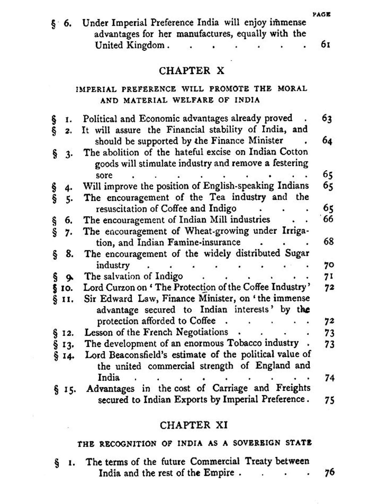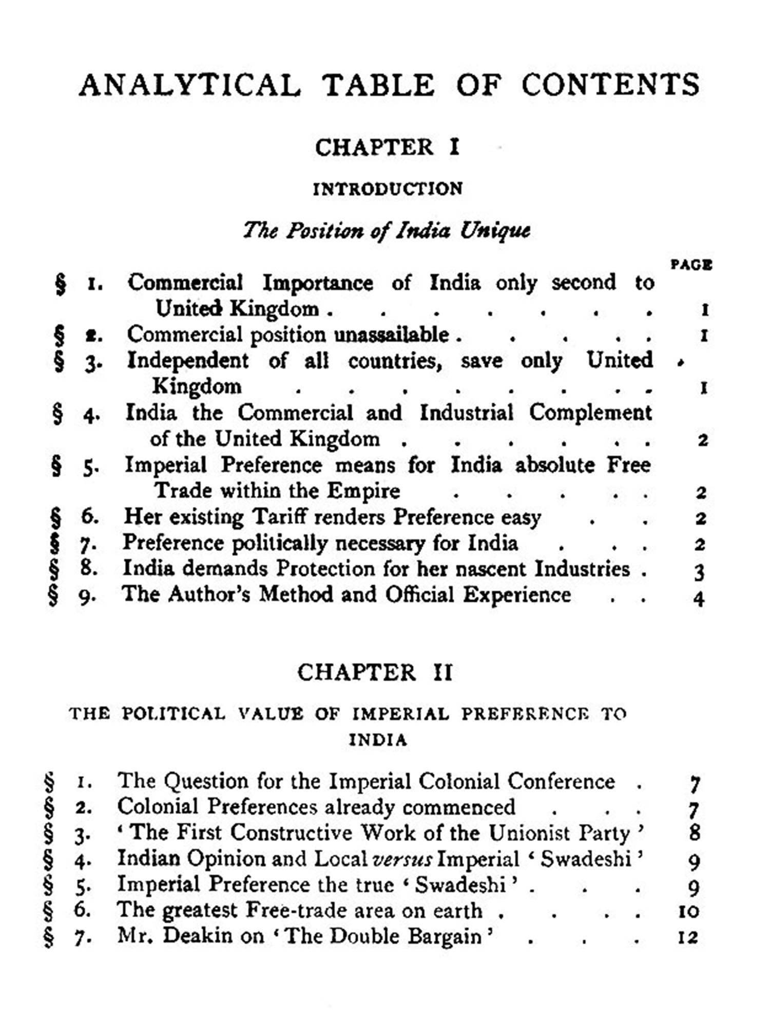 The aim of the essays here collected, founded mainly on articles contributed by me to the Englishman of Calcutta, is to advocate the only reasonable, the only patriotic, the only possible, 'Swadeshi,' which is Imperial Preference. That will benefit equally the Indian and the British subjects of King Edward. I dedicate these pages to my numerous friends of Indian birth, whose affectionate regard I am grateful for and warmly reciprocate. In the proposals submitted I know I am voicing the ardent wishes of many of them. I owe far more to India than I can ever repay, and my Indian friends will know that I advocate Imperial Preference, first, because I believe it will benefit India and her peoples, and secondly, because I believe it will attach her more closely than ever to the Empire of which we are all proud.