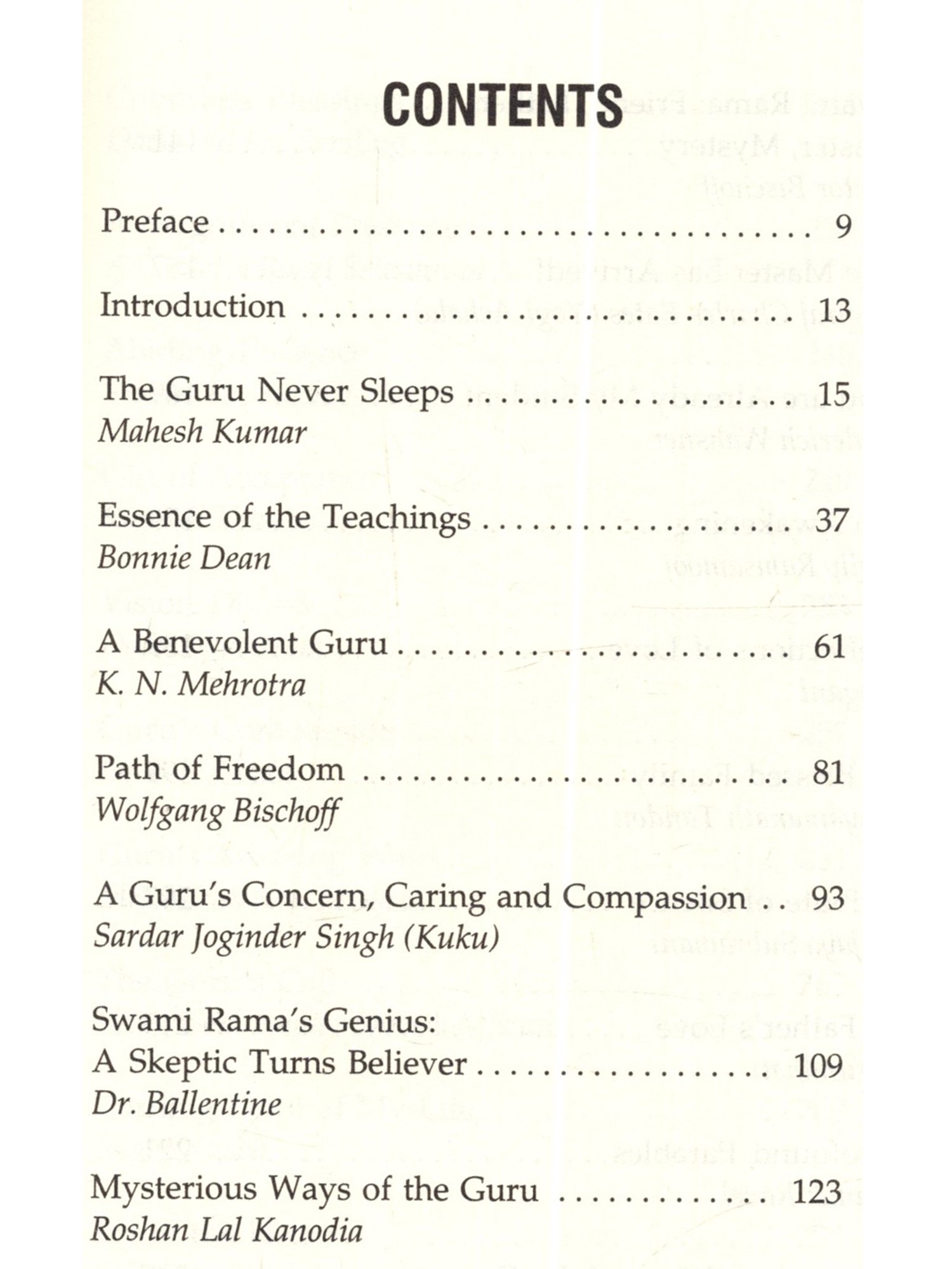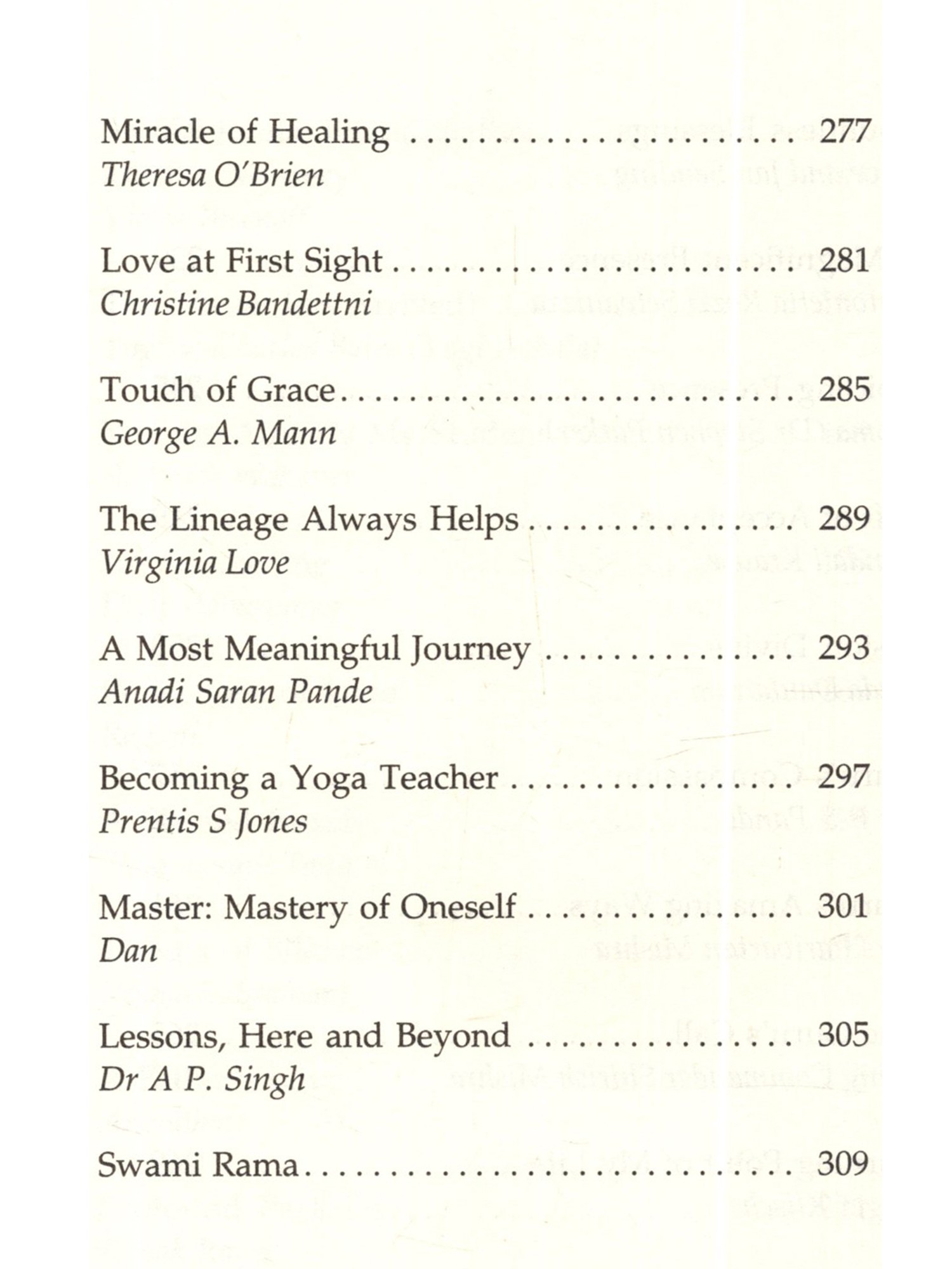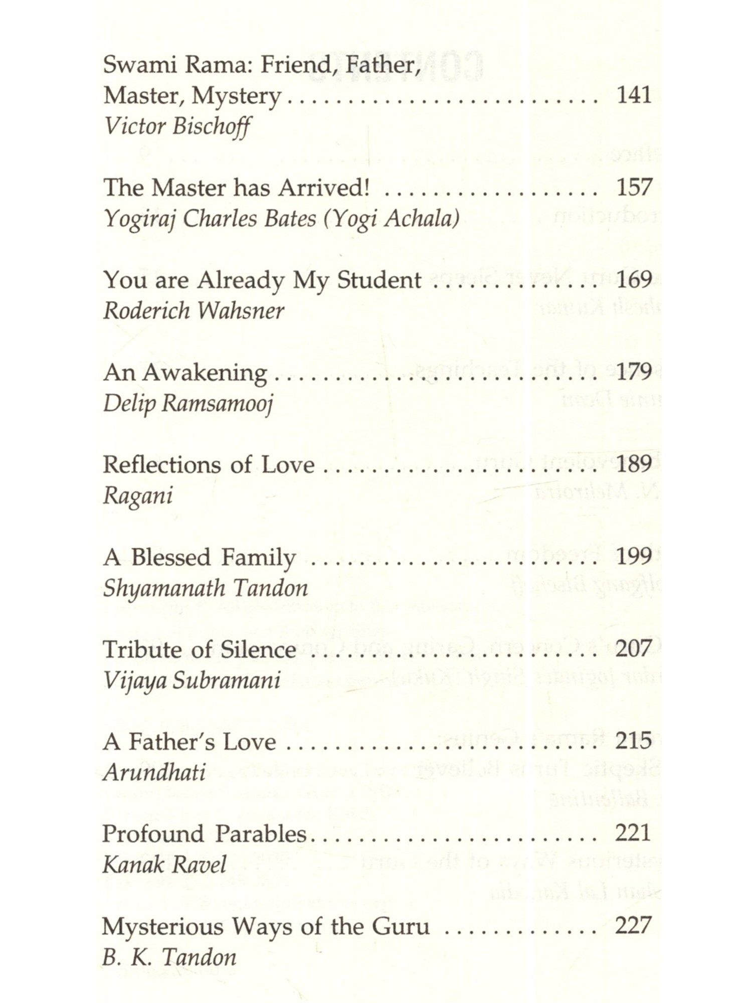 This is a collection of reminiscences of our beloved Gurudev H.H. Swami Rama, lovingly gathered by Mahamandaleshwar Swami Veda Bharati over a period of a few years. The narrators are from diverse backgrounds, diverse cultures, diverse times and diverse climes. The common thread that runs through all their narratives is the loving, compassionate, caring and kind guidance and protection that Swami Rama extended unstintingly.