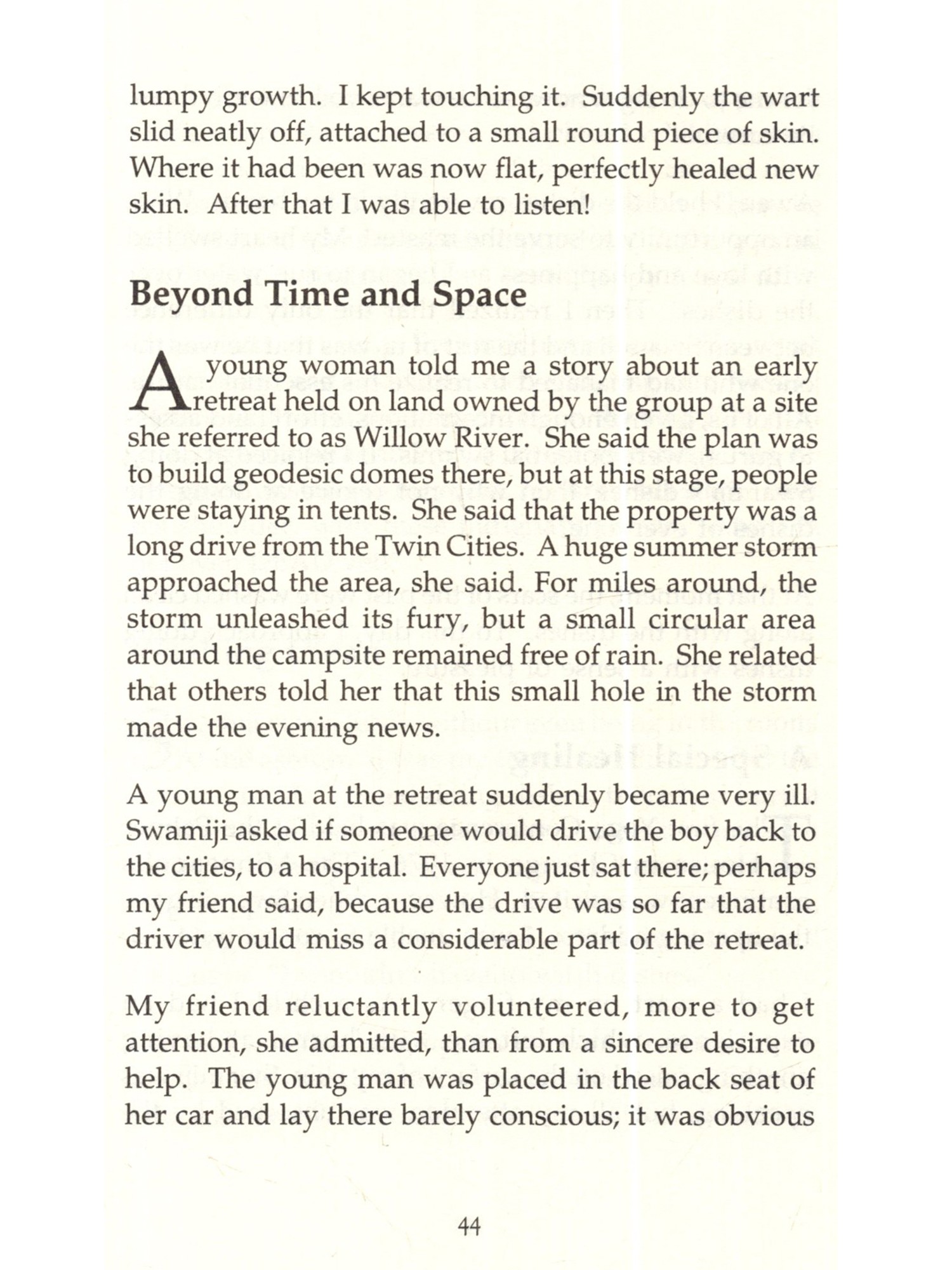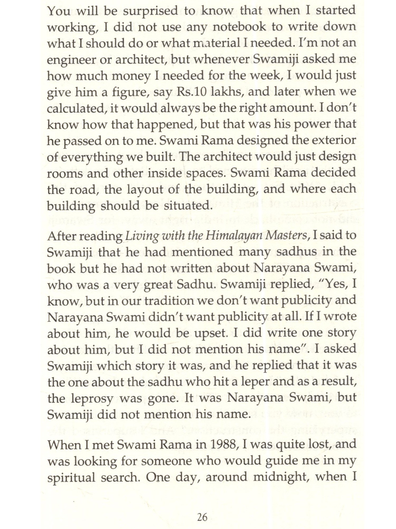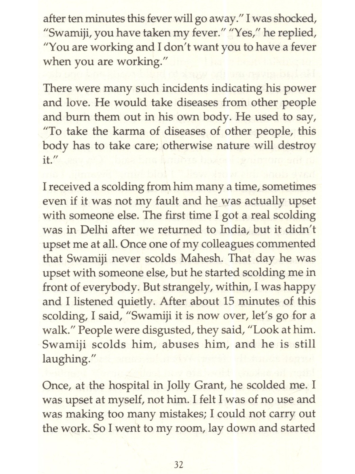 A s the Master's body was surrendered to the flames, and our own minds were burning, it came to my mind to request all present to send their stories of Gurudeva. The stories just came, handwritten or later by e-mails; some in Hindi and some in English. Then a further effort was made; reminders sent. Dr Sheelendra Kumar Vidyarthi was requested to meet as many of Baba's disciples in Kanpur and Allahabad. He did an extensive selfless labor of love and sent the results. Our Guru-sister Maithili and her staff did the initial sorting of all these 'thousand' pages. Dr Vijaya Subramani stayed for many months in Swami Rama Sadhaka Grama and did the initial dividing and classifying of the stories. Dear blessed Abha Dabral took over. She translated Hindi material into English and did the fine-tuning of the entire material with very diligent and conscientious effort. Thus she brought the sundry collection to a comprehensive form. I requested Dr Prakash Dixit, the senior-most resident of our Ashram to guide Abha in the final stages and he went over the work with her many times. Now it was time for me to actually take a look but I was ill and overwhelmed with the work on the Yoga-sutras. How would I go over the whole book and do the final editing? As I struggled, I received an email, out of the blue, from my Guru-brother Dr Prakash Keshaviah offering to do the final editing. Did someone tell him of my difficulty? Did Baba whisper to him? What a relief. I sent it to Dr Prakash Keshaviah to bring the book to its final form. This collective effort is like the "neelotpala-rucha" of Saundarya-lahari, many petals of the blue lotus. The lotus is surrendered to Him from Whom it springs and to Whom it belongs.