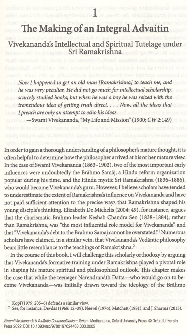 I am grateful to Revered Swami Muktidananda for providing me with an intellectually and spiritually congenial atmosphere to conduct research at the Ramakrishna Institute of Moral and Spiritual Education. In the course of researching and writing this book, I benefited from conversations with the following scholars: Ermine Algaier, Rupa Bandyopadhyay, Arindam Chakrabarti, Amit Churvedi, Nilanjan Das, Matthew Dasti, Jonardon Ganeri, Jonathan Gold, Malcolm Keating. James Madalo, Joseph Milillo, Arpita Mitra, Todd Leroy Perreira, Stephen Phillips, Sister Gayatri Prana, Anantanand Rambachan, Prabal Kumar Sen, Itay Shani, Linda Simon, and Anand Vaidya. For insightful feedback on one or more chapters of the book, I am grateful to Jonardon Ganeri, Itay Shani, Anand Vaidya, Norris Frederick, Matt Seidel, Joseph Milillo, Swami Mahayogananda, Swami Chidekananda, and four anonymous peer reviewers for Oxford University Press. I also had helpful discussions with the following monks of the Ramakrishna Order: Revered Swamis Shivavratananda, Atmavidananda, Bhajanananda, Nityasthananda, Atmarupananda, Atmapriyananda, Balabhadrananda, Muktidananda, Sarvapriyananda, Divyasukhananda, Chandrakantananda, Chidvikashananda, Mahayogananda, Vedanishthananda, Harinamananda, Sukalyanananda, Paramahamsananda, Vedarthananda, Tadvratananda, Pravrajika Vrajaprana, and Brahmacharis Subrata and Nachiketa.