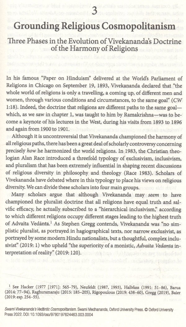 Unfortunately, his philosophy has too often been interpreted through reductive hermeneutic lenses. Typically, scholars have viewed him either as a modern-day exponent of Sankara's Advaita Vedänta or as a "Neo-Vedantin" influenced more by Western ideas than indigenous Indian traditions. In Swami Vivekananda's Vedantic Cosmopolitanism, Swami Medhananda rejects these prevailing approaches to offer a new interpretation of Vivekananda's philosophy, highlighting its originality, contemporary relevance, and cross-cultural significance. Vivekananda, the book argues, is best understood as a cosmopolitan Vedantin who developed novel philosophical positions through creative dialectical engagement with both Indian and Western thinkers.