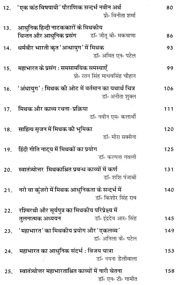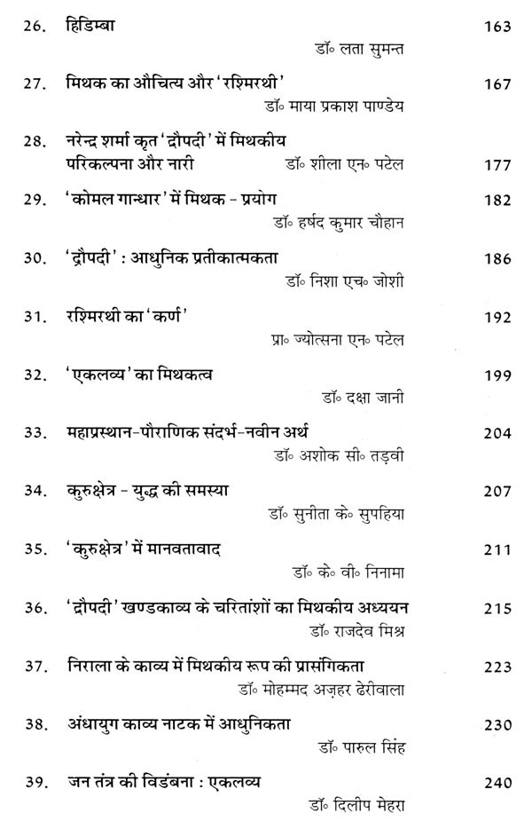 प्रो० सितांशु यशस्चन्द्र (गुजरात), प्रो० मिथिला प्रसाद तिवारी (उज्जैन), डॉ० हेतु भारद्वाज (जयपुर), डॉ० रामस्नेही लाल शर्मा (फिरोजाबाद), सुश्री अरुणा ढेरे (वर्धा), डॉ० प्रज्ञा जोशी (अहमदाबाद), श्री रवीन्द्र गोड़बोले (पूना), प्रो० नवनीत चौहान (सरदार पटेल विश्वविद्यालय, वल्लभ विद्यानगर) प्रो० महेश चंपक लाल (महाराजा सयाजीराव विश्वविद्यालय, बड़ौदा), प्रो० दया शंकर त्रिपाठी (सरदार पटेल विश्वविद्यालय, गुजरात) आदि विद्वानों ने विविध दृष्टियों से साहित्य में मिथक, महाभारत और नयी अभिव्यंजना पर व्याख्यान दिये।