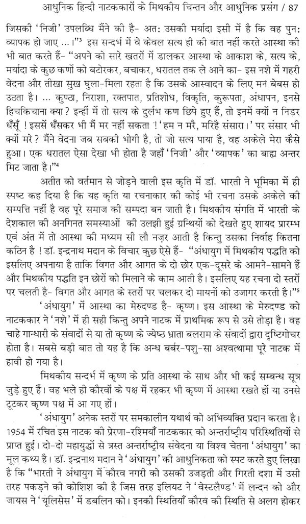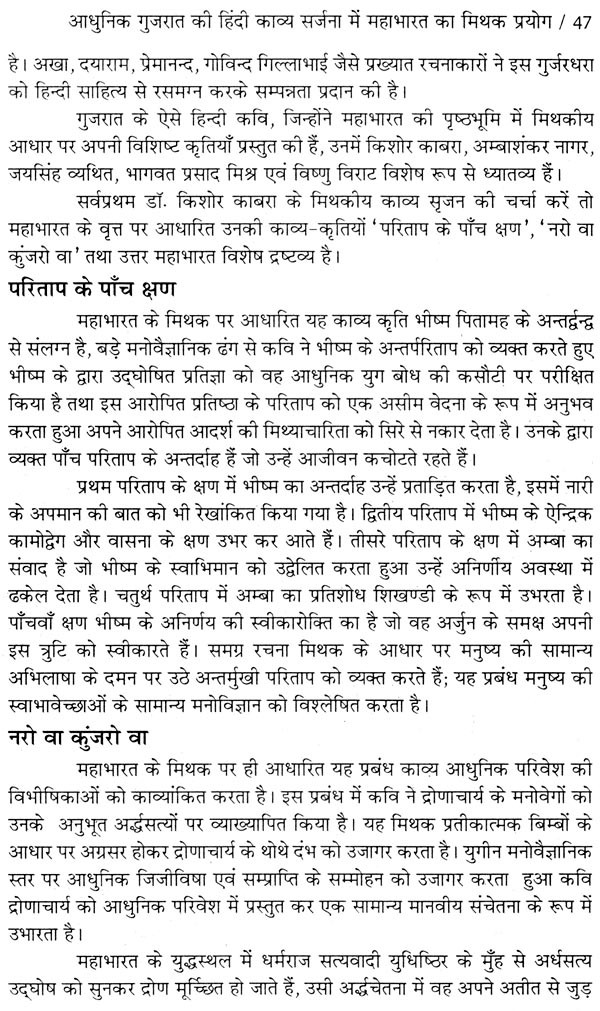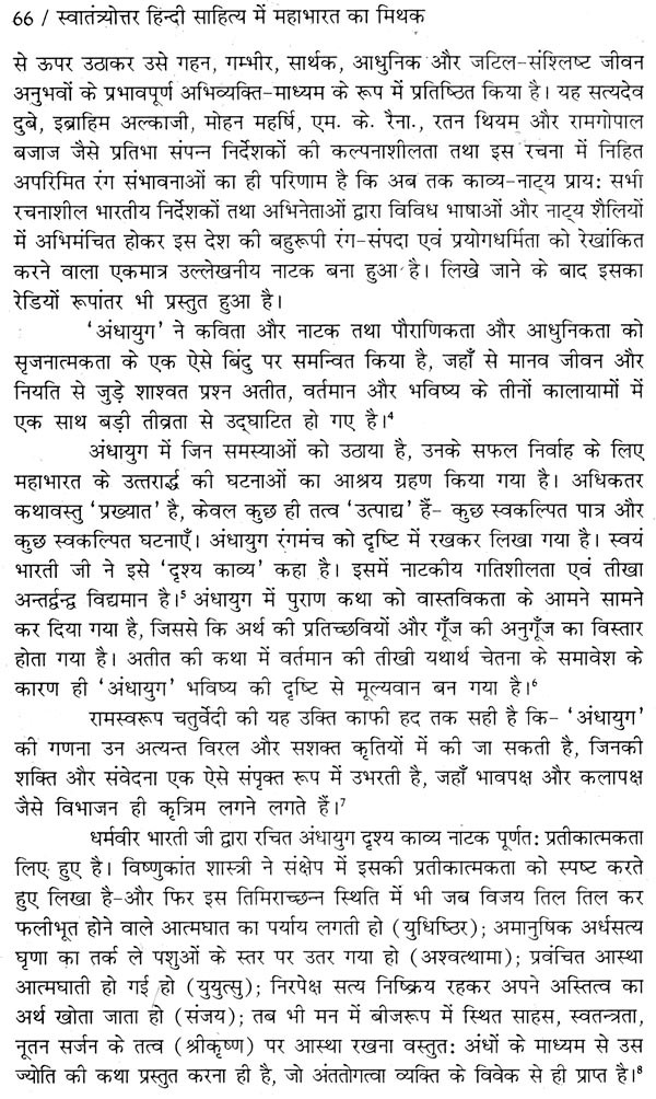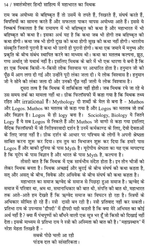 महाभारत एक ऐसा मिथक है जो सुदीर्घ अतीत से संबंधित होने पर भी वर्तमान की जटिल परिस्थितियों को समझने एवं अनुत्तरित प्रश्नों के उत्तर देने में सक्षम है। यह भारतीय संस्कृति का एक ऐसा महाआख्यान है जो शताब्दियों के मध्य पुनर्वर्णित, पुनर्लिखित और पुनर्व्याख्यायित हुआ है। 18 पर्वो में विभाजित इस महाग्रंथ में लगभग एक लाख श्लोक हैं। इतिहास, धर्म, दर्शन, नीति, भूगोल, राजनीति और पुराण तत्त्व के समन्वित रूप का यह एक अद्भुत ग्रंथ है। मनुष्य चरित्रों की वैविधता, मानव स्वभाव के विभिन्न स्वरूप, द्वन्द्वात्मक स्थितियों की विभिन्न जटिलताएँ जितनी इस महाआख्यान में हैं उतनी संभवतः किसी और शास्त्र में नहीं हैं। यही कारण है कि महाभारत हर युग के रचनाकार को अपनी युगीन परिस्थितियों और वैचारिकी की संकल्पना को मूर्त आकार देने में सहयोग प्रदान करता है।