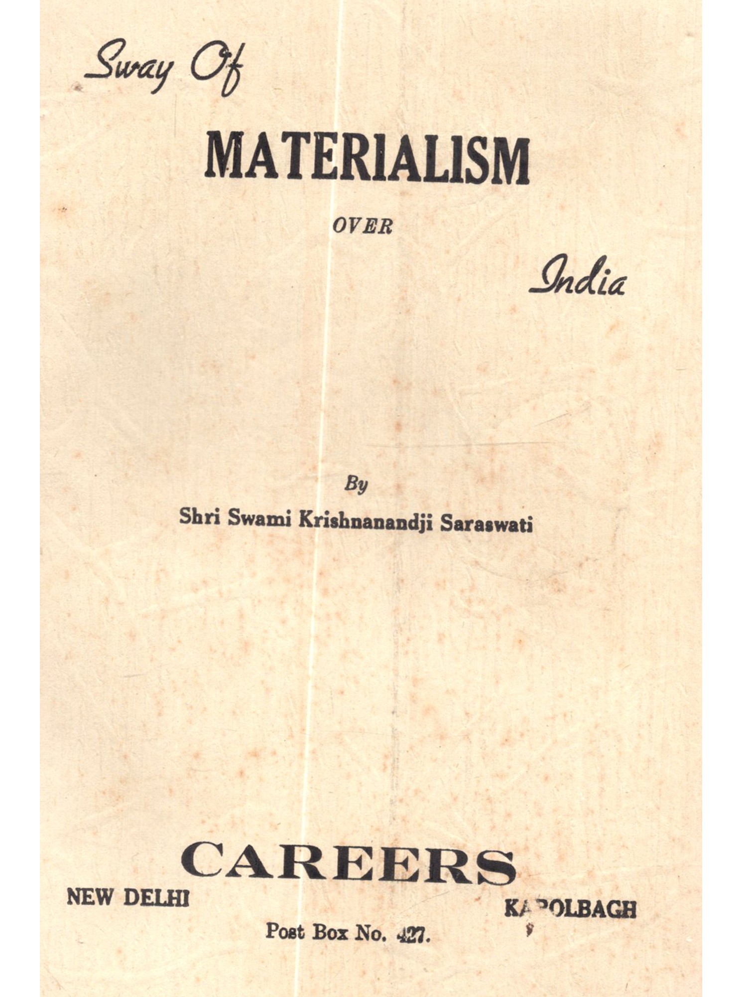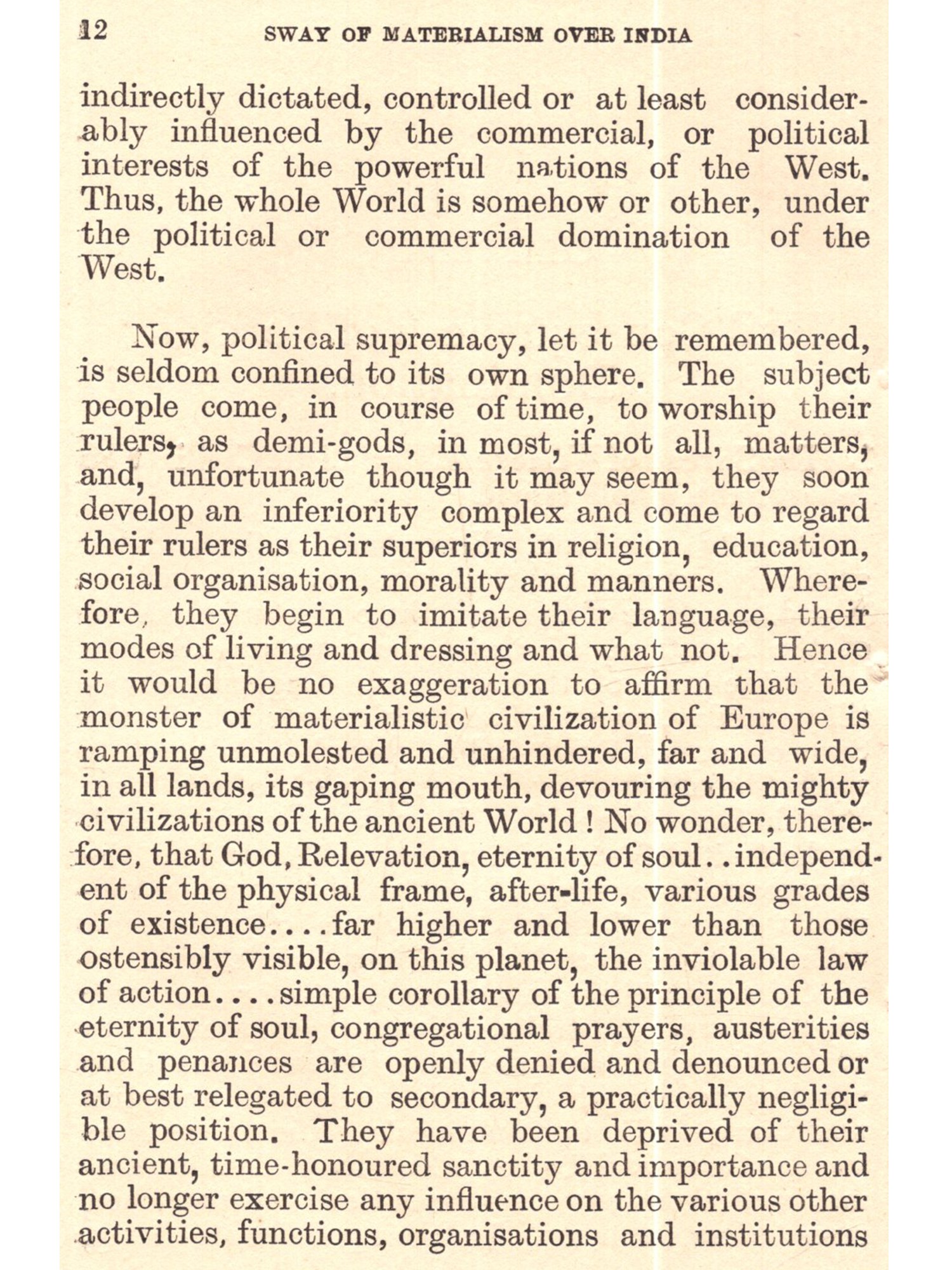 Sway of Materialism Over India (An Old and Rare Book)