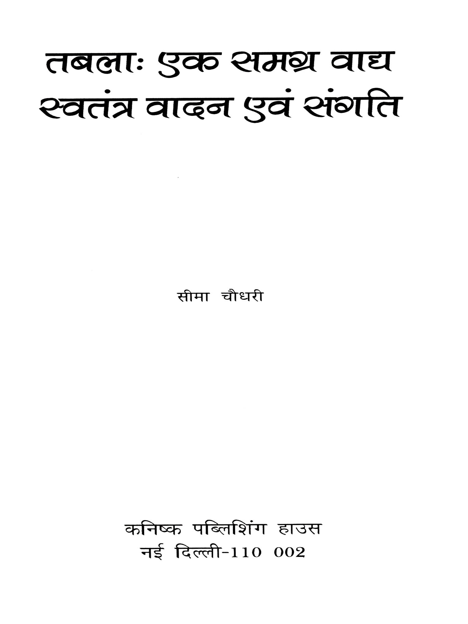 तबला- एक समग्र वाद्य- स्वतंत्र वादन एवं संगति: Tabla - Ek Samagra Vadya- Swatantra Vadan Evam Sangati