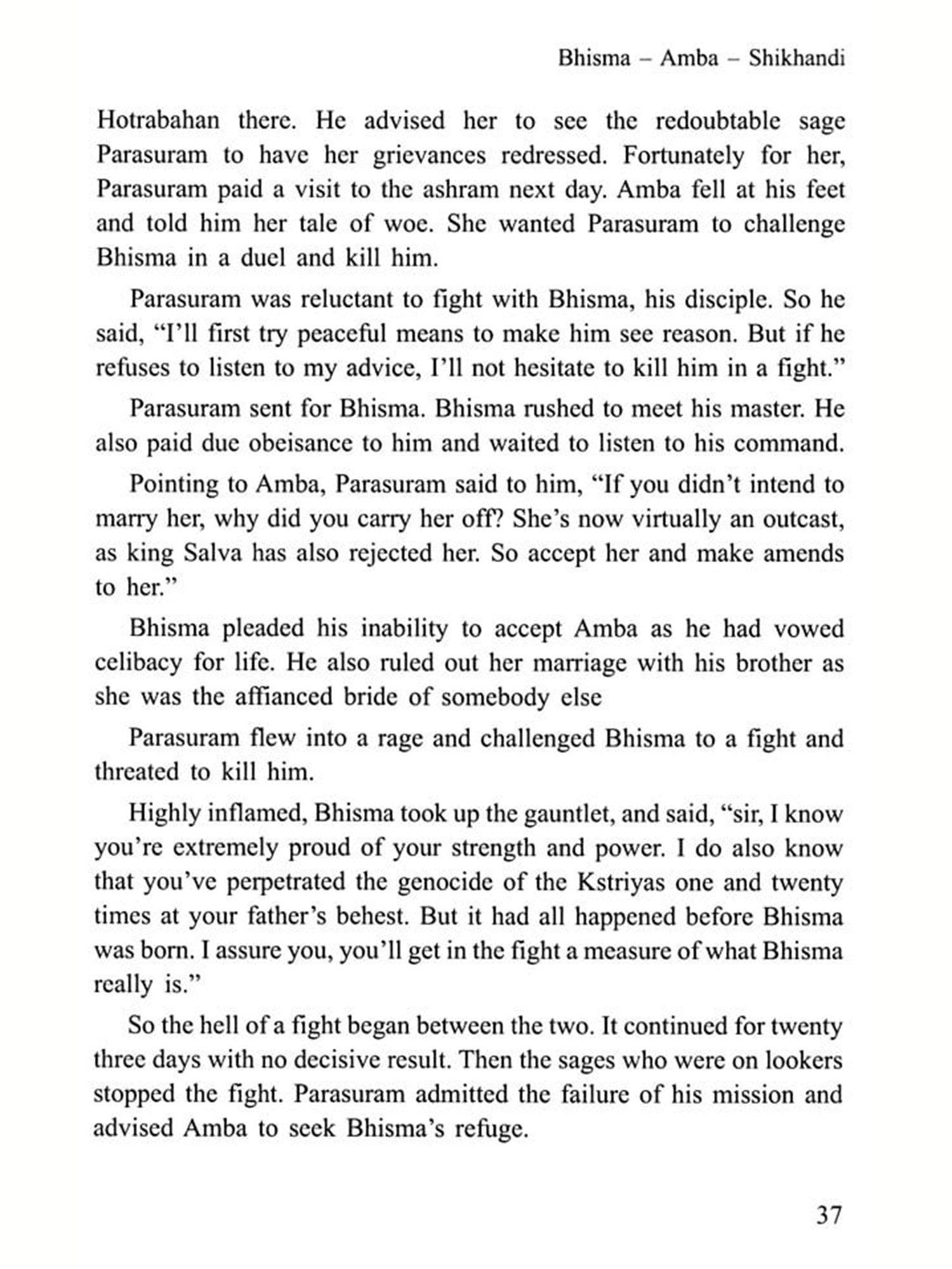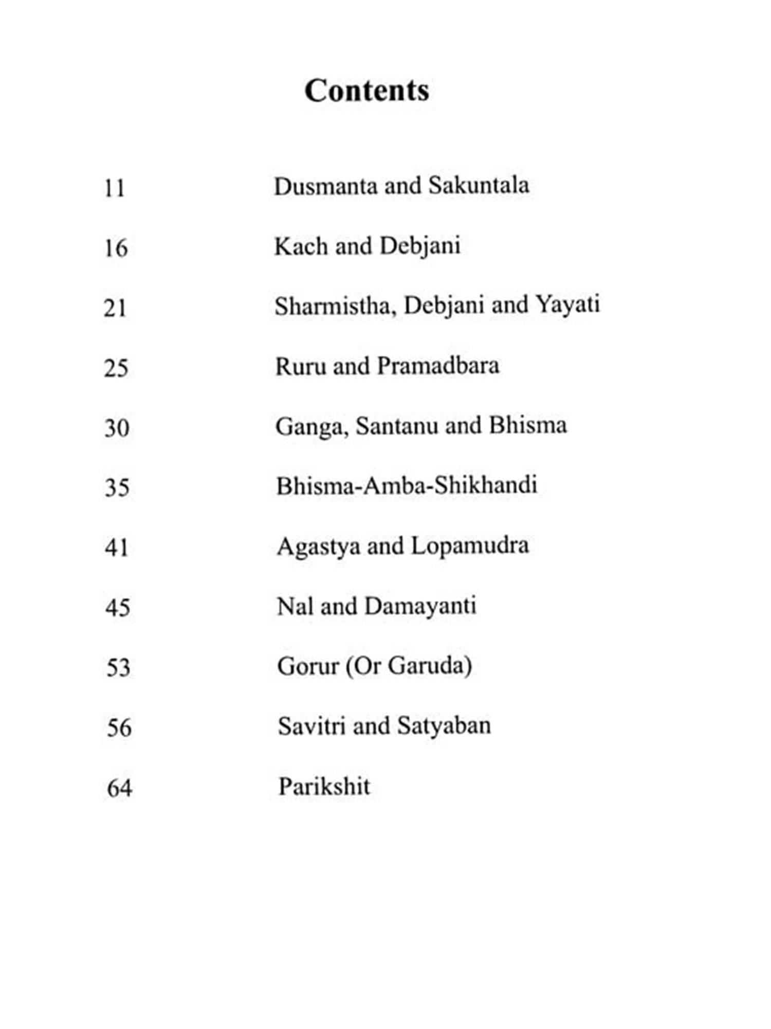 The book contains eleven stories, chosen at random, from the Mahabharata. They have been written strictly according as they are told in the Mahabharata by Vyasdeva. The stories are as in the original, only the style is mine.