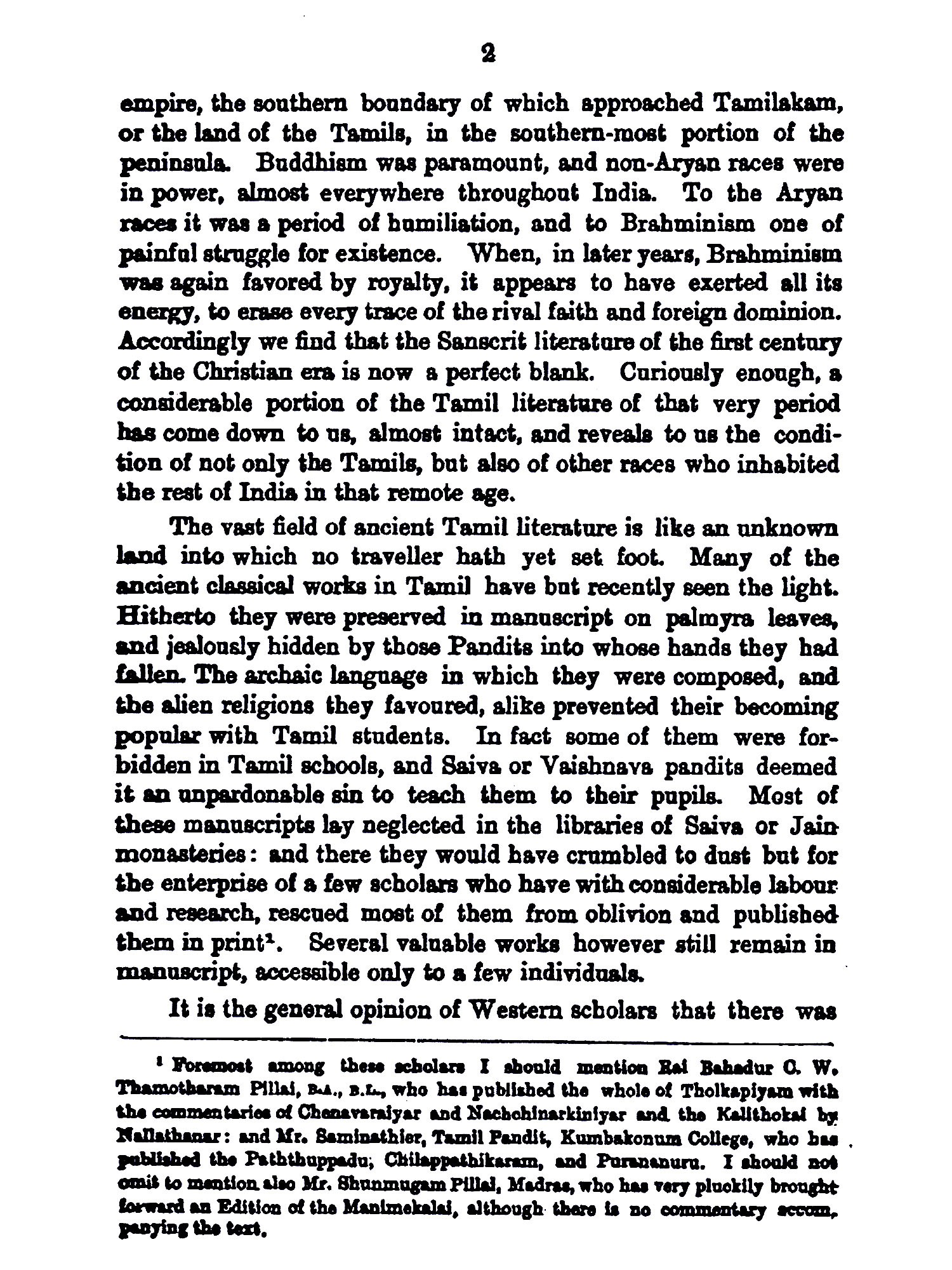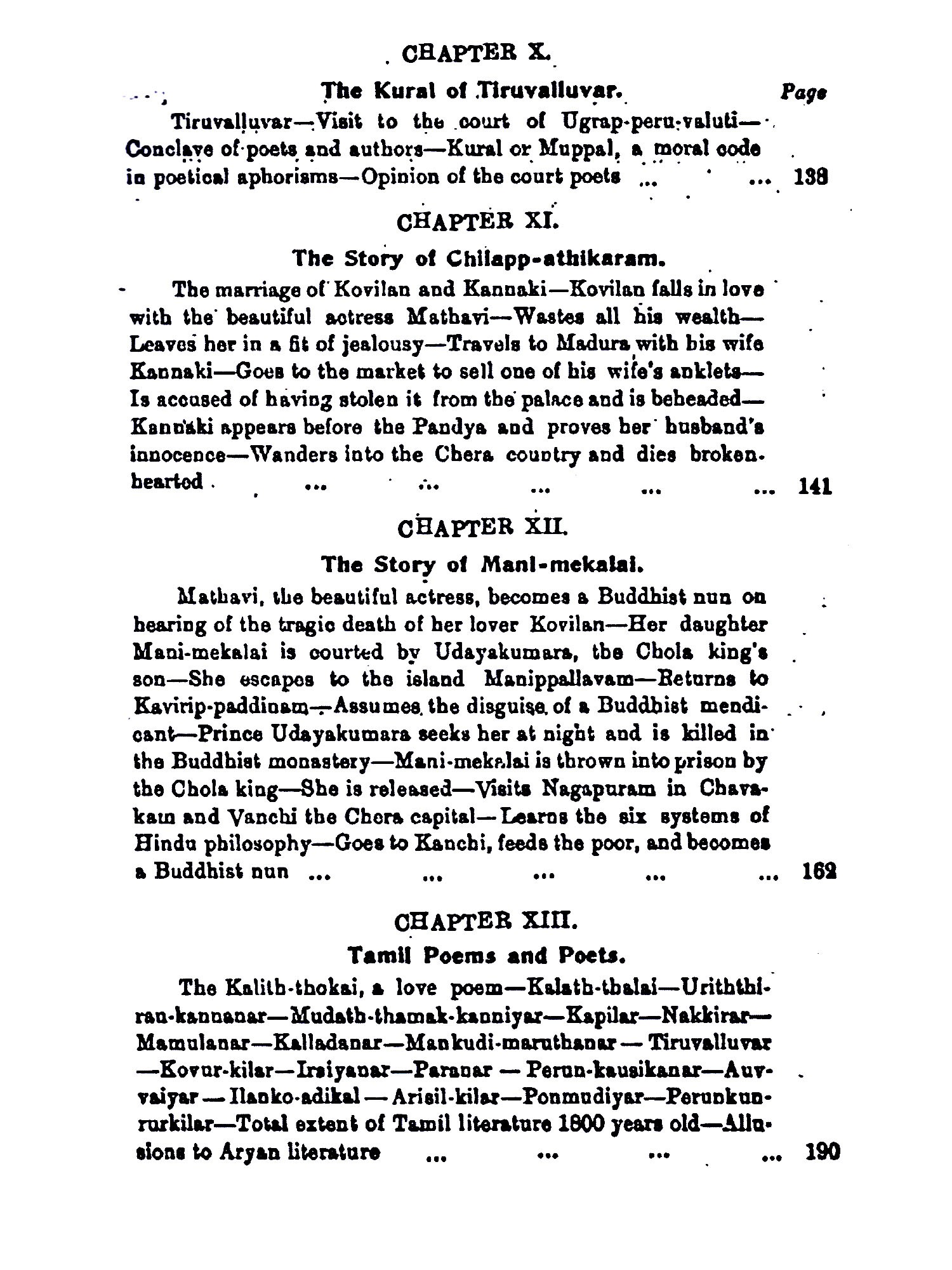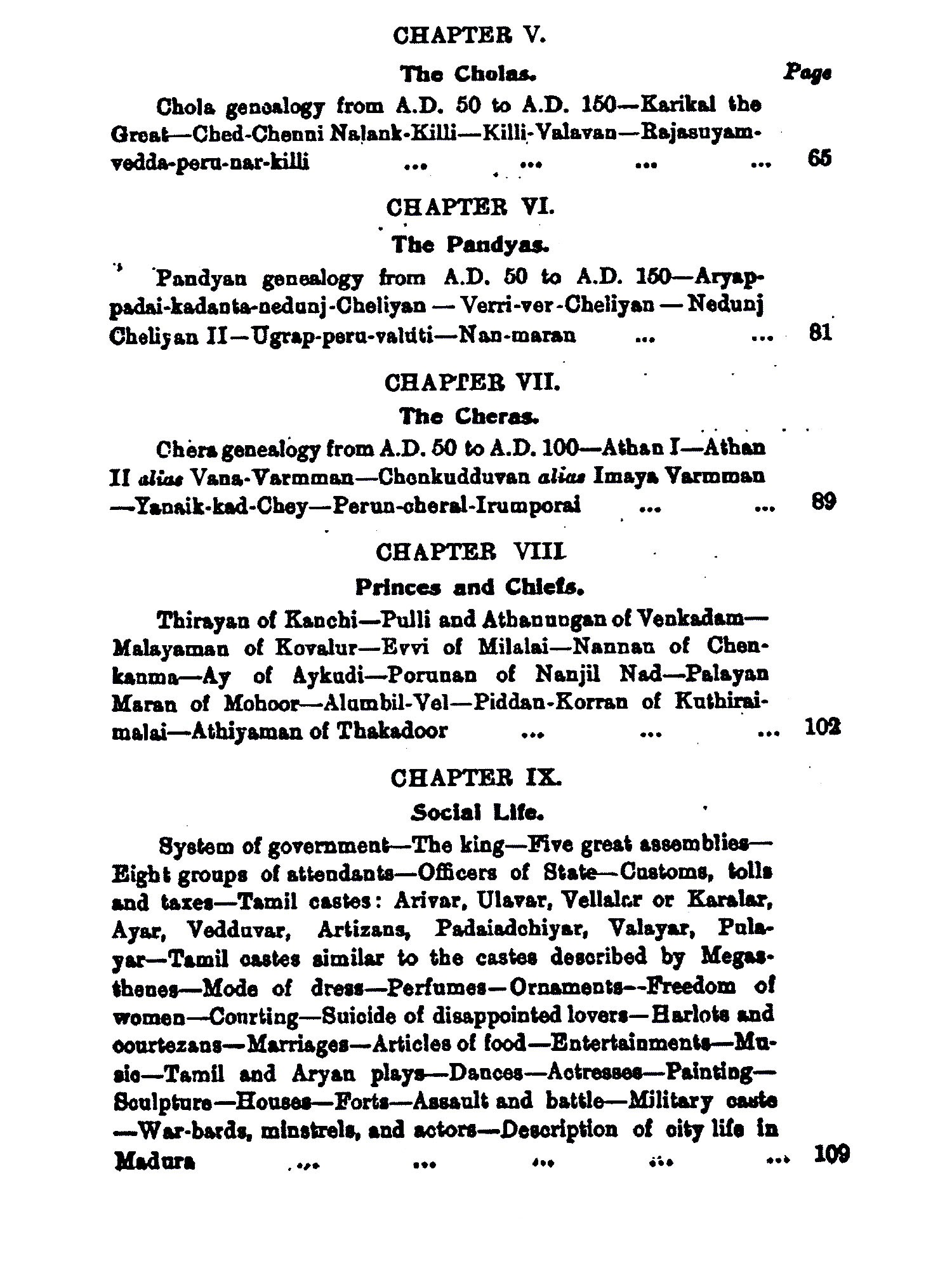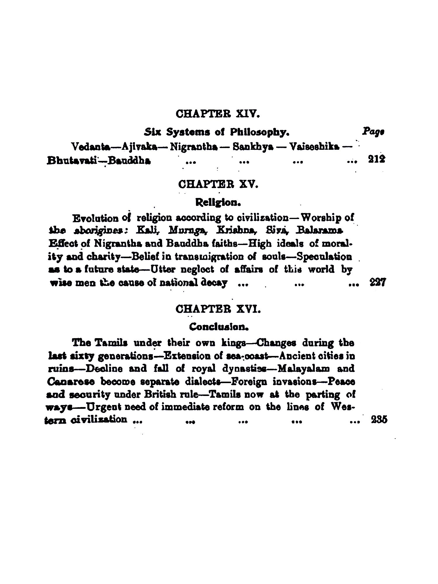 A series of articles on the "Tamils Eighteen Hundred Years Ago" was contributed by me to the Madras Review between the years 1895 and 1901. On the appearance of the very first article, Sir 8. SUBRAMANYA IYER wrote to me suggesting that I should bring out all the information available in Tamil literature regard-ing the ancient civilization of the Tamils. I believe I have carried out the suggestion faithfully, as far as my leisure would permit. Since the completion of the series, many of my friends advised me to collect and publish the whole in the form of a book. I have therefore re-arranged the matter, dividing it into chapters, and added an Index, which I hope will facilitate reference. With a view to confine myself strictly to the subject of the book as shown in the title, I have carefully avoided touching upon the history of the Tamils before A.D. 50 or after A.D. 150