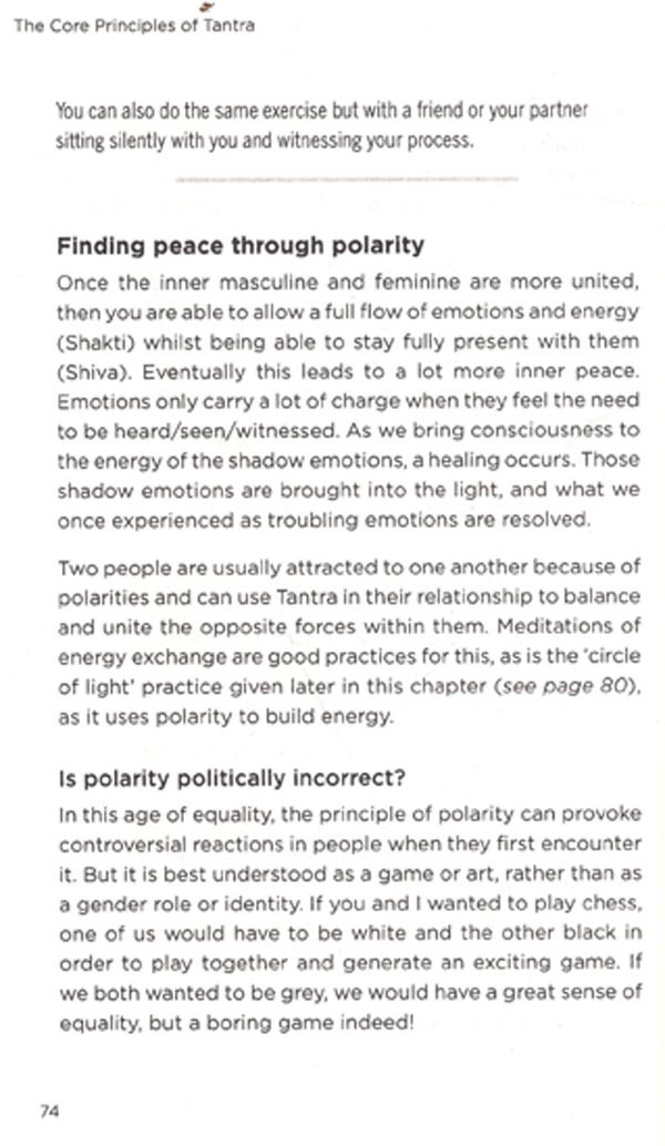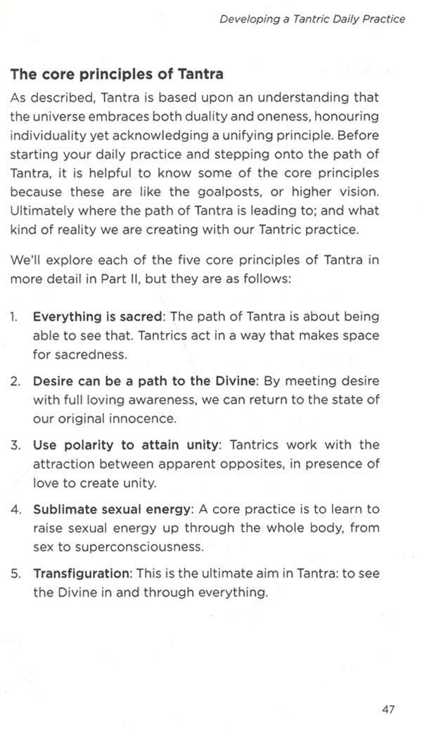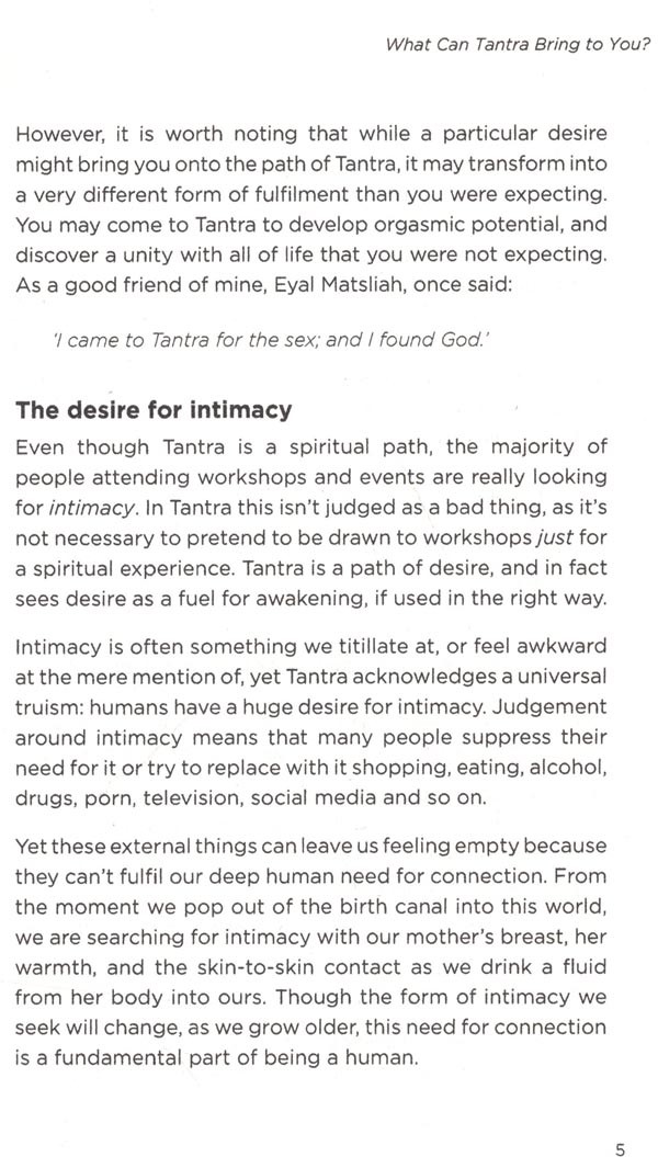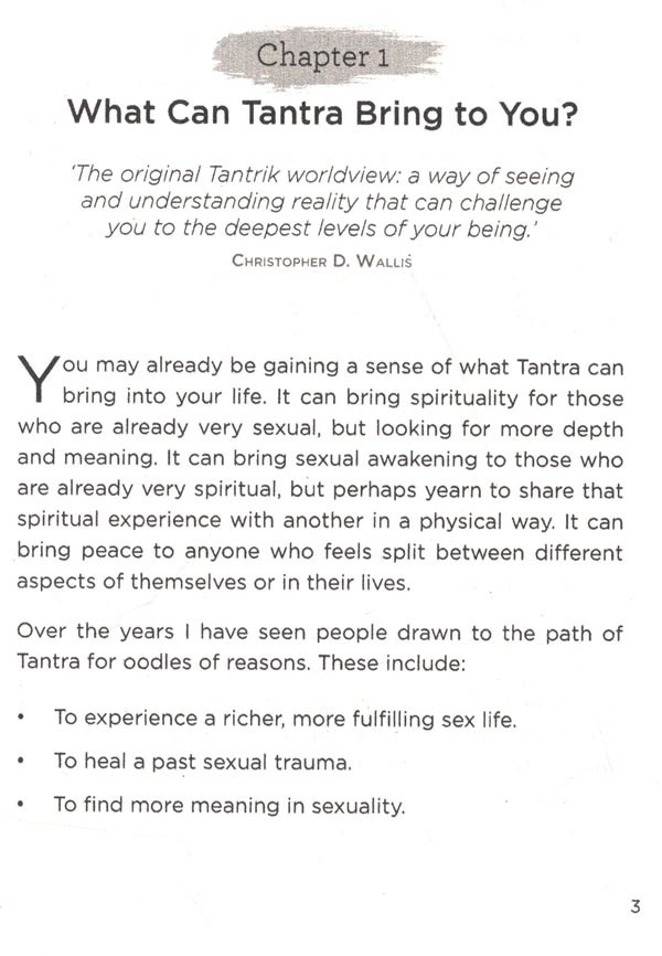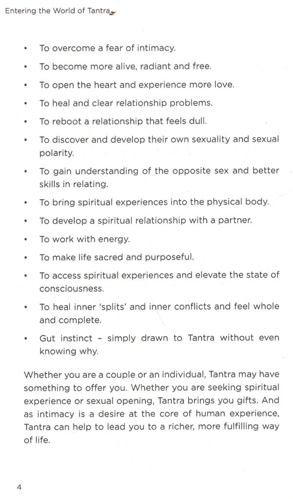 Tantra is about uniting all that has become split apart creating wholeness, healing and totality so at last your life can flow with ease and with a sense of 'choicelessnes There is one way, one truth Life becomes a river that you can flow along with, rather than a complex planning strategy, a confusing chaos or a painful battlefield.