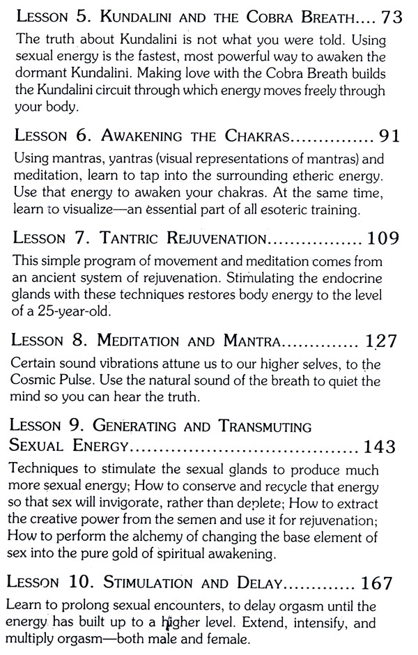 * Leam to direct orgasmic energy to the brain and awaken dormant brain cells, expanding your senses.