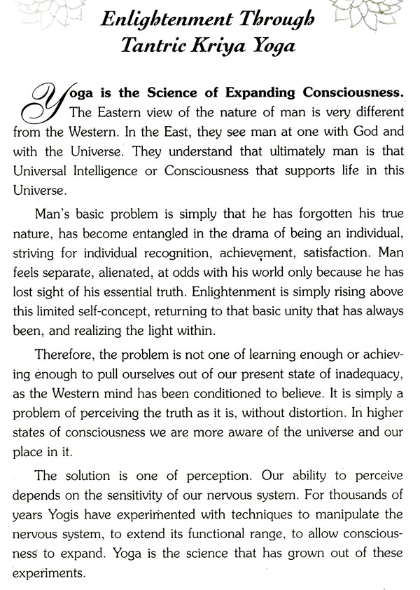 Rarely does a published work of consummate stature, written with such sensitivity and openness to truth, satisfy our growing need for answers and preparation on the spiritual path. The Tantric Path to Higher Consciousness is clearly this exceptional contribution to the Tantric Yoga tradition-for all students, beginners and advanced.
