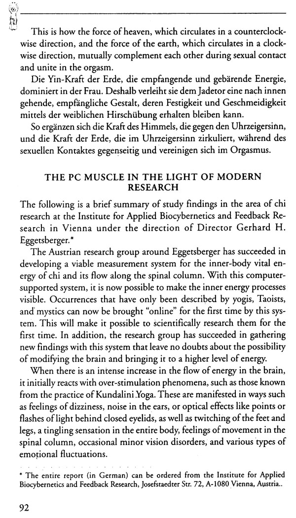 The Taoist erotic arts call sexuality the original source of all being-the power that produces every phenomena of life: from infinitely great joy to utmost pain. Invisible and always present, this sexual energy permeates our daily, life. We can use its unlimited power to prolong and en-rich our lives.
