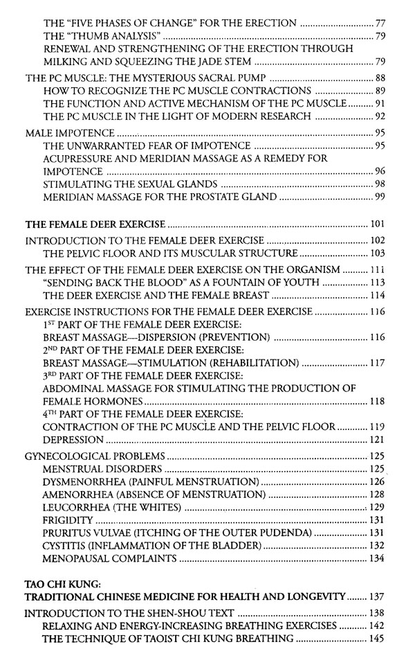 The Taoist tradition of the eight ancient Chinese diagnosis, therapy, and healing procedures takes into account the changing quality and quantity of the relationship between matter and energy, body and mind, breath and movement, as well as sexuality and nutrition. This book concentrates on the three practical aspects and is based on the following pillars of the ancient Chinese diagnosis, therapy, and healing procedures, which have always been of great interest to men and women throughout the entire world: