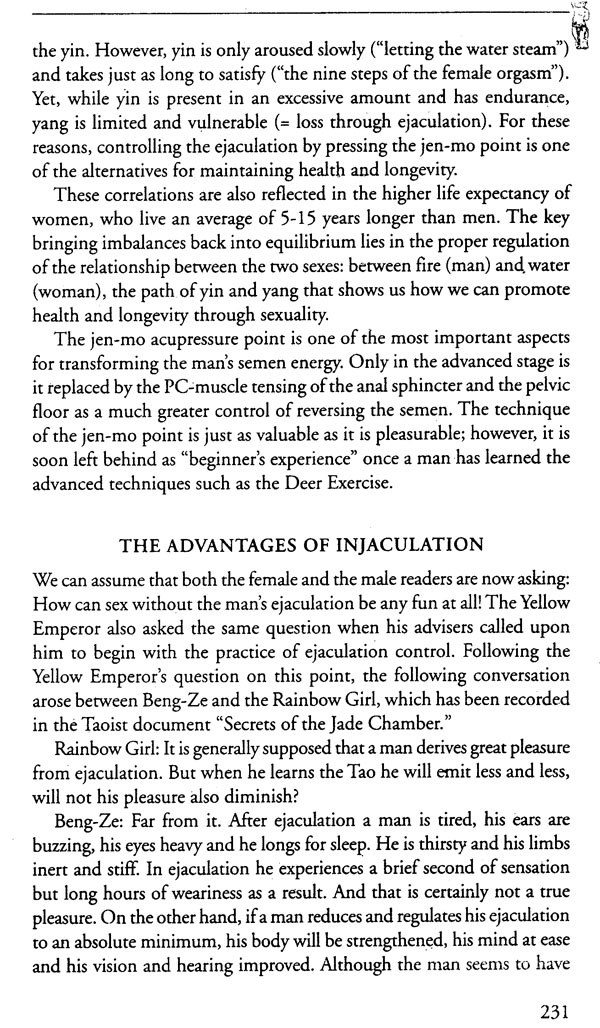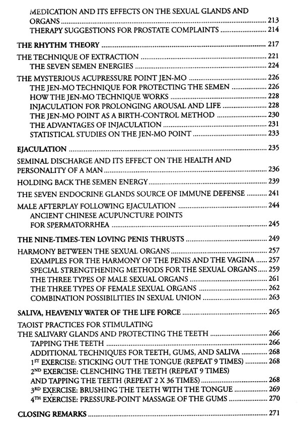 Thanks to the Taoist sages, who established the oldest and most lasting civilization in the world, it became possible for the deeper sexual truth between man and woman to develop. It is more than a philosophy of life. It is an all-encompassing lifestyle and the only possibility for achieving enjoyment of love's delights is by practicing these forms of the sexual-therapeutic exercises. Fortunately, the ancient Taoist sages have left us an abundance of records on the path of sexual longevity in the form of ancient Chinese bedroom secrets, the so-called "Taoist Pillow Books.
