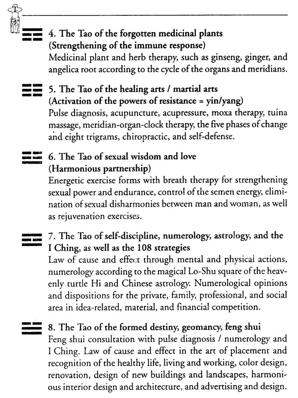 My remarks in this book are largely based on the evaluation of authentic ancient Chinese sources from Japanese, Korean, and Chinese masters of the healing and martial arts, as well as professors of Western and Eastern medicine. I would also like to point out that I have been personally practicing all of the exercise forms described here for more than 30 years and also teach them in our German-Chinese Chi Kung and Feng Shui Academy and Rheumatism Health Center in Nuremburg. This book is therefore based on experiences that I have had personally or that have been had by patients who I have taught or provided with therapy, as well as the scientific basis of Taoism and the eight ancient Chinese diagnosis, therapy, and healing procedures for health and longevity.