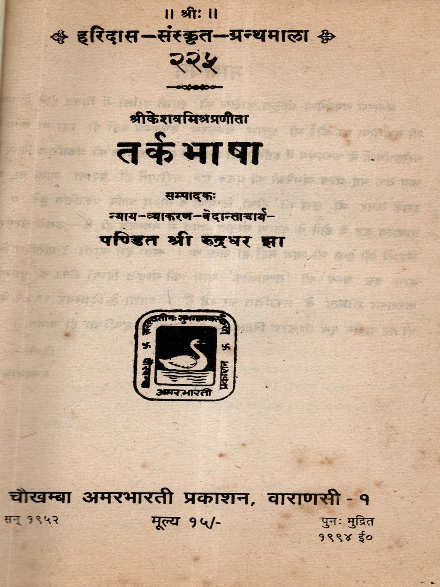 तर्कप्रदीपः Tarka Pradipa (An Old and Rare Book)