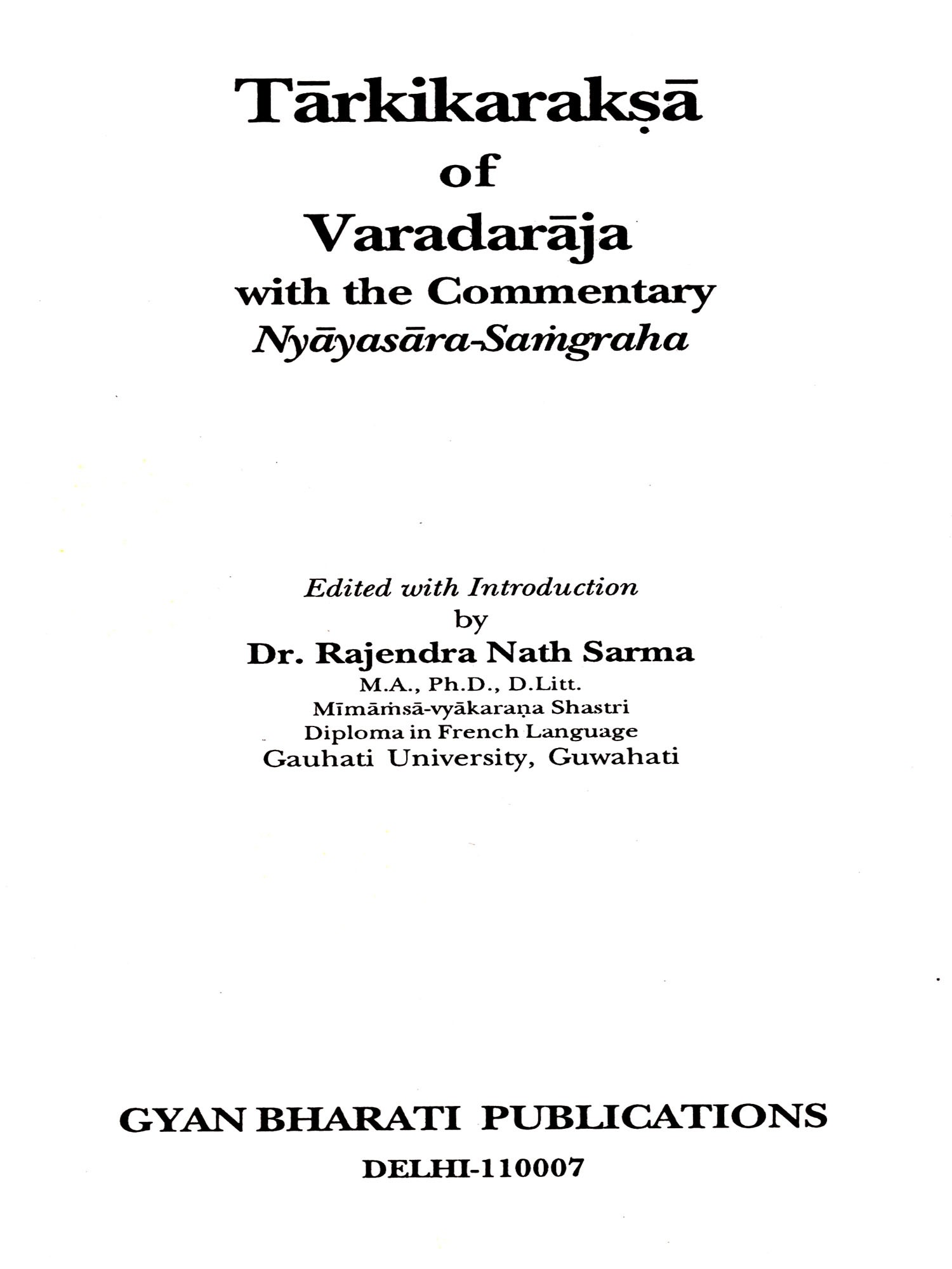 तार्किकरक्षा (तदीयन्यायसार-संग्रहव्याख्यासहिता): Tarkikaraksa of Varadaraja with the Commentary Nyayasara-Samgraha