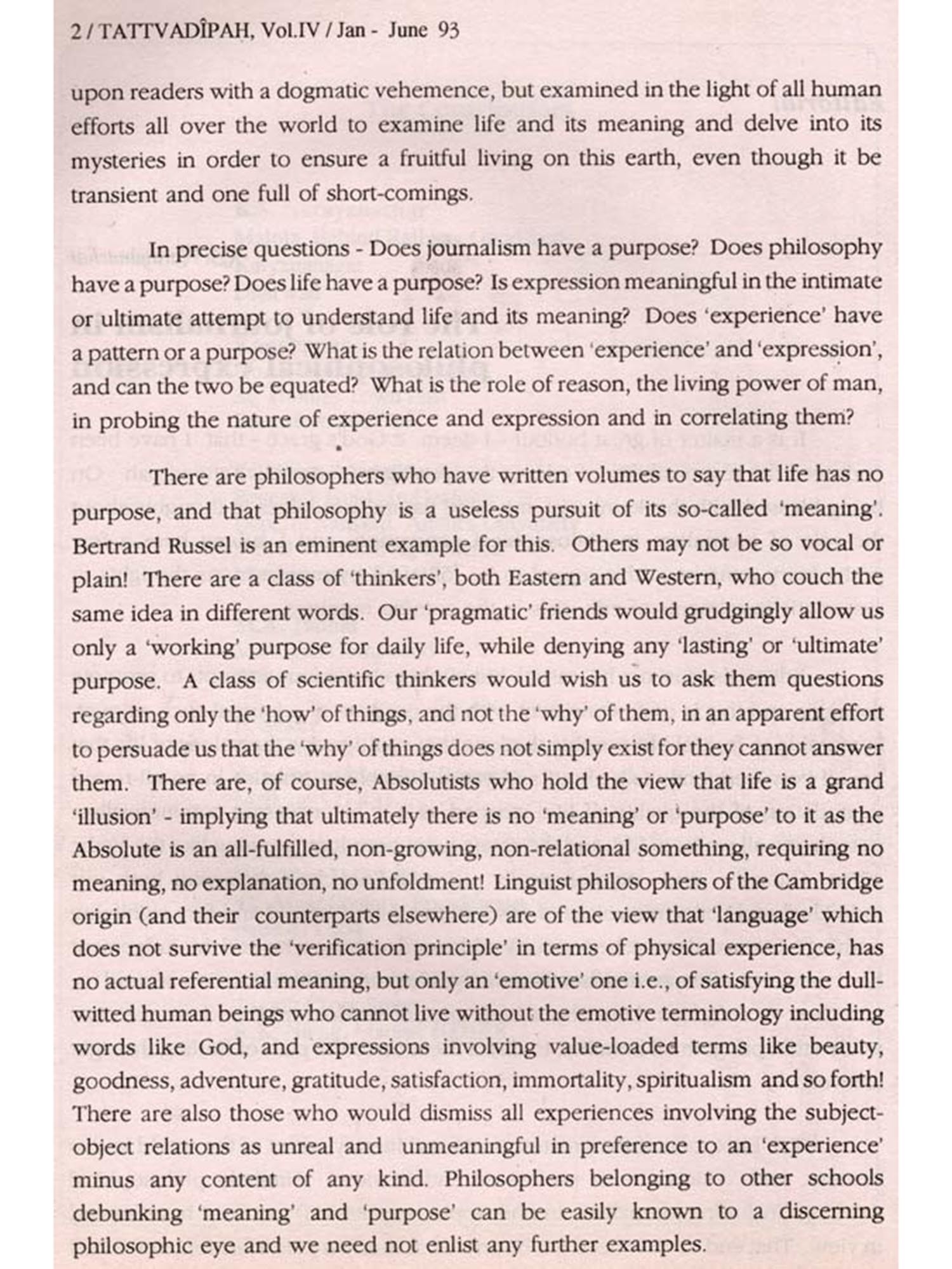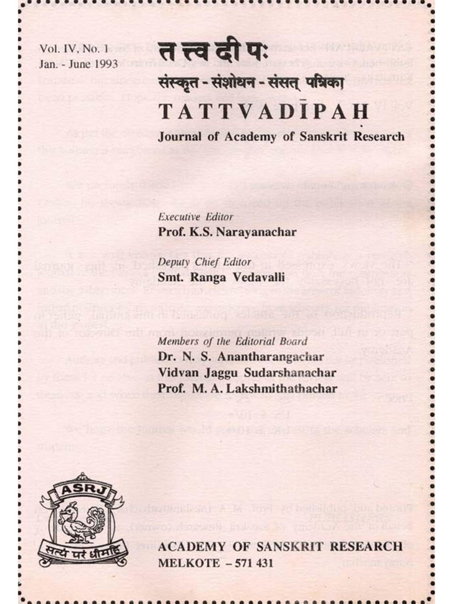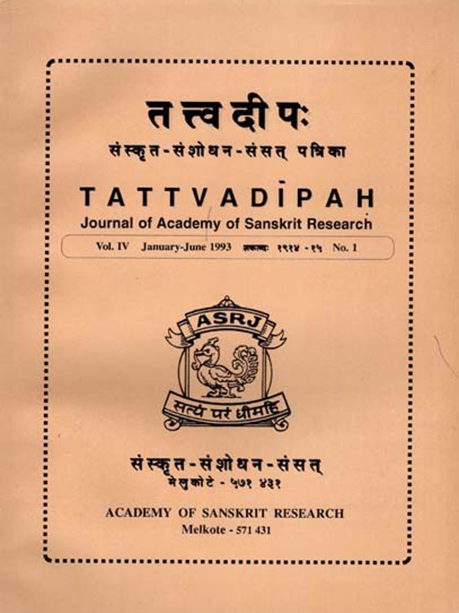 तत्त्वदीपःTattvadipah- Journal of Academy of Sanskrit Research Volume-4 No. 1 January- June 1993 (An Old and Rare Book)