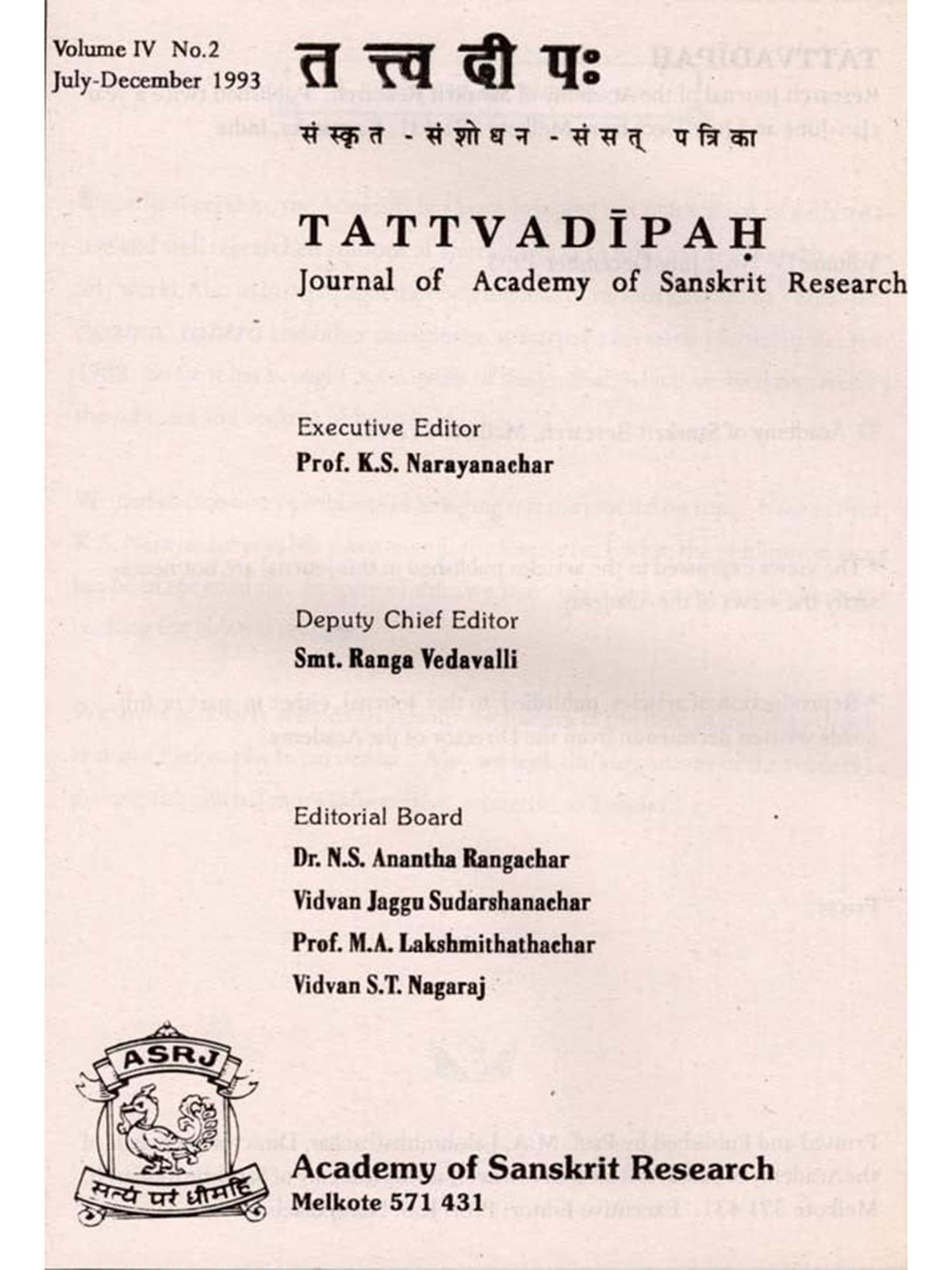 तत्त्वदीपःTattvadipah- Journal of Academy of Sanskrit Research Volume-4 No. 2 July- December 1993 (An Old and Rare Book)