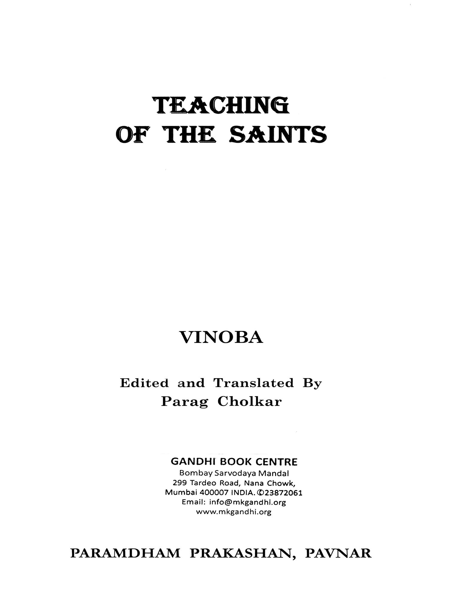 What Vinoba spoke or wrote on various saints has been compiled in Vol. 9, 10 and 11 of 'Vinoba Sahitya' (Selected works of Vinoba in Hindi) by Gautam Bajaj. It is mainly on the basis of the material therein that this book has been prepared.