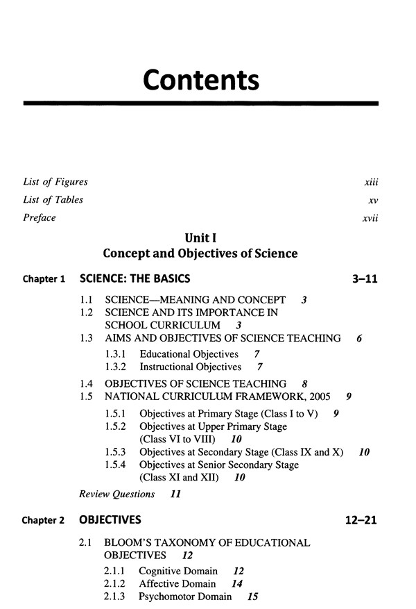 Unit 1 Concepts and Objectives of Science: This unit deals with the concept of science, its importance in school curriculum and objectives of science teaching.