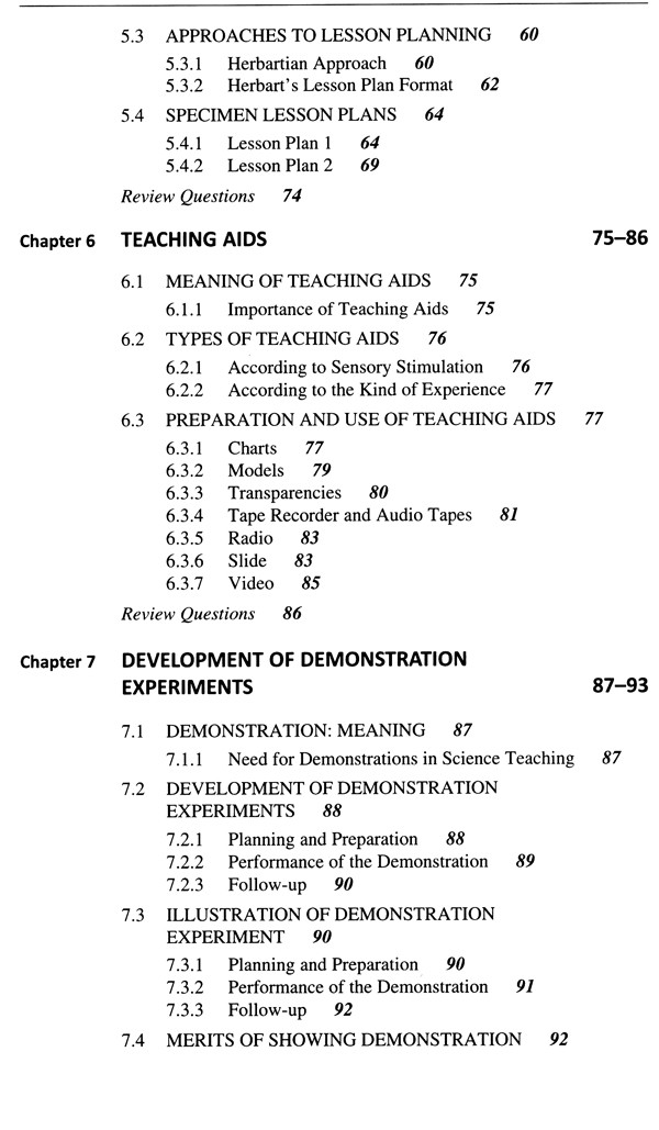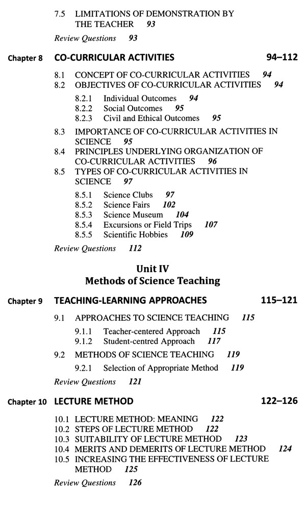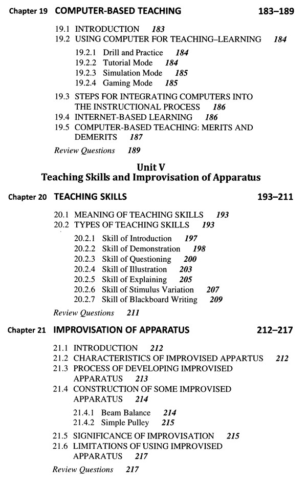 Unit V Teaching Skills and Improvisation of Apparatus: This unit covers the improvised apparatus and various teaching skills a science teacher should possess.