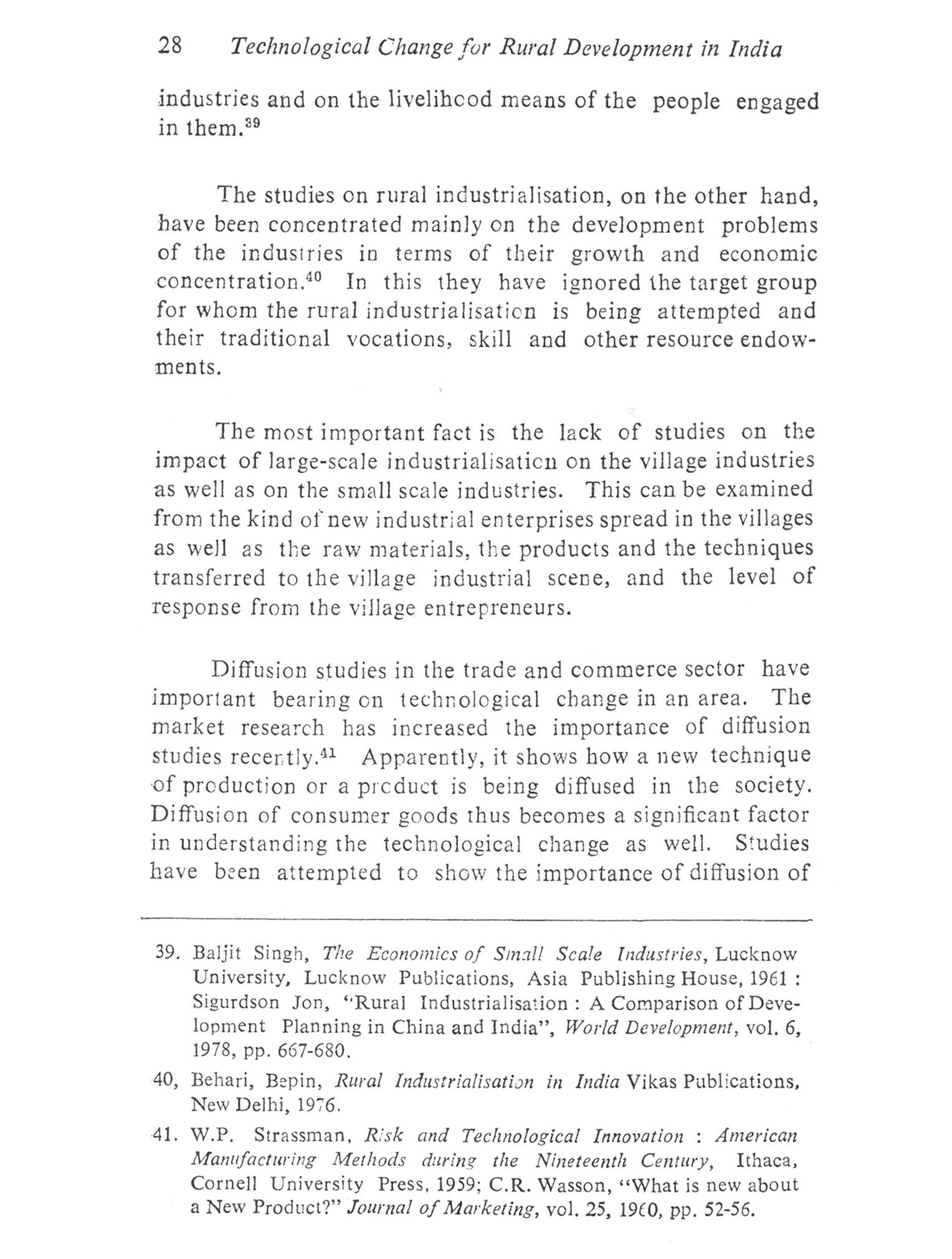 The work provides an alternative to the study of factors interacting with Science, Technology and Society within a Science Policy perspective. It analyses the horizontal transfer of technology in the rural areas to delineate the phenomenon of technological change in the Indian rural developmental context. It elucidates the 'induced technological change' in terms of the tools, techniques and products diffused in the various sectors of production and consumption, such as agriculture, fisheries, industry, trade and commerce, household and electrification, over a period of time from, 1951 to 1977, based on extensive field research from household level to the highest organisational level in the state. Its impact has been studied from the magnitude of its interaction with some relevant socio-economic and organisational factors in different sectors. On the basis of the empirical evidences the 'induced model of rural development' initiated by a technological change, mainly in the agriculture sector has been held as inadequate for rural development planning in the country to posit a model of integrated sectoral development and technology policy thereof. A study of this kind is rarely attempted within the frame-work of interaction of science, technology and society. Authenticity and depth being its hallmark it should prove valuable to a wide spectrum of scholars in the field of Science Policy, Sociology, Economics and Rural Development as well as to those who are in the arena of planning and policy making on rural development.