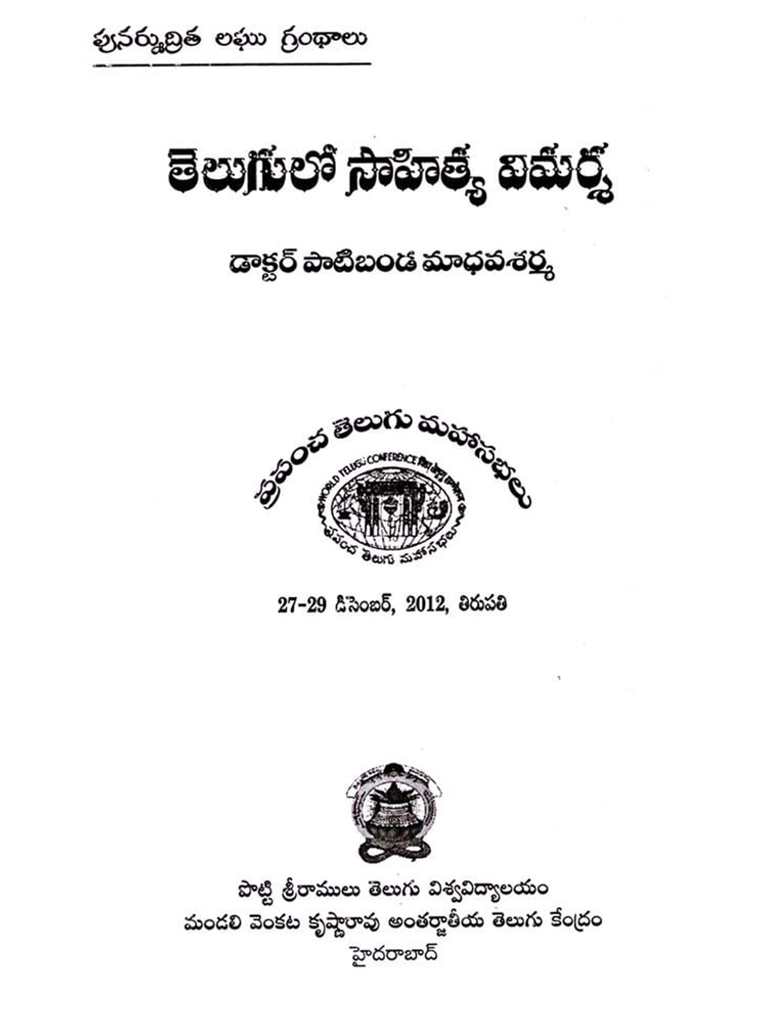 కవిబ్రహ్మ: Kavi Bramha- World Telugu Conferences (Telugu)