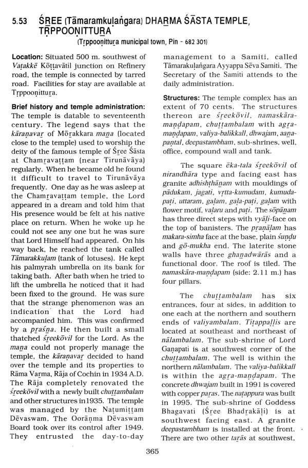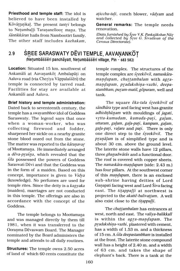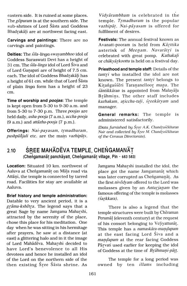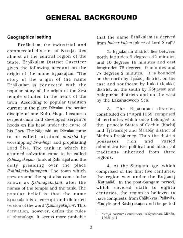This monograph titled Temples of Emakulam District, which is eighth in the District monograph-series, has a special significance as the district can claim to have the birth place of the renowned philosopher-saint Sree Sankarachaarya in it By adopting best elements of Hinduism and Buddhism in his teachings and methods he became the mastermind of cultural synthesis in India. Born at Kaladt on the northern bank of Poorna river (Pertyar) in Ernakulam district he also made signal contributions to the philosophy and practice of Hindu religion. The history of temples of the district is inter woven with his association, which include those temples he worshipped, consecrated or pooja system introduced.