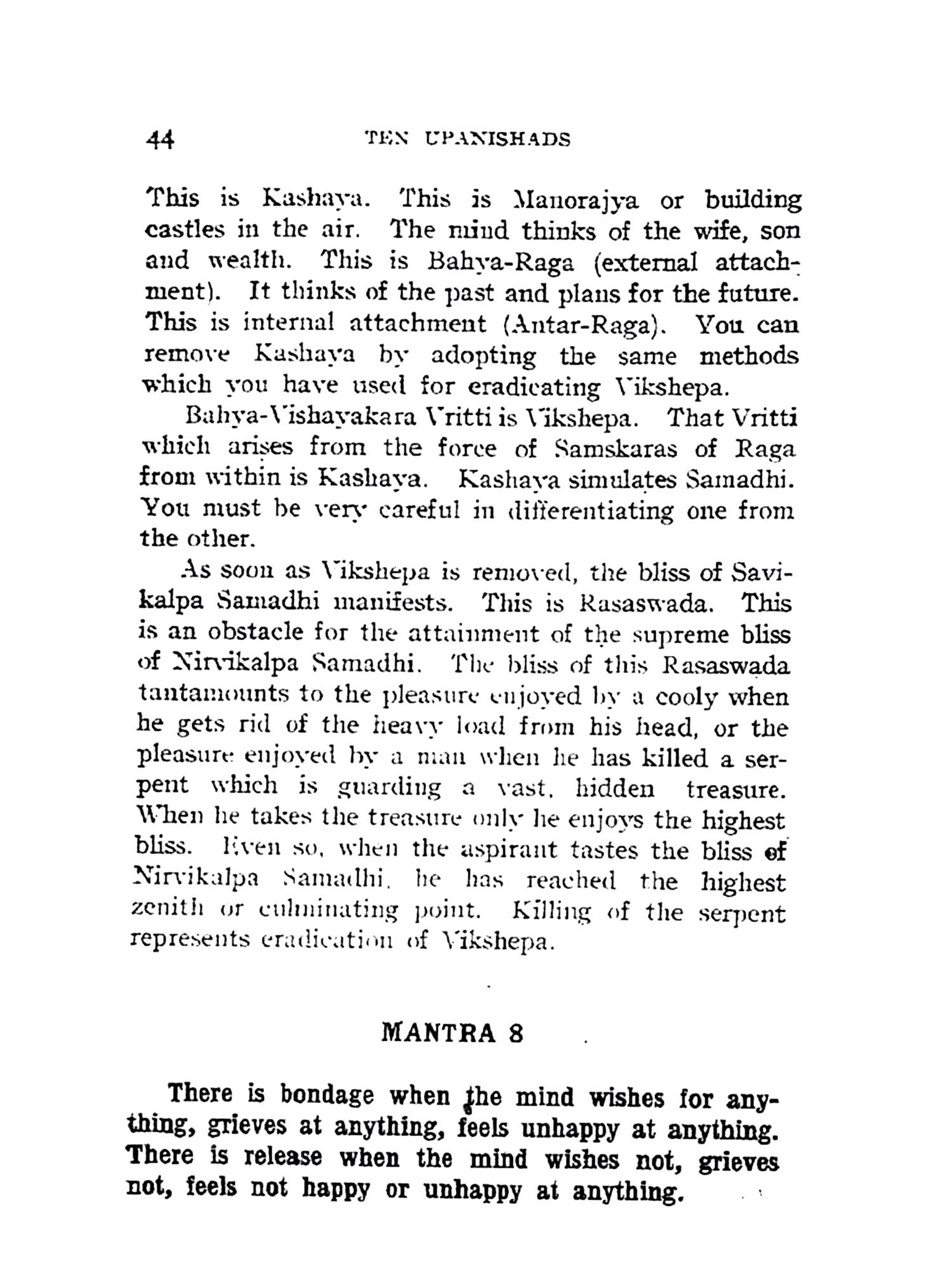 Then the petty life of hurry, worry, excitement and competition will seem to you as nothing when compared to the everlasting life of eternal sunshine and bliss in the Atman within. It is a great pity that almost all people have totally ignored the simpler happy inner life of introspection and have caught hold of false toys of Maya, such as money, woman, power, name, fame, position, etc. Sooner or later the experiences of the world, the knocks and blows of the mundane life, will force them to turn their minds inwards to realise the true, lasting happiness. The Jyotir-Bindu, Vichara-Bindu and Ananda-Bindu Upanishads will help the readers to turn their minds inwards and to realise the lasting happiness.