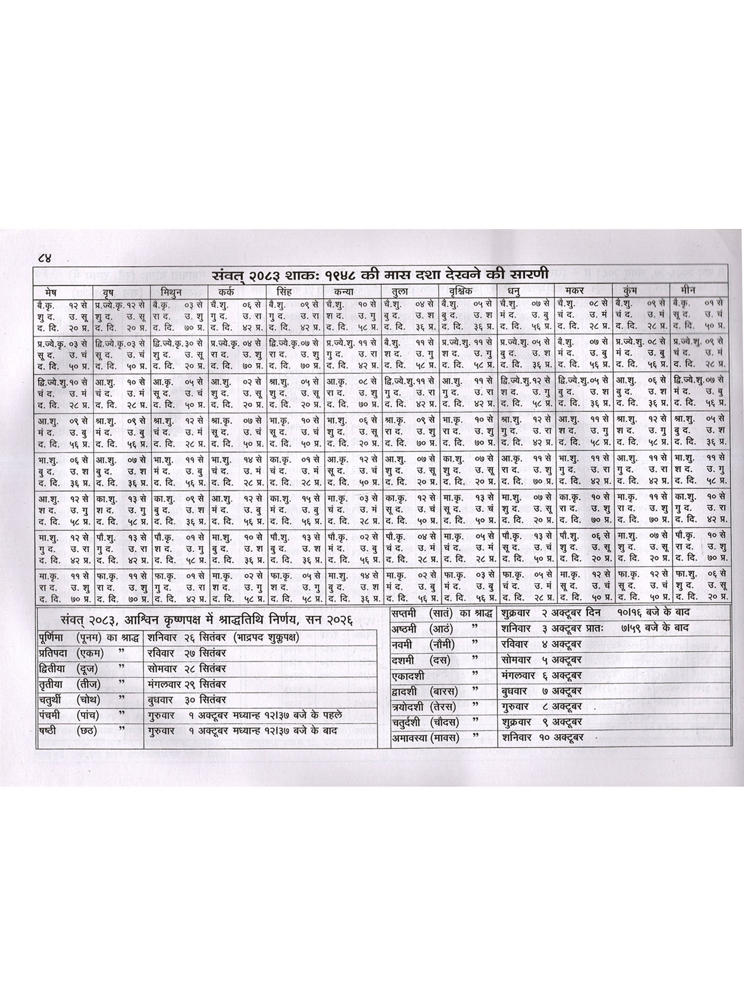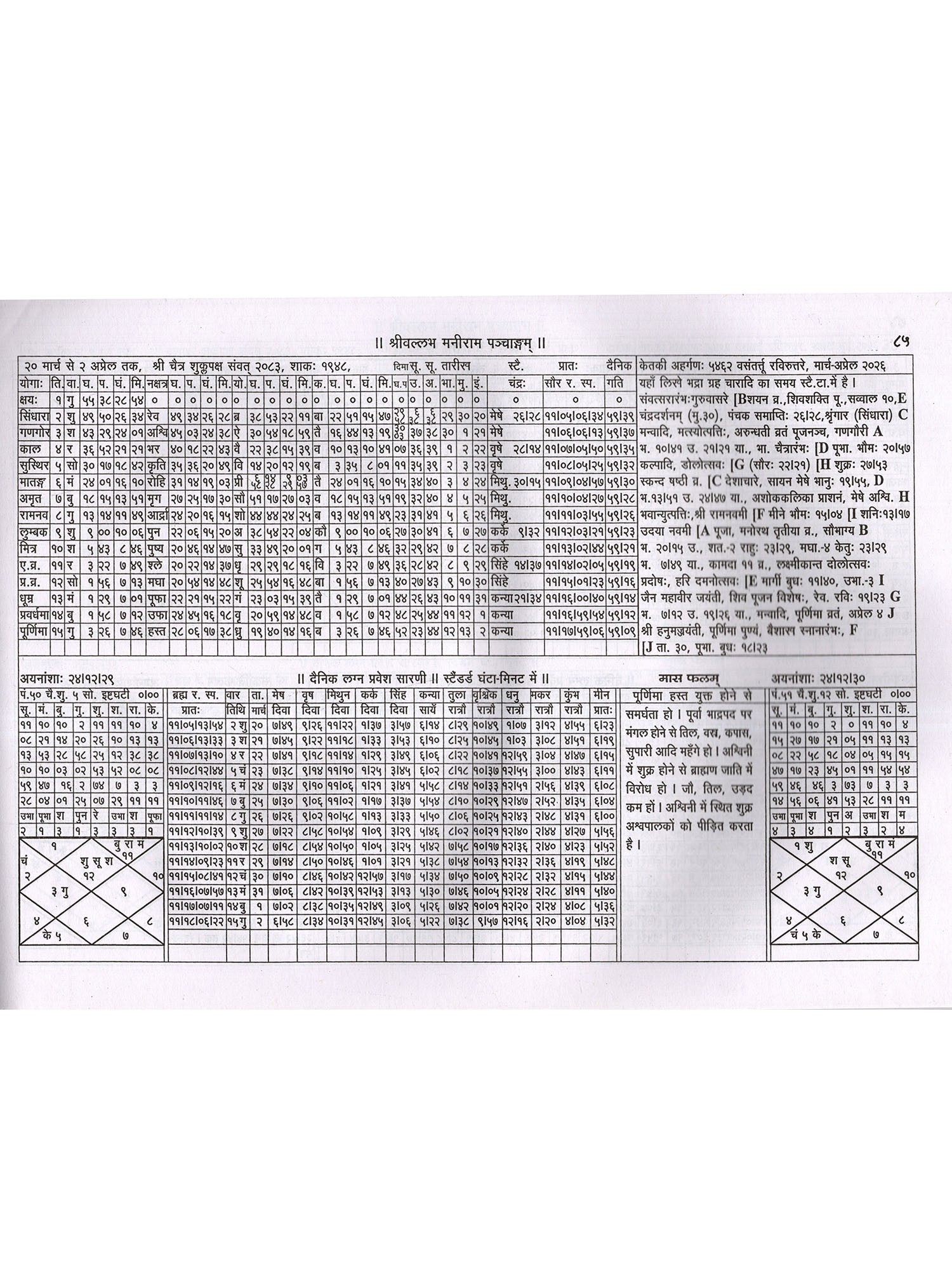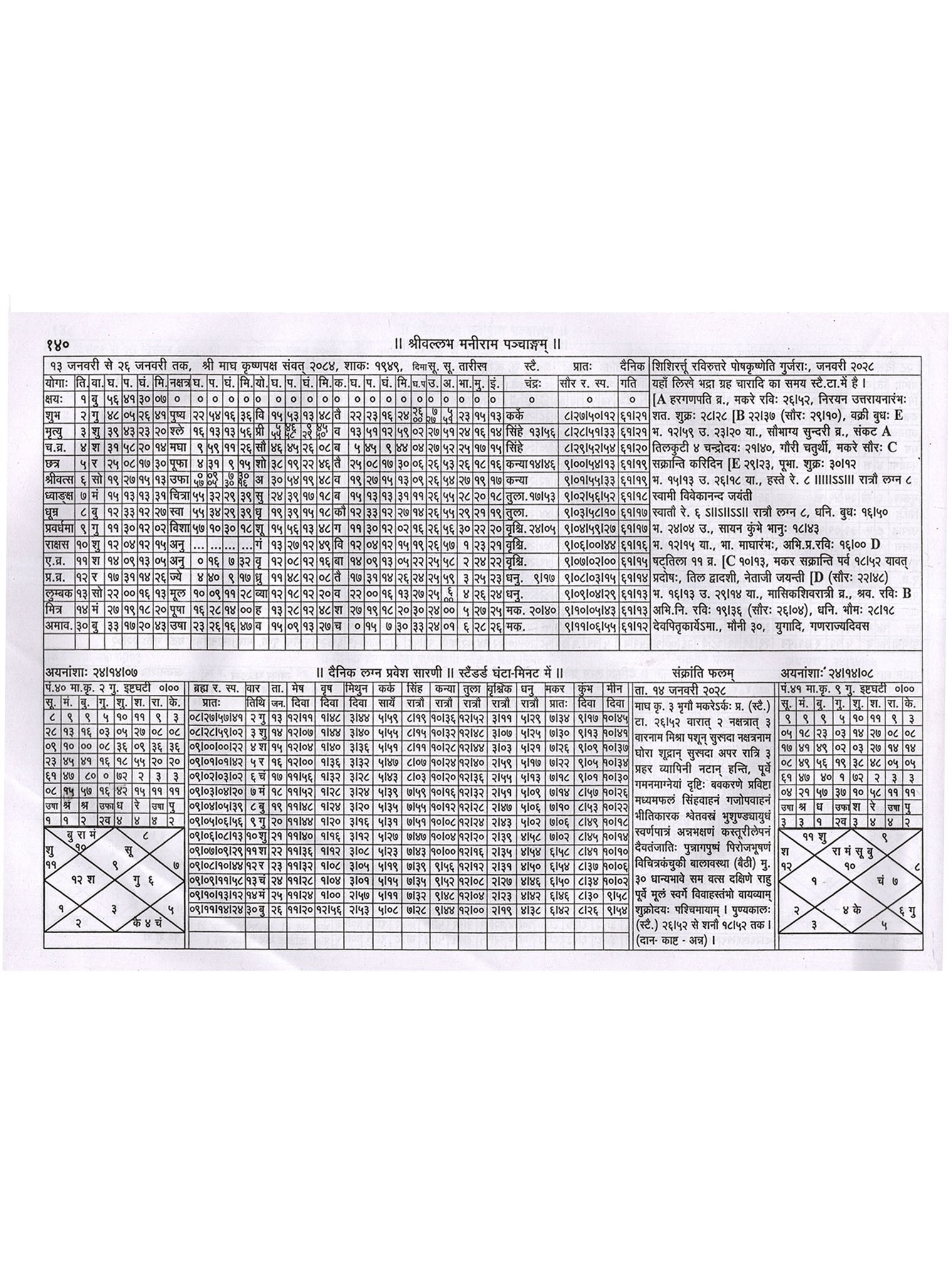 अथदशवर्षीयमानवपञ्चाङ्गम: Ten Year Manav Panchang (Khemraj Edition)