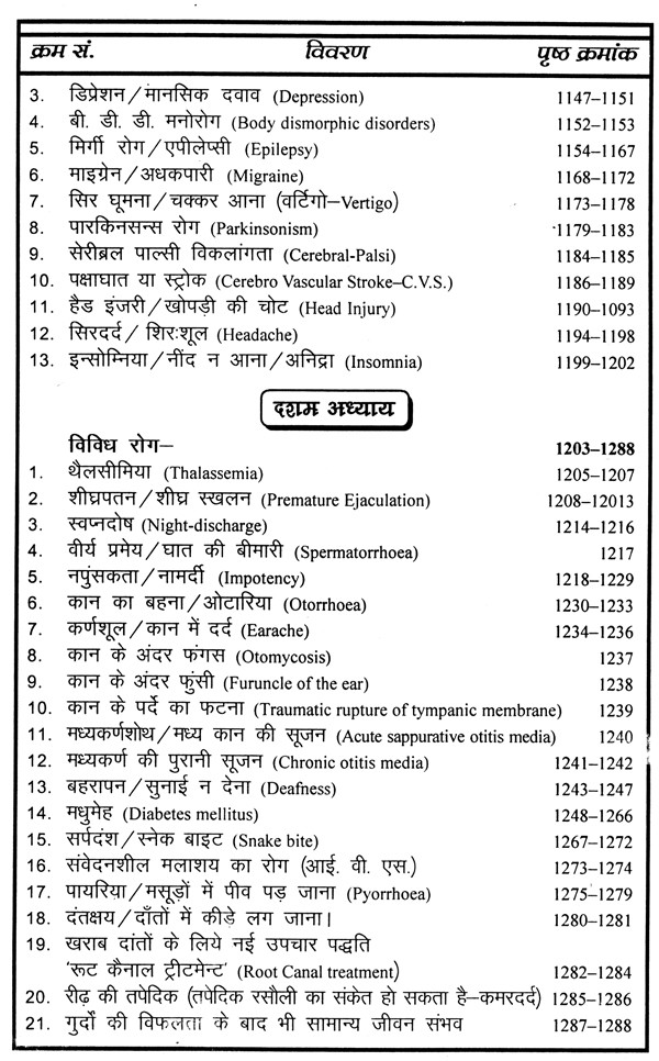 इस पुस्तक में कुछ नये रोगों को और सम्मिलित किया गया है जिनका अध्ययन अन्य पुस्तकों में कहीं भी उपलब्ध नहीं है, जो इसकी एक अपनी विशेषता है। साथ ही सर्पदश जैसी घातक स्थितियों की शर्तिया चिकित्सा बताई गई है।