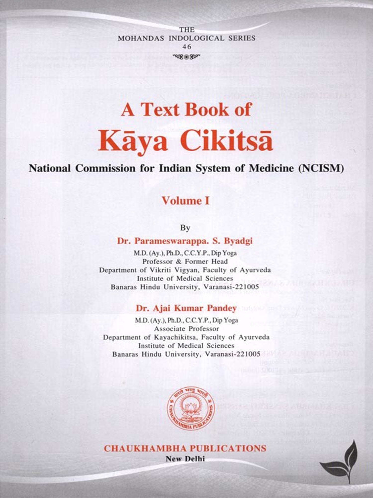 A Text Book of Kaya Cikitsa (National Commission for Indian System of Medicine NCISM) Volume-1