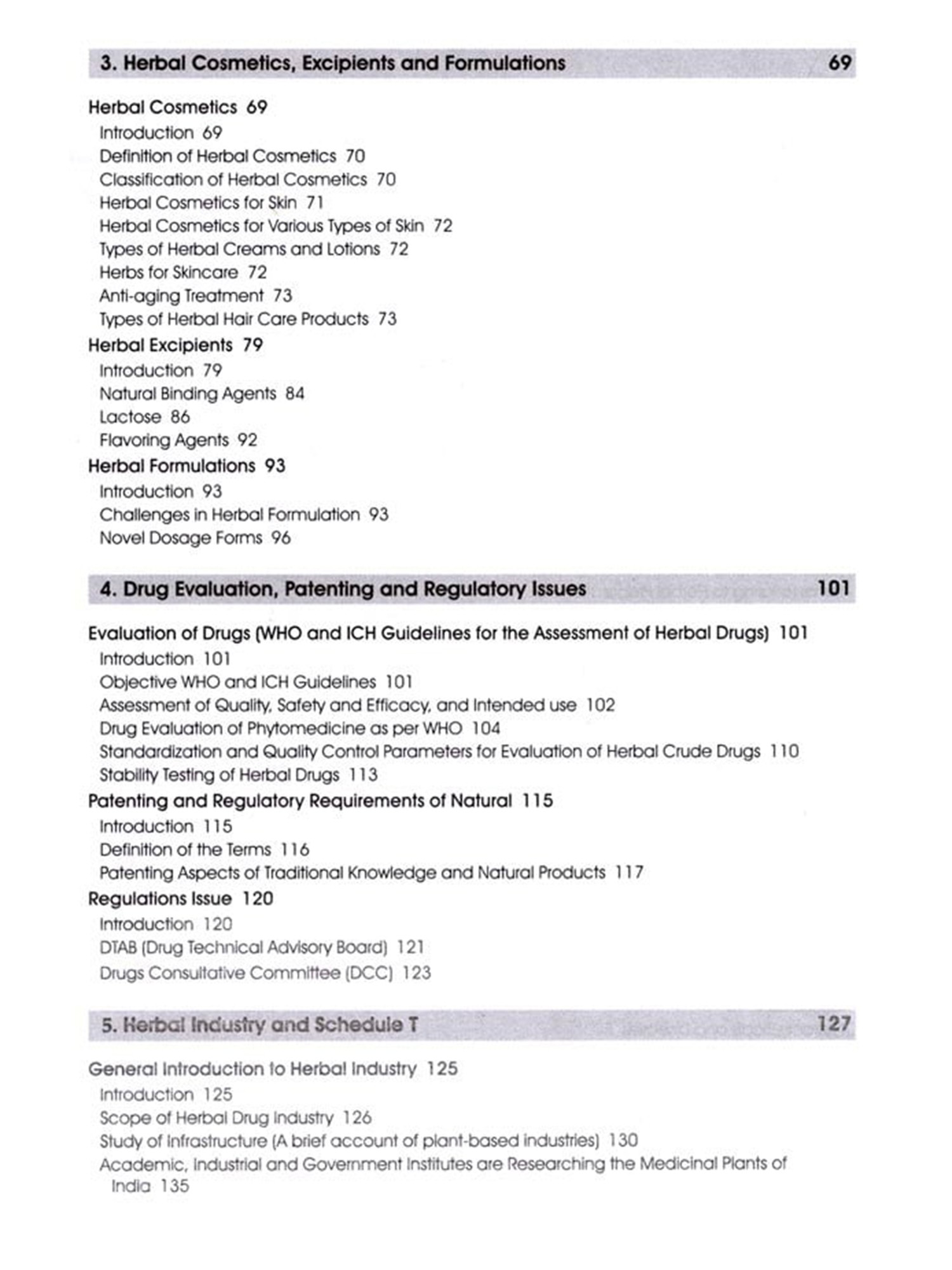 The theoretical part of this book is designed to provide basic knowledge on the herbal drug industry, the quality of raw material, guidelines for the quality of herbal drugs, herbal cosmetics, natural colorants, binder, natural sweeteners, nutraceuticals, etc. This book will help in understanding the basic concepts of good manufacturing practices (GMP), patenting, and regulatory issues of herbal drugs. In the theoretical part of this book, basic principles involved in Ayurveda, Siddha, Unani, and Homeopathy and the preparation and standardization of ayurvedic formulations are discussed. Conventional herbal formulations like syrups, mixtures, and tablets and novel dosage forms like phytosomes and schedule T-good manufacturing practices of Indian systems of medicine are also discussed in this book.