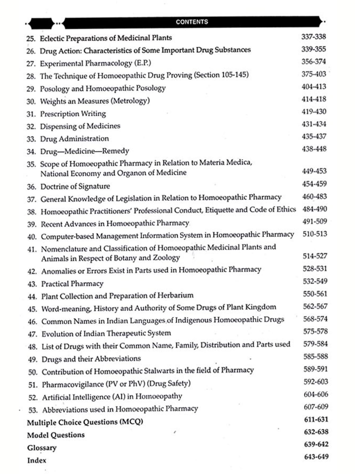 In this edition some important additions have been made in the text of original chapters such as 'Pharmacopoeia and Pharmacy', 'Methods of preparing Homoeopathic Drugs' (Old method), 'Pharmacology', 'Identification of some Homoeopathic Drugs', 'Drug action: Characteristics of some important Drug Substances', 'Weights and Measures', 'Doctrine of Signature', 'Recent advances in Homoeopathic Pharmacy.