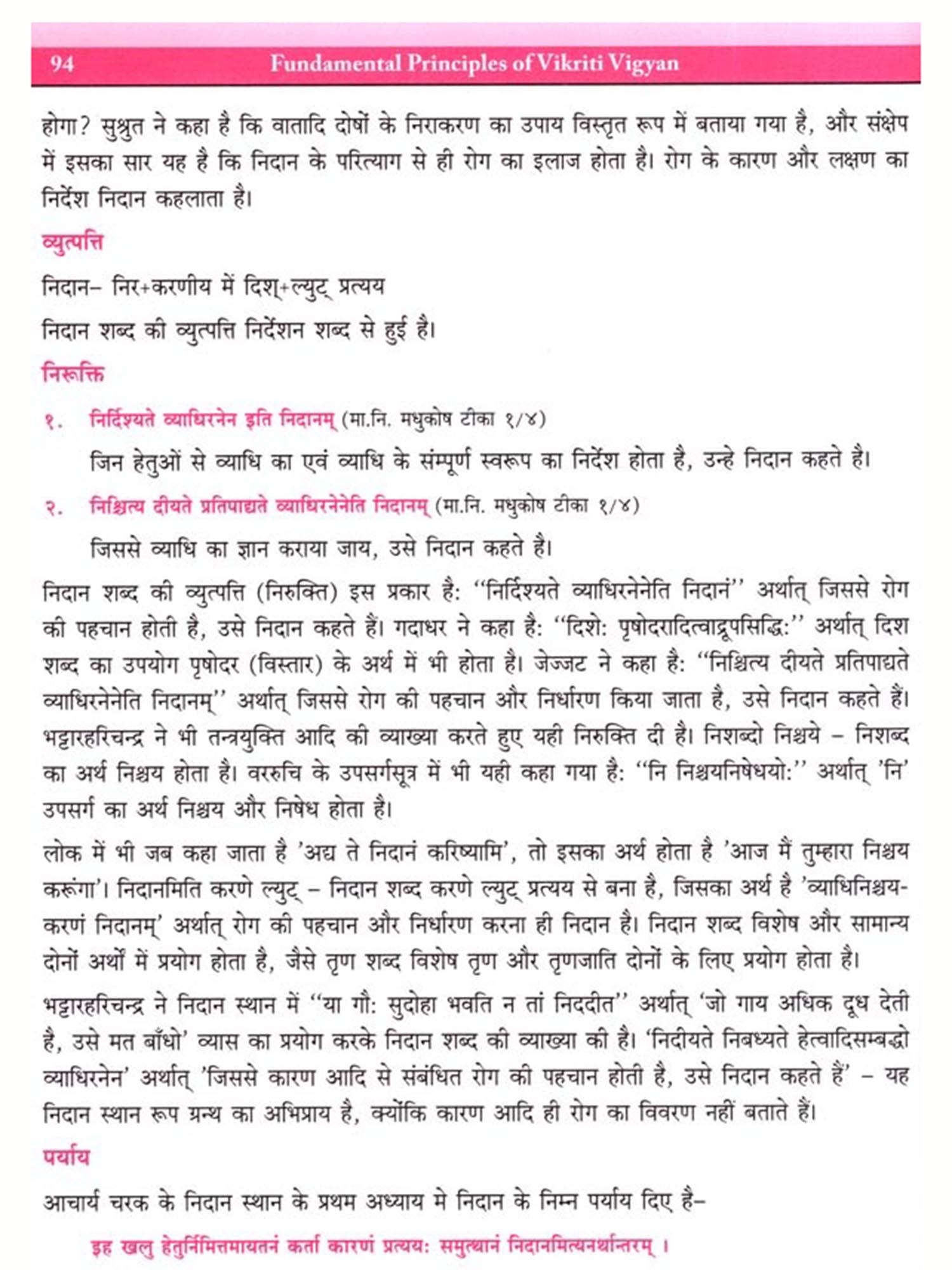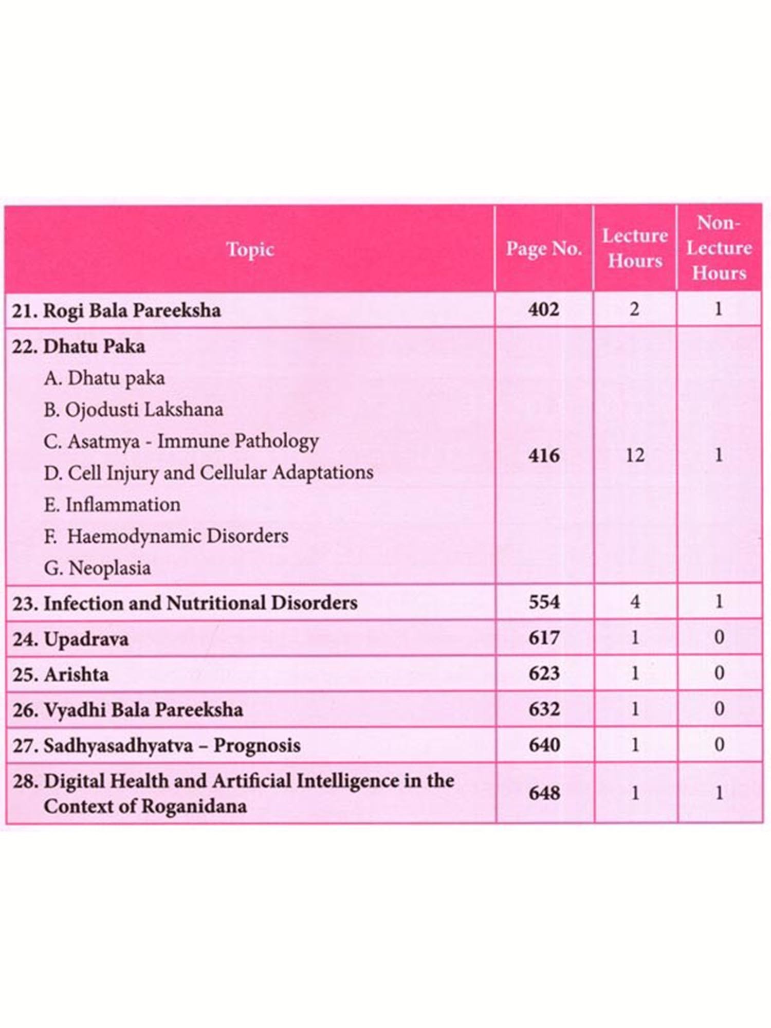The study of Roga Nidan (disease diagnosis) and Vikriti Vigyan (pathology) forms the cornerstone of effective medical practice, bridging the gap between theoretical knowledge and clinical application. As the field evolves, there is an ever-growing need for resources that not only encompass traditional wisdom but also integrate contemporary scientific insights. This textbook is designed to meet that need, offering a comprehensive, updated, and insightful exploration of these critical subjects.