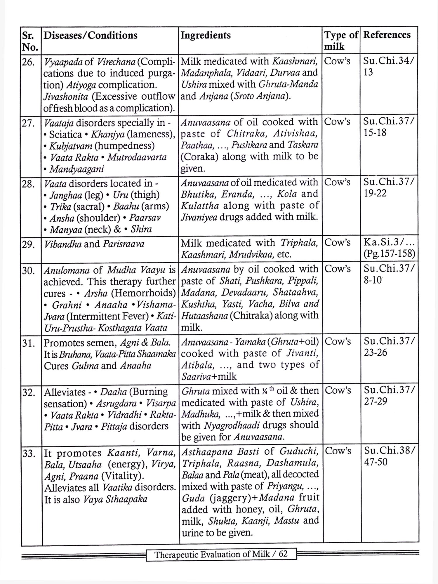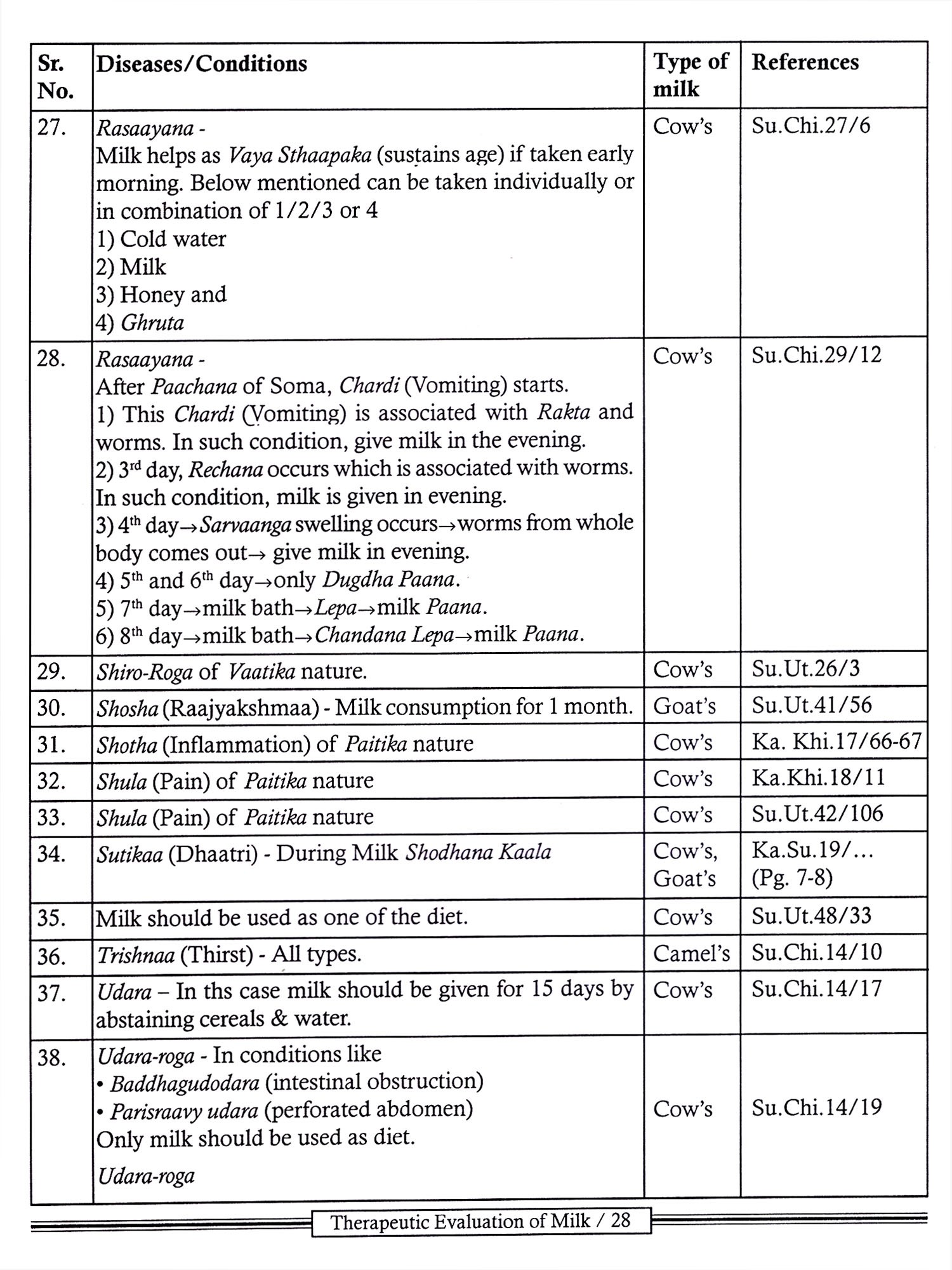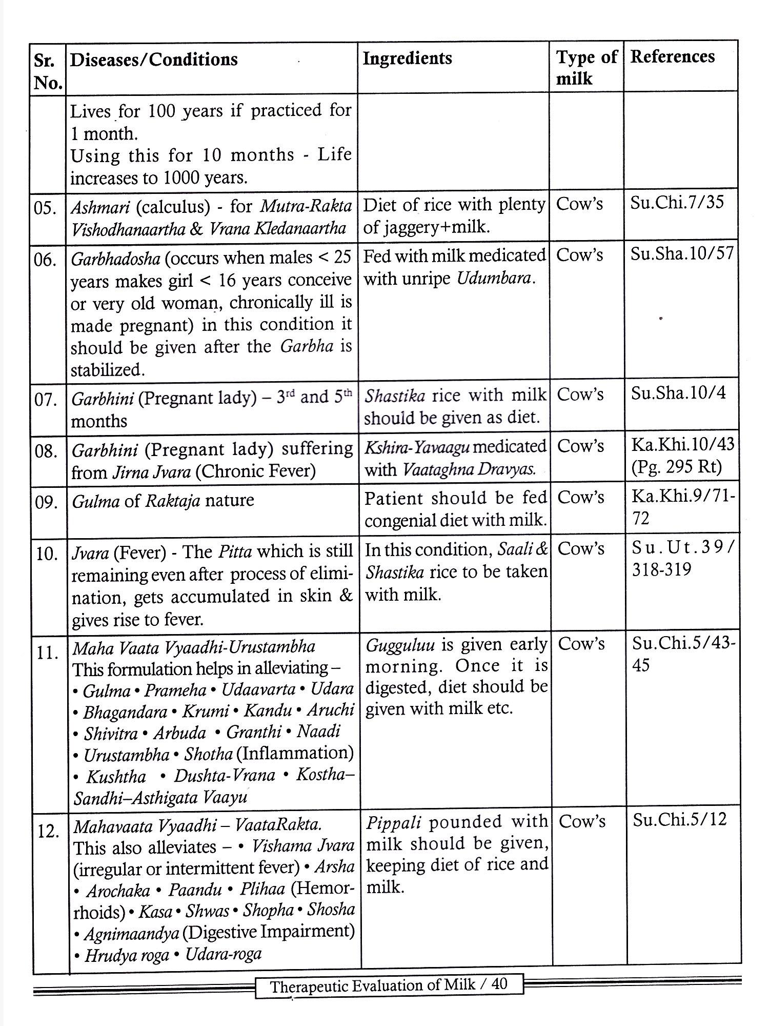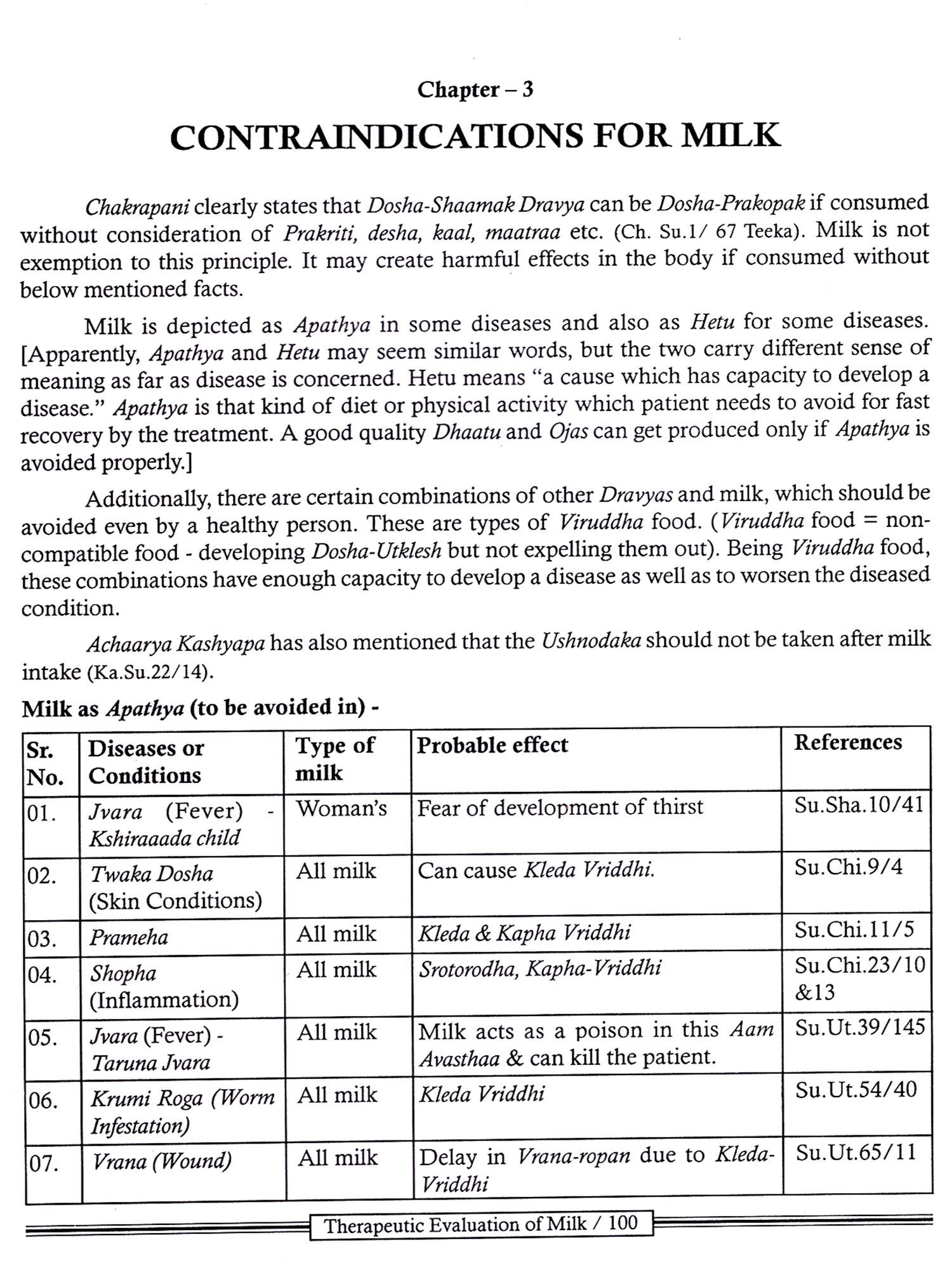 No doubt, Acharya Charaka has mentioned different therapeutic uses of milk very comprehensively, but a text based on surgery Le. Sushruta Samhita also holds a great value as a curative aspect of diseases which also must be accepted.