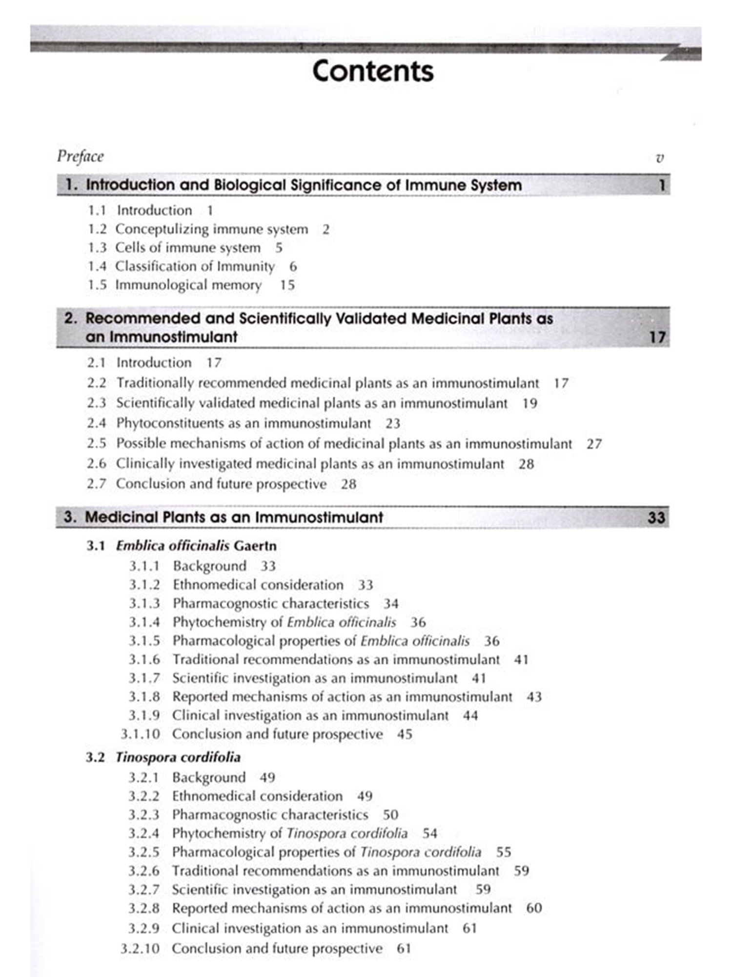 Plant-derived medicines have proven potential to work for the balancing immune homeostasis in our body. Since these medicines are effective and carry minimum side-effects, that lead to the over-popularization of herbal medicines throughout the world. The present book is focused on the role of selected traditionally recommended and scientifically validated medicinal plants as immunostimulants. The plants are carefully selected and arranged in each chapter, organized on the strong footing of scientific and methodical manner and essentially consist of highlights including recommended and scientifically validated medicinal plants as immunostimulant, ethnomedical consideration, pharmacognostic characteristics, phytochemistry, pharmacological Properties, traditional recommendations as an immunostimulant, scientific investigation as an immunostimulant, reported mechanism of action as an immunostimulant and clinical investigation as an immunostimulant.
