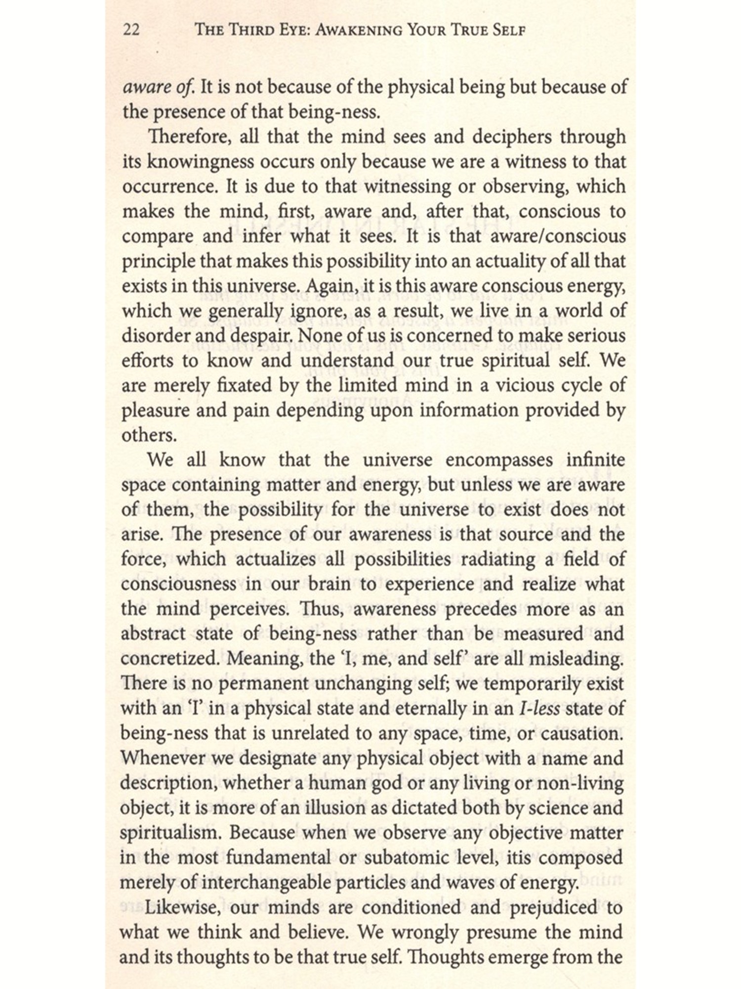 The higher knowledge is that of 'self-knowledge, the true self, which is not our body and mind. The lower one in our subject is that of the phenomenal world. To understand this complex know-how of 'who we are, we will need perseverance, multiple readings, concentration, and consistency of those words, sentences, and meanings, which are repeated time and again. It is required for gaining that clarity, which is the essence of any academic subject. Kindly read this book with an open mind to procure something different, even if the information provided does not concur with what you have been told earlier or believe in. The deep research to uncover the truth behind the nature of our reality is more to undo that rigid conditioning of our mind over centuries. Self-knowledge, I believe, is vitally important, that is, if we require, besides profits and pleasure, a balanced life with mental peace and tranquillity in this chaotic world of ours.