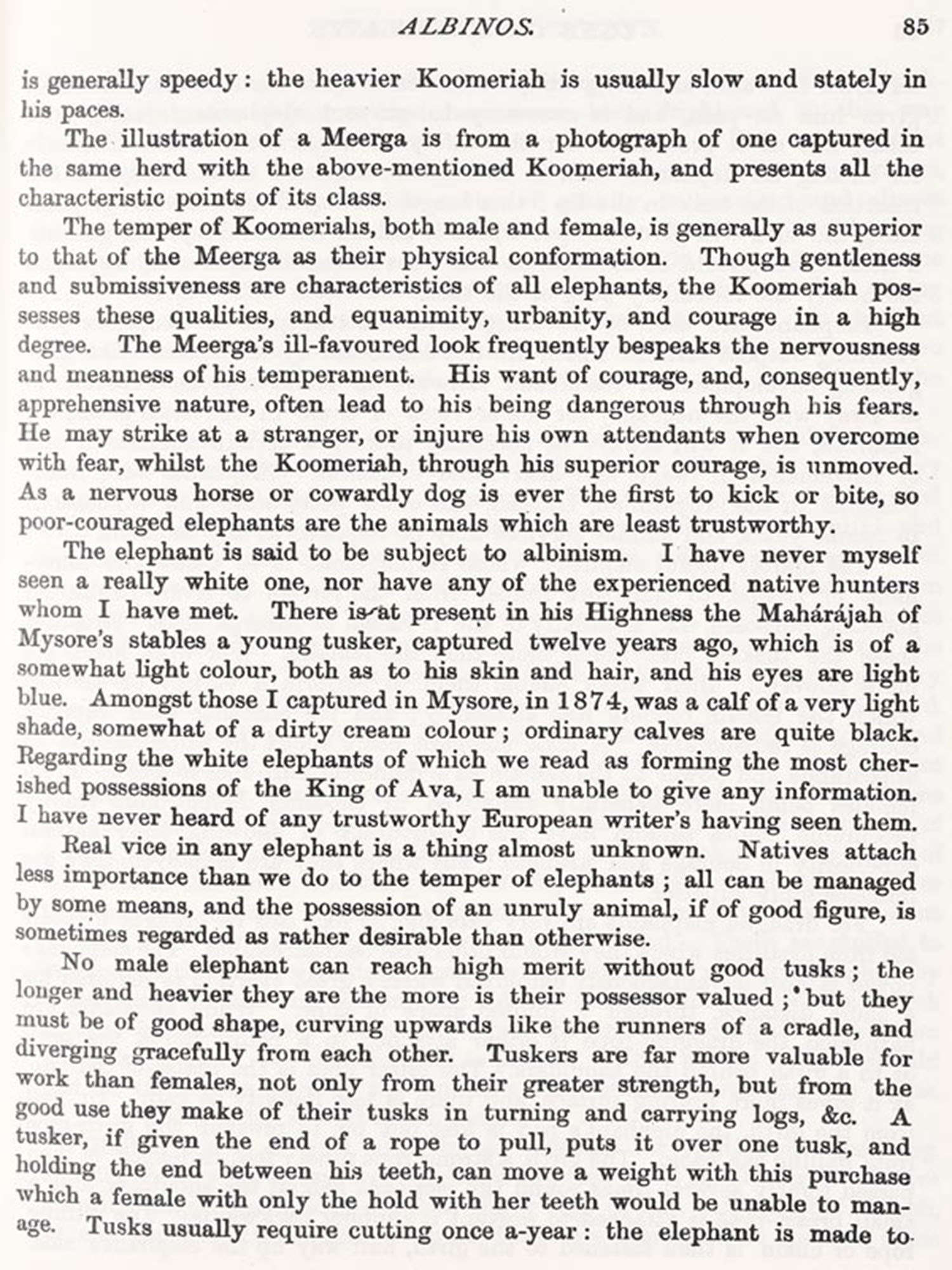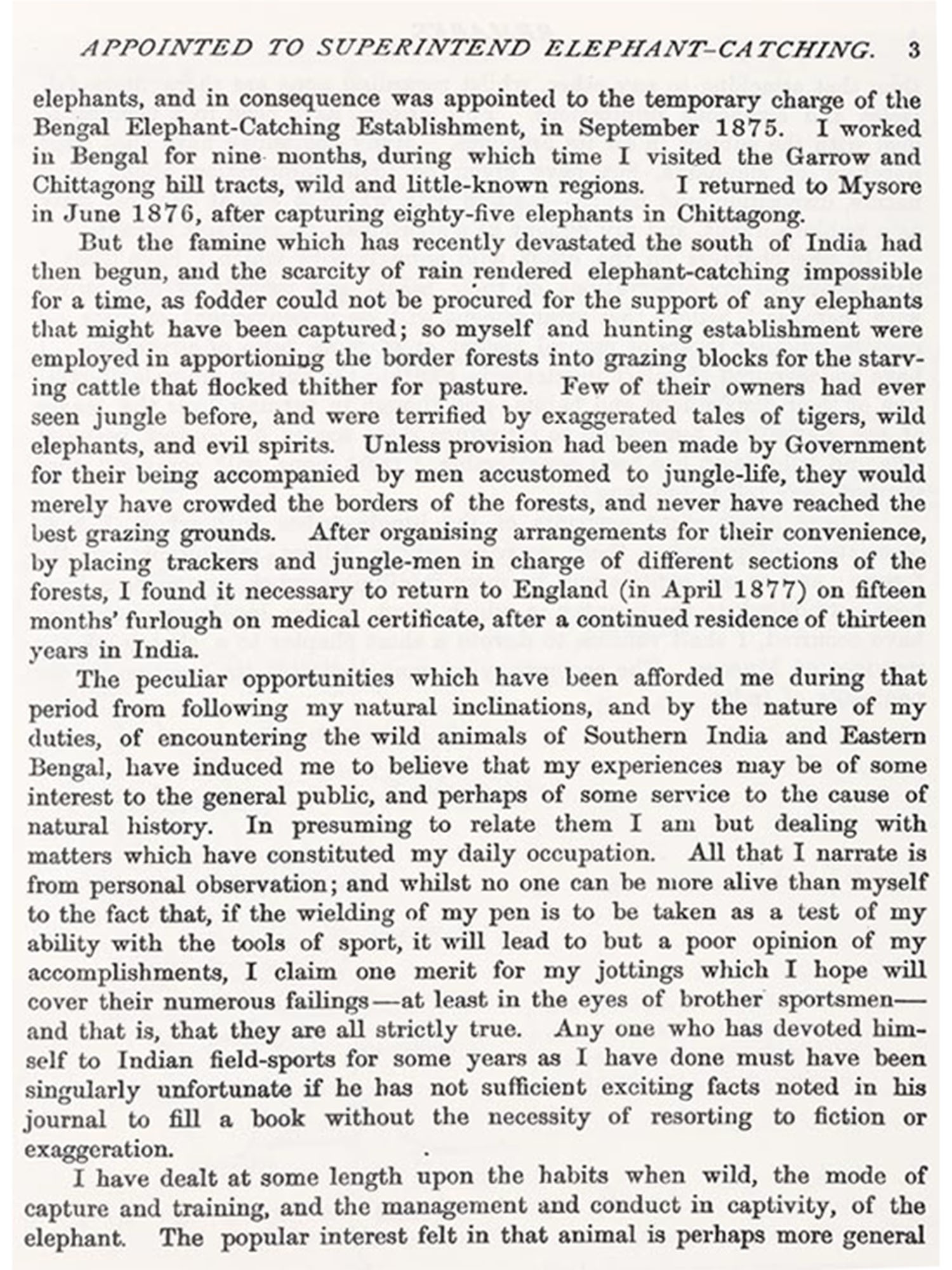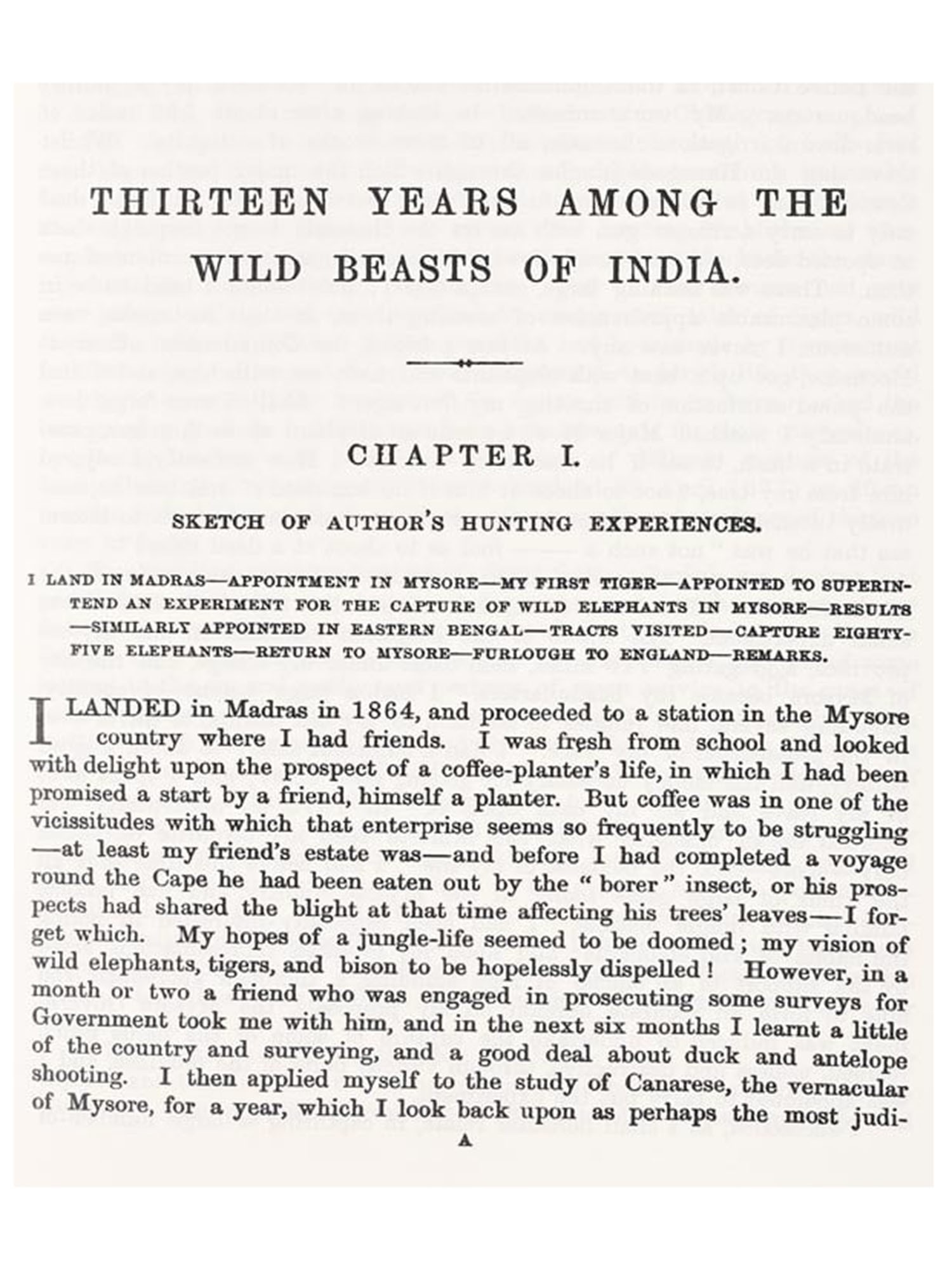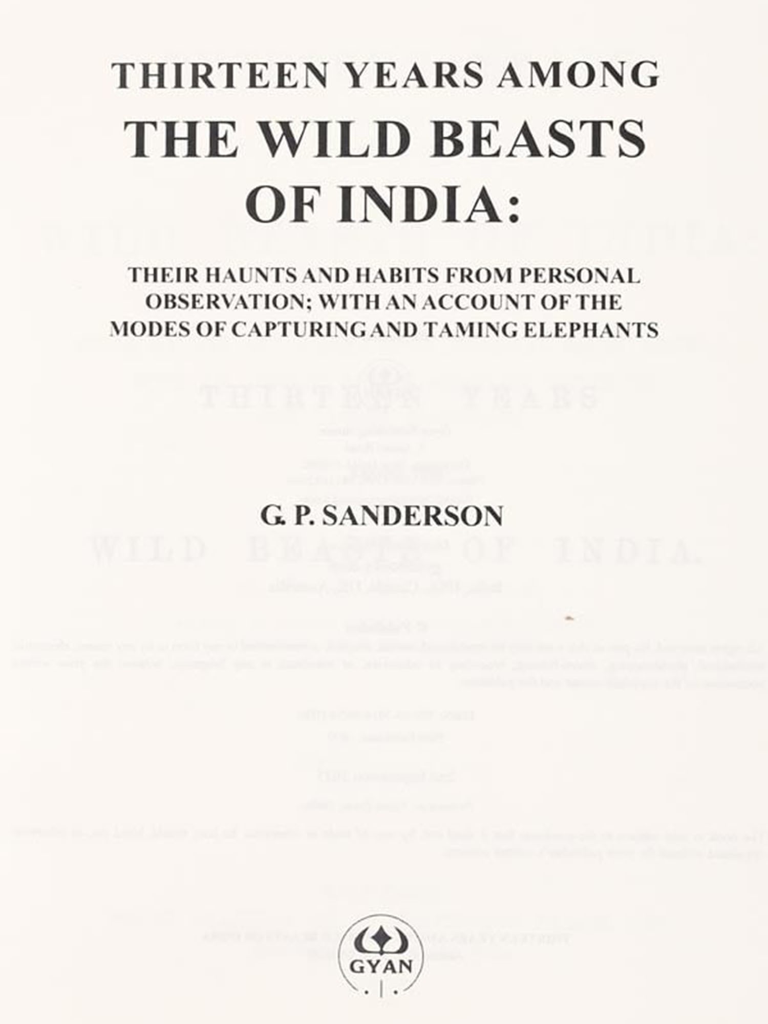 Thirteen Years Among the Wild Beasts of India (1879) by George Peress Sanderson is a firsthand account of his experiences in India, where he spent years studying wildlife, particularly elephants. The book details the natural habitats and behaviors of wild animals, including tigers and bison, based on Sanderson's personal observations. He also describes his innovative methods for capturing and taming elephants, focusing on the use of kheddahs-fenced enclosures designed to trap herds. Sanderson's work offers valuable insights into India's wilderness and the challenges of working with its dangerous and majestic wildlife, particularly his passion for elephants.