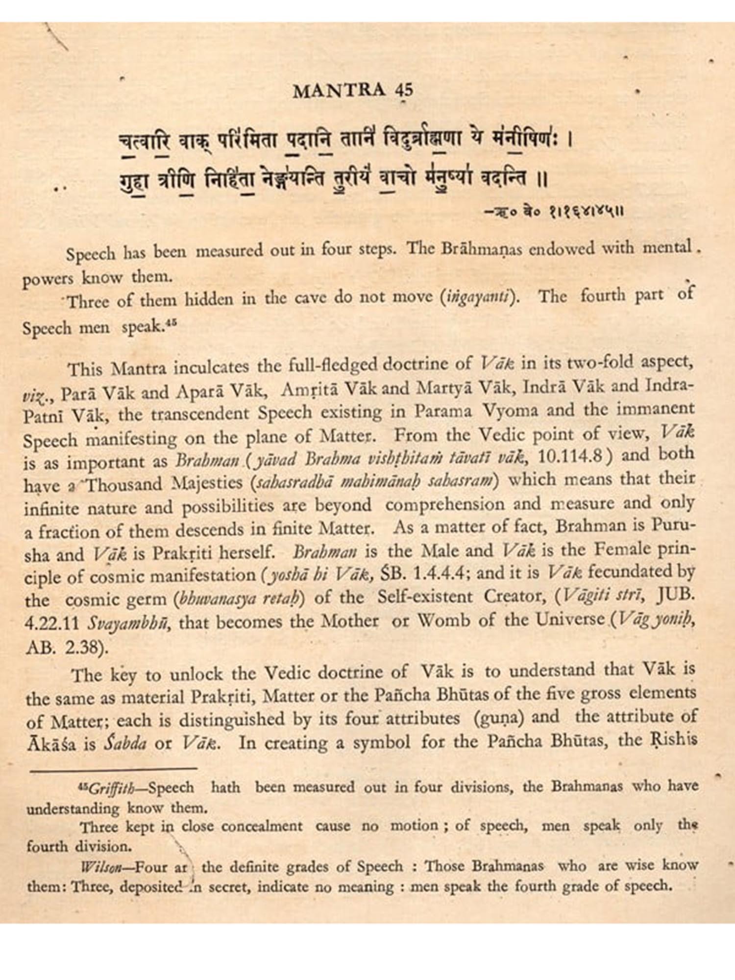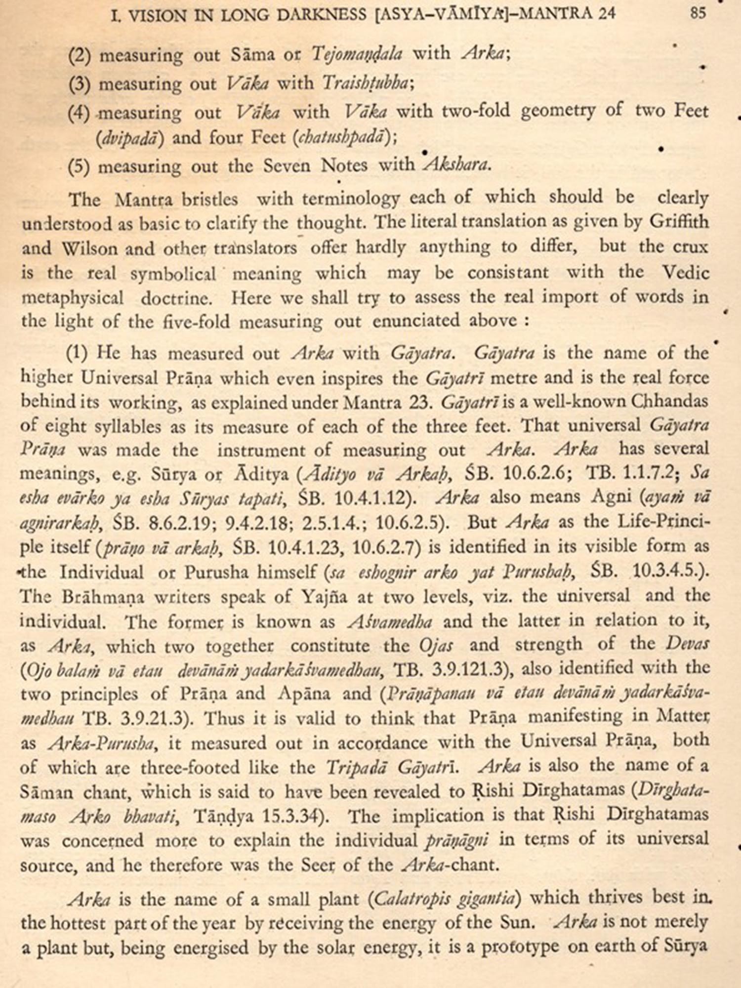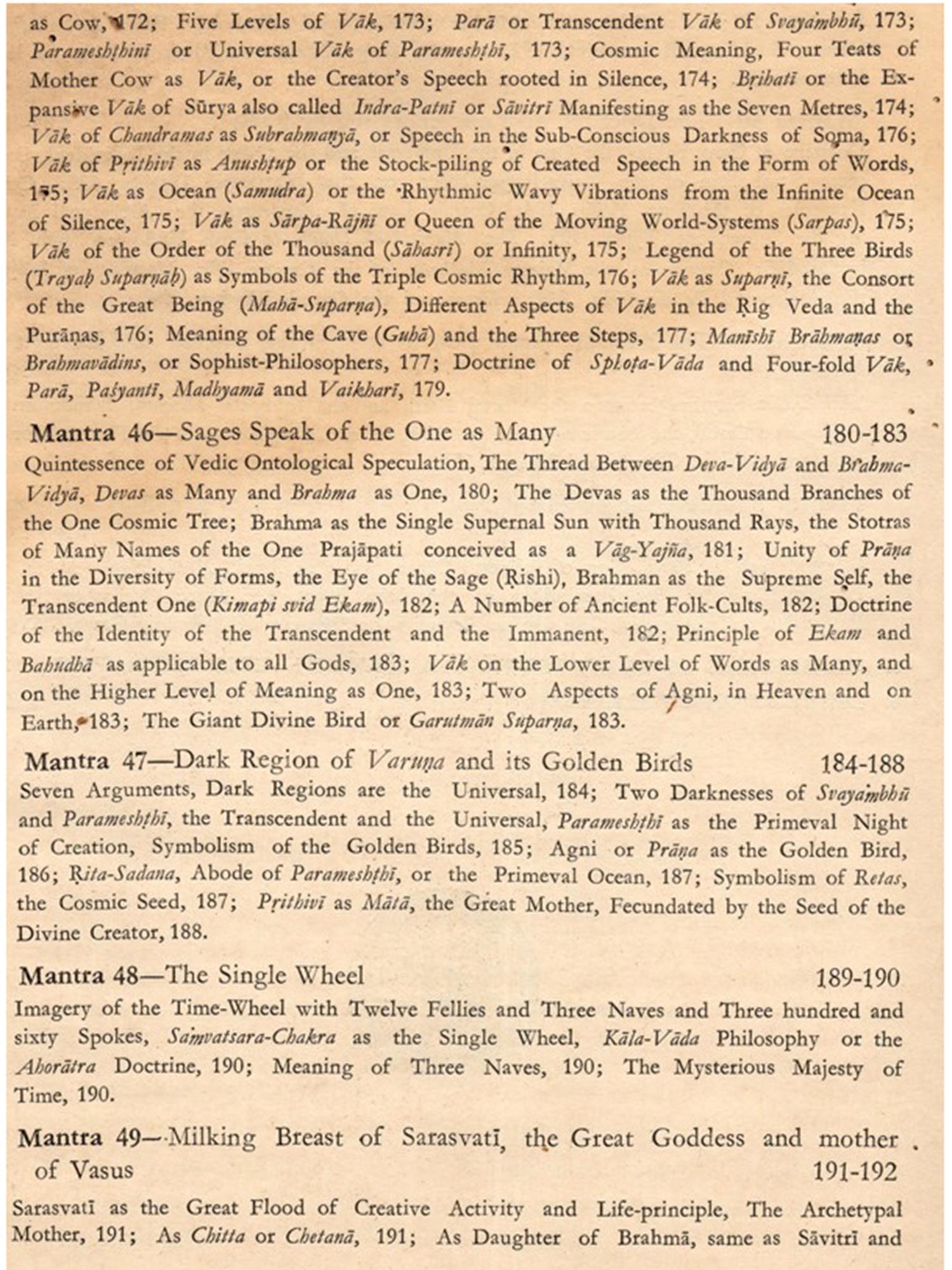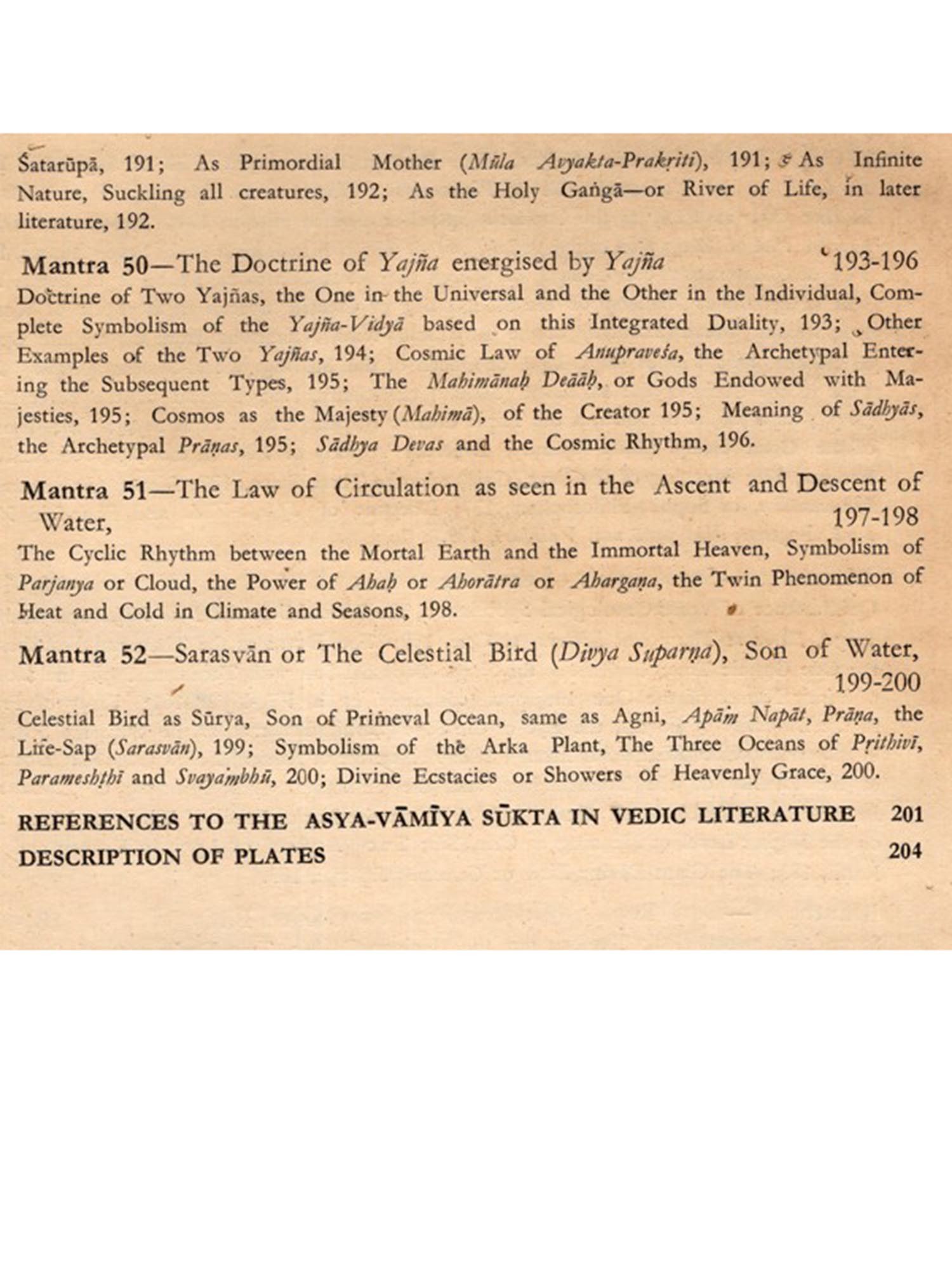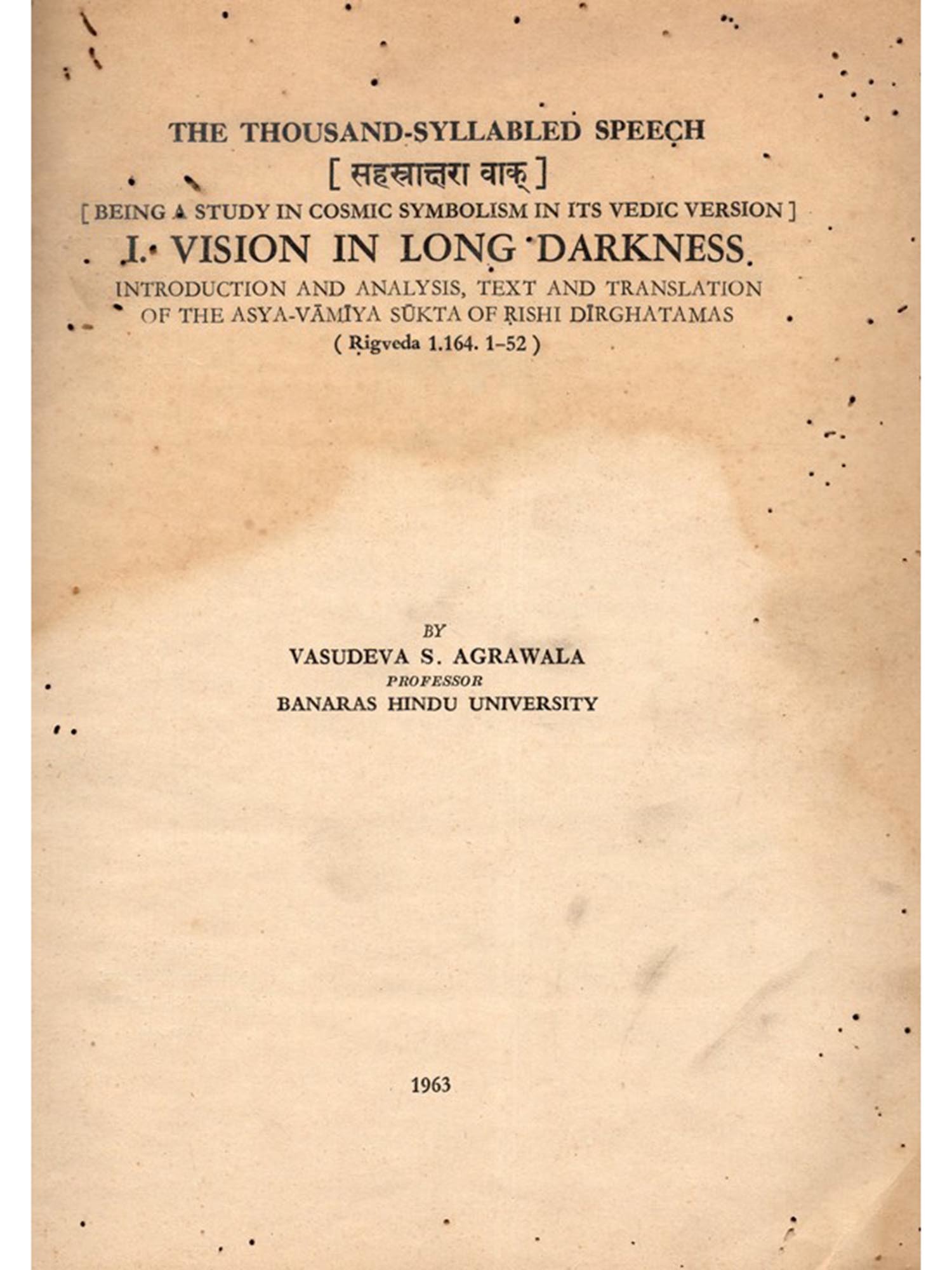 Dirghatamas was a thinker of the Vedic age, naturally his ebullitions are cast in the thought-moulds of his time. But easily shorn of theit veneer, as attempted in this commentary, they are eloquent with a world-language of which the meaning belongs to mankind.