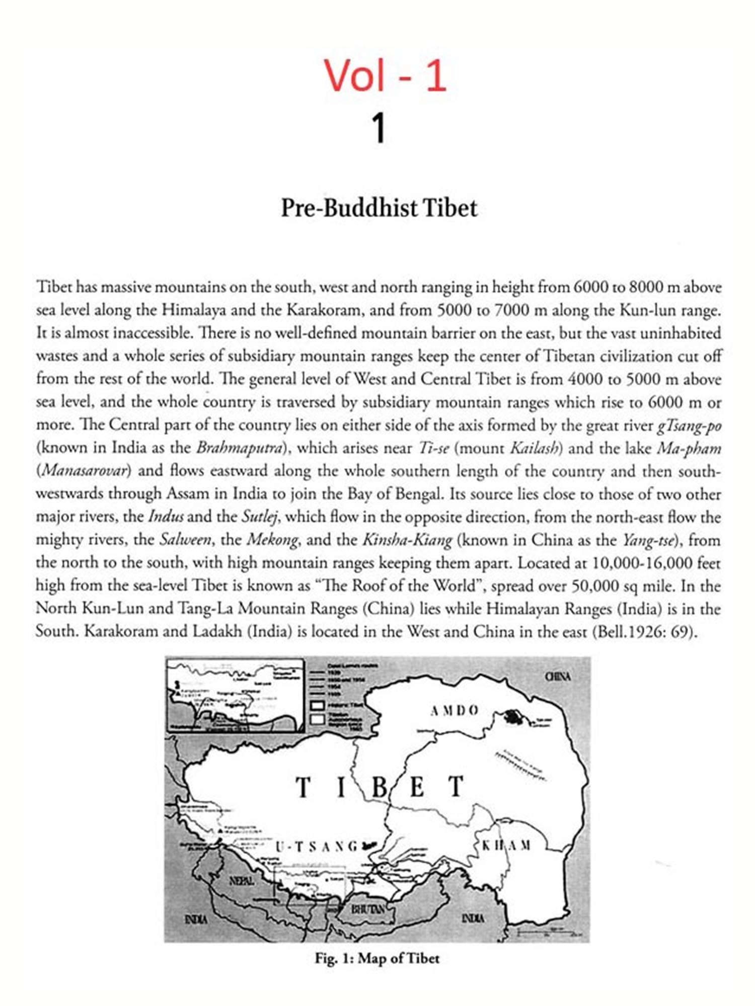 In 2004 1 have written a book entitled Tiber Me Bauudha Dharma Ka Itihas in Hindi which was published by Northern Book Centre, New Delhi. The book was highly appreciated by the scholarly world. The reason for writing on the same topic after 20 years is actually to give a descriptive and update information about Tibetan Buddhism. The previous book throws light basically on the Nyingma-pa. the oldest sect of Tibetan Buddhism while the present work (Vol. 1) deals with the geographical features of Tibet and Bon, the pre-Buddhist religious faith, advent of Buddhism in Tibet, divisions of Tibetan Buddhism, Tibetan language and literature, Tibetan Buddhist deities, and Tibetan Buddhist architecture. In brief, 1 can say that a single book is able to answer all the questions raised against Tibetan Buddhism.