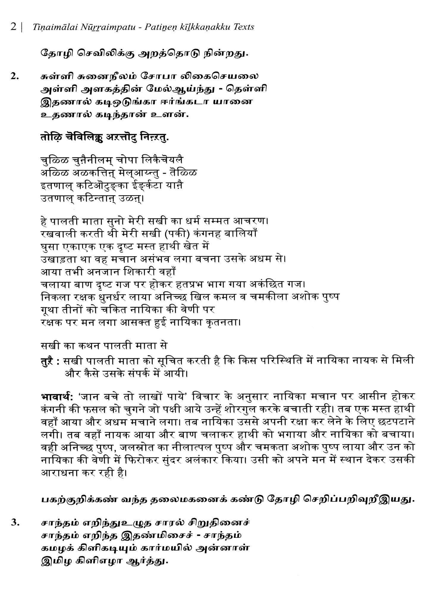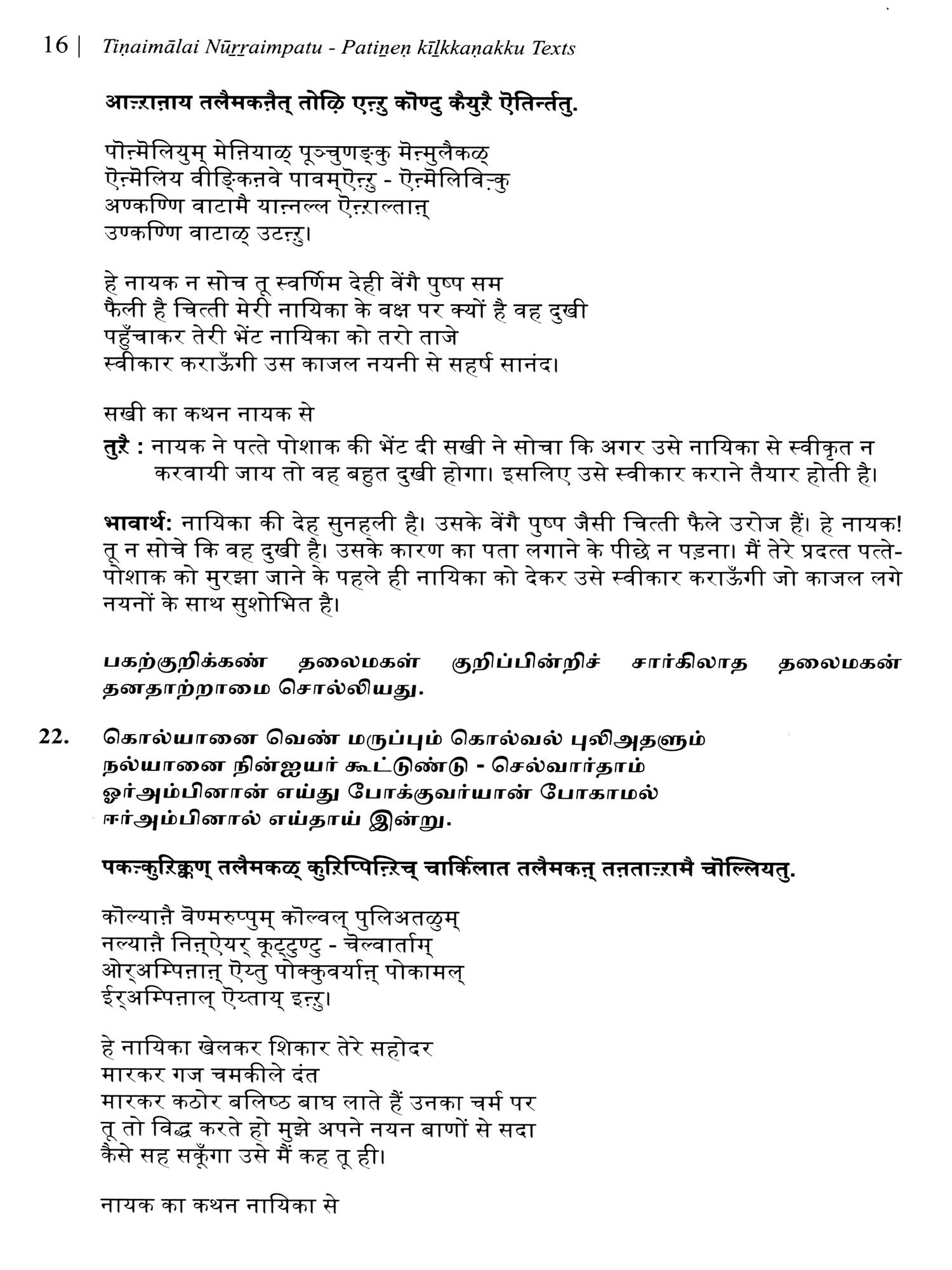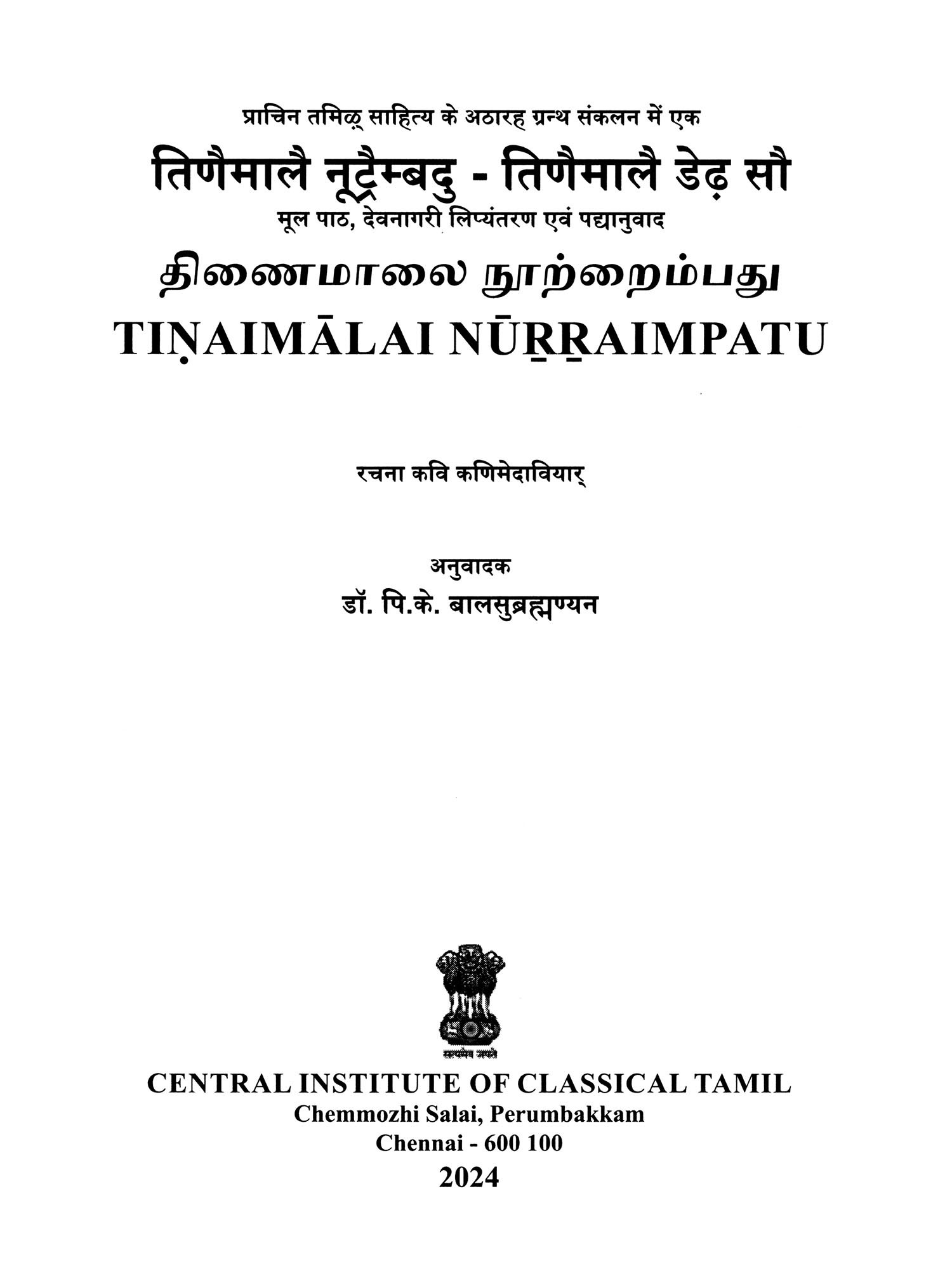तिणैमालै नूट्रैम्बदु: तिणैमालै डेढ़ सौ (திணைமாலை நூற்றைம்பது)- Tinaimalai Nurraimpatu: Tinaimalai Deadh Sau (Original Text, Devanagari Transliteration and Verse Translation)