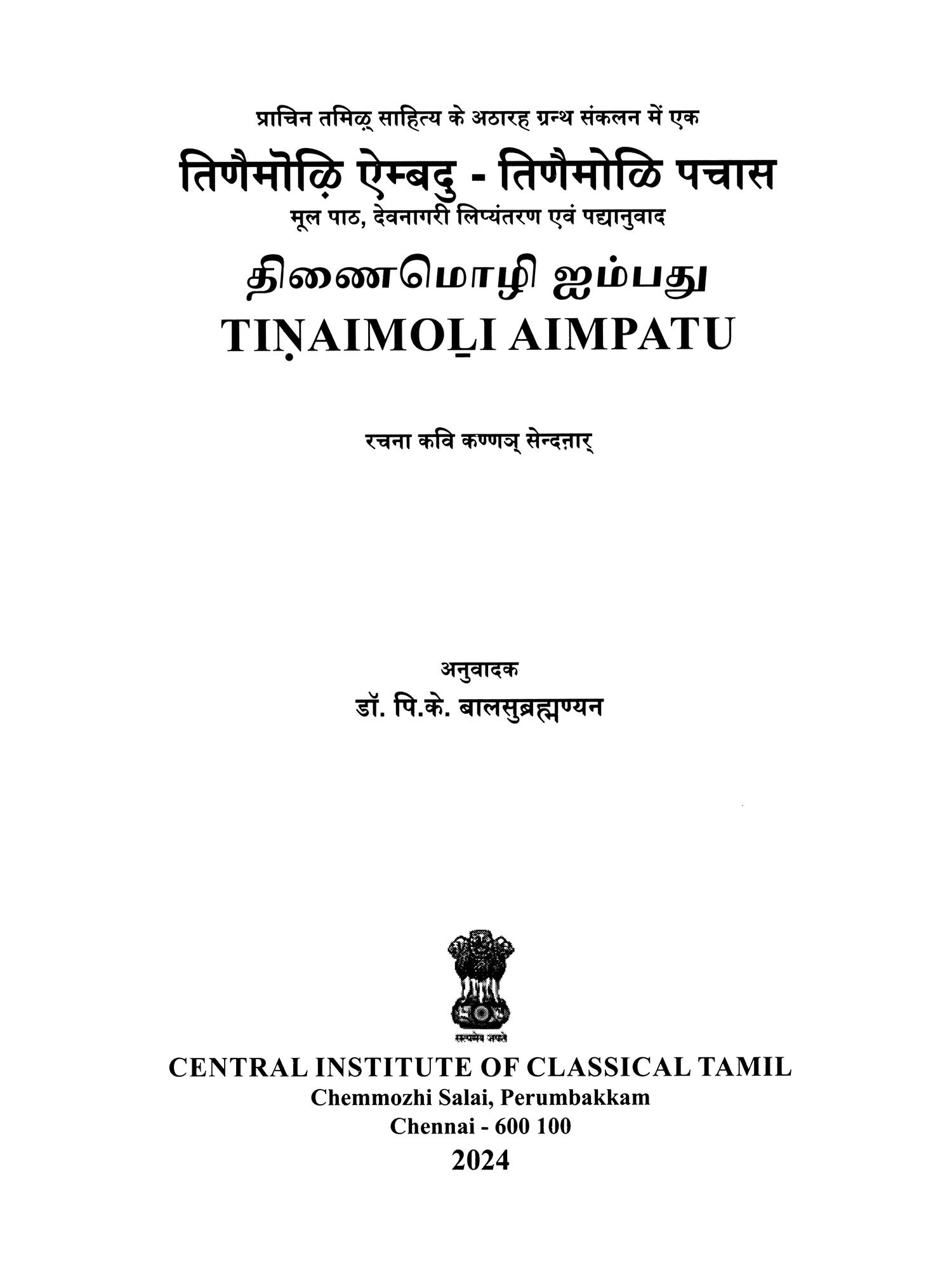 Publisher: Central Institute Of Classical Tamil, Chennai