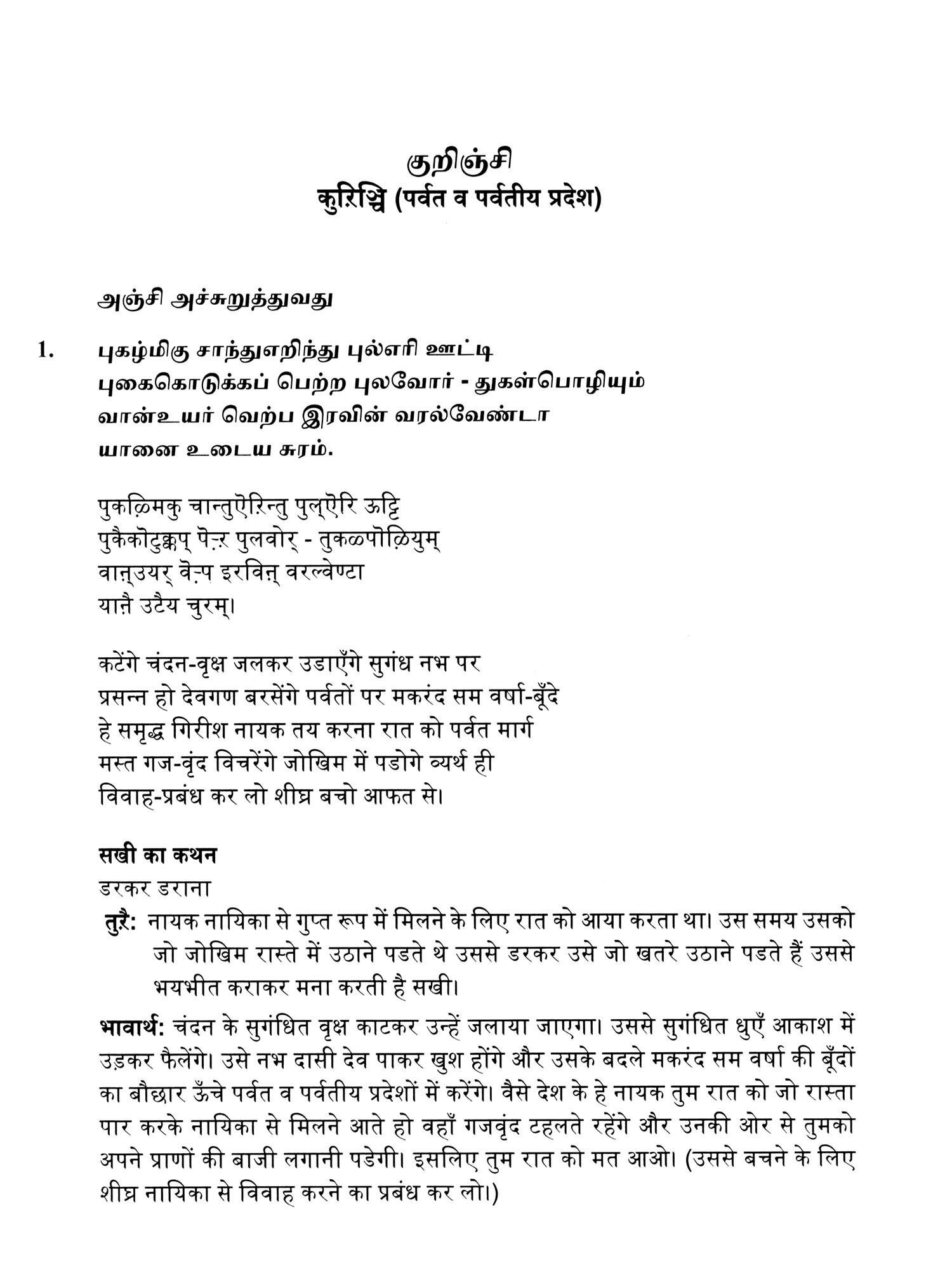 तिणैमोक़ि ऐम्बदु: तिणैमोळि पचास (திணைமொழி ஐம்பது)- Tinaimoli Aimpatu: Tinaimoli Pachaas (Original Text, Devanagari Transliteration and Verse Translation)