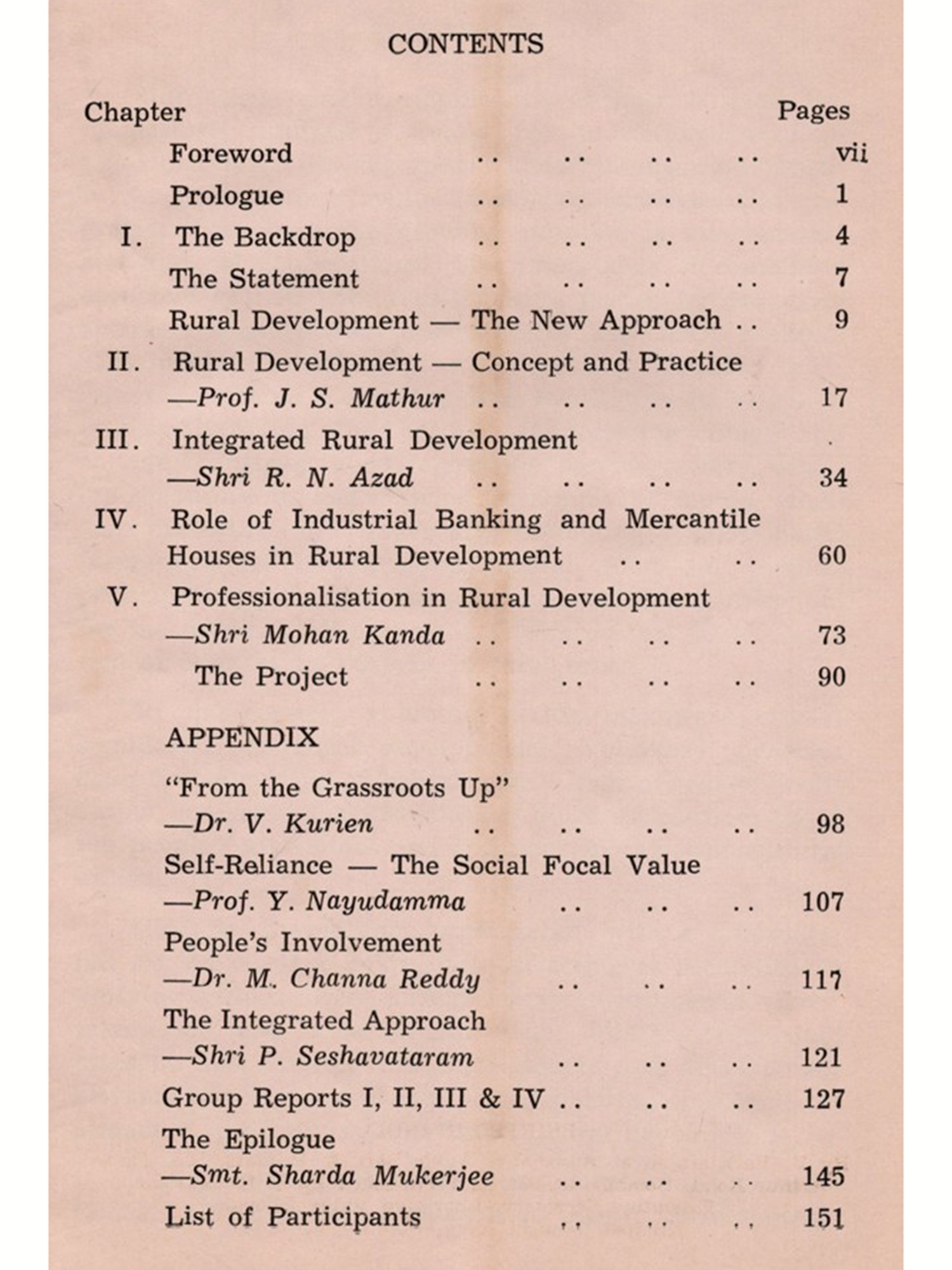 The Seminar did away with the practice of presentation of papers, and proceeded to organise discussions on certain basic issues as the persons involved were all aware of the problems of rural development, and have practical experience of the field. The theme and background papers prepared by the N.I.R.D. and CHETANA were circulated.
