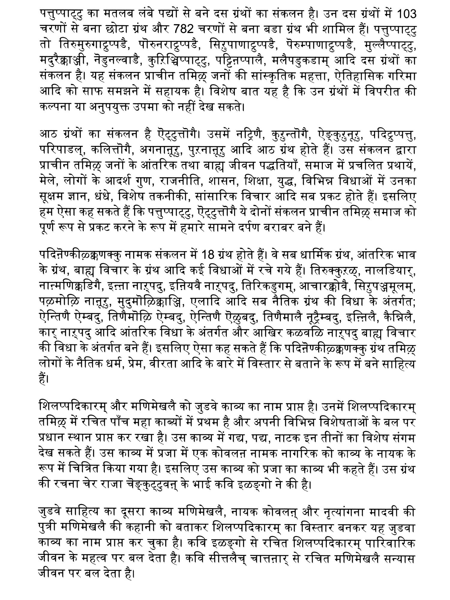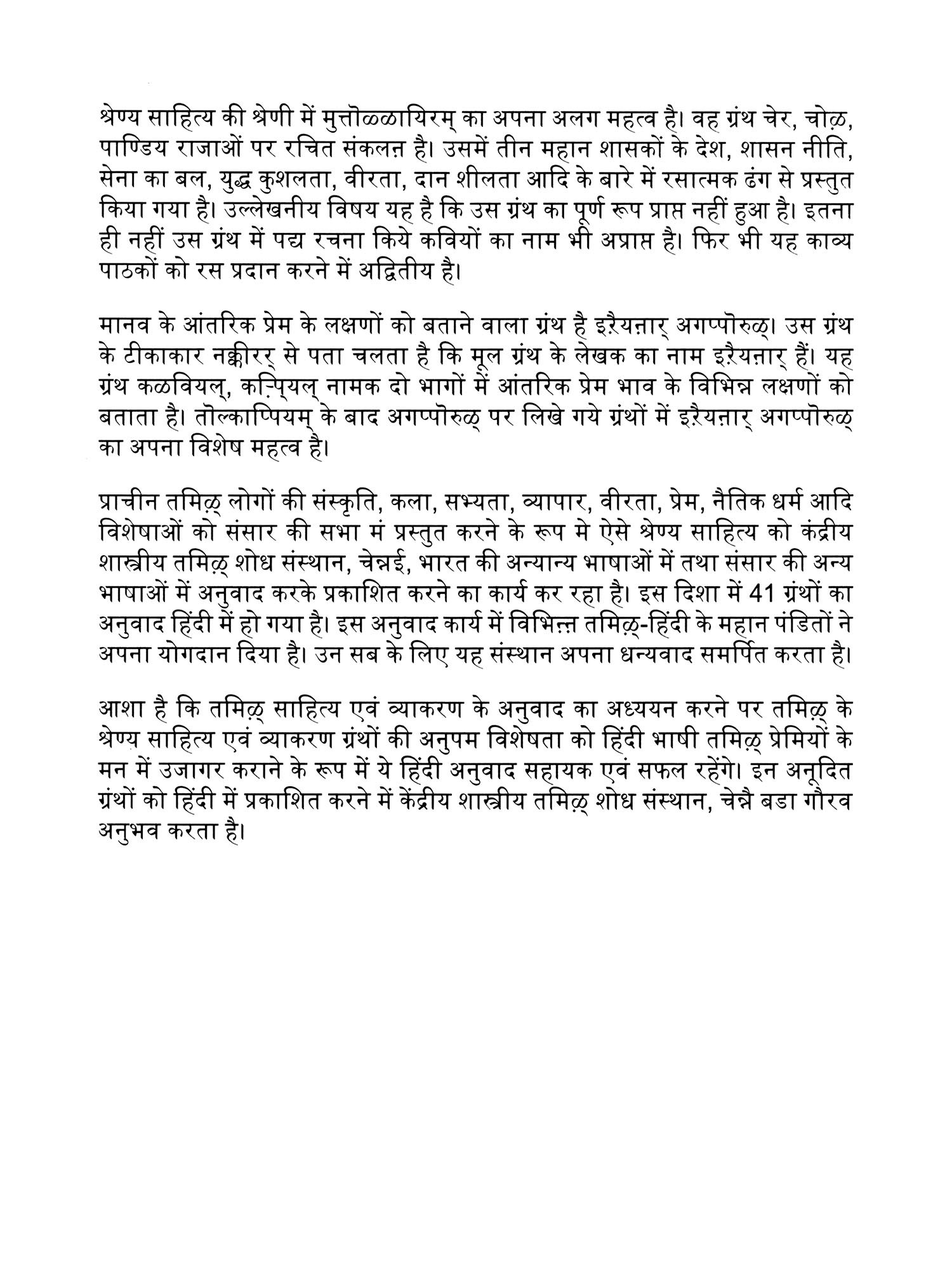 Language: Tamil and Hindi Text with Devanagari Transliteration and Hindi Translation